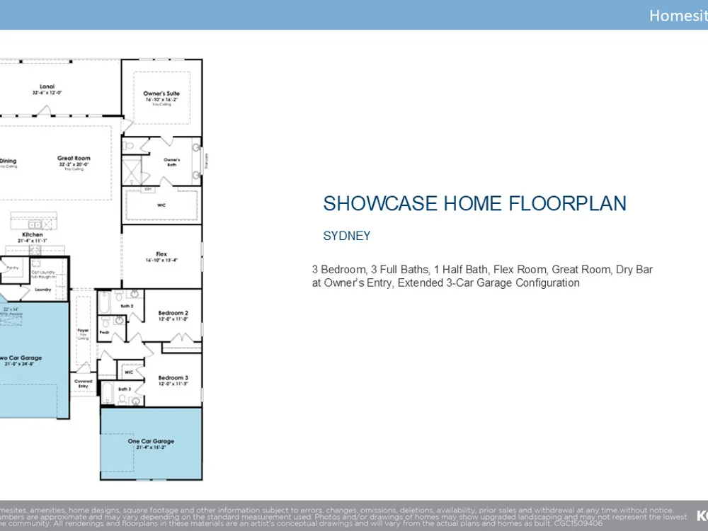 **NEW CONSTRUCTION** Entertainers will love the Sydney for its spacious open layout that accommodates gatherings of any size. The home welcomes plenty of natural light through its many large windows overlooking the Lanai. The Dining and Great Room offers plenty of room for formal dining, while the large 'eat-in' Kitchen Island provides a more casual dining experience. The spacious Owner's Suite features tray ceilings, an oversized shower, dual quartz vanities, and a large walk-in closet. All Bedrooms feature en Suite Baths, and both Secondary Bedrooms are located in the front of the home, separated from the main living area by a large, dynamic Flex Room.