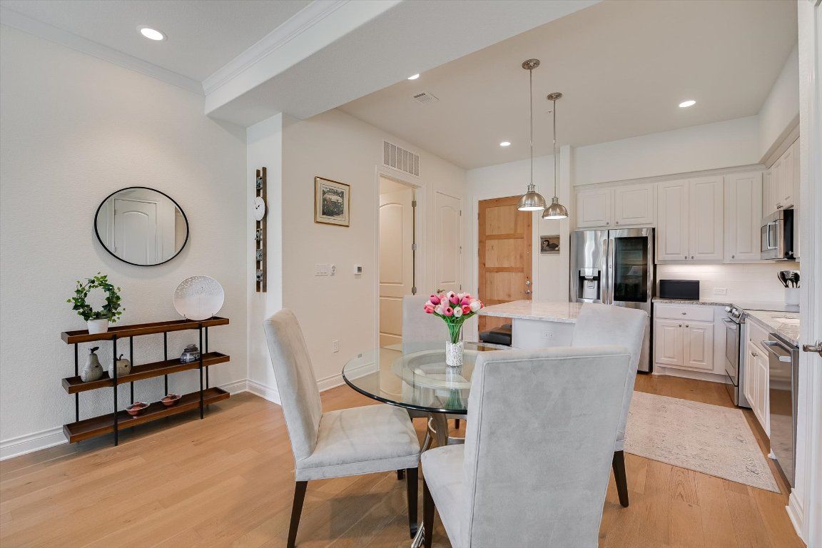 Charming 55+ Condo in Tuscan Village Lakeway Discover effortless living in this beautifully maintained lock-and-leave condo located in the heart of the coveted 55+ community of Tuscan Village Lakeway. Ideally situated near the local library, police station, hospital complex, shopping, dining, and top-tier golf courses—everything you need is just moments away. This thoughtfully designed home features a spacious Owner’s Suite with a private bath, including a double vanity, walk-in shower, and large walk-in closet. A second bedroom and full guest bath provide comfortable accommodations for friends and family, while the flexible bonus room/study is perfect for a home office, hobby space, or reading retreat. The light-filled open-concept living and dining area flows seamlessly from the eat-in kitchen, which boasts stainless steel appliances, a pantry closet, and ample cabinet and prep space. Warm wood flooring throughout, abundant natural light, and tasteful finishes make this home move-in ready. Step outside to a private patio with tranquil views of the community fountain—the perfect spot to relax and unwind. Additional highlights include reserved garage parking, personal mailbox on the lower level, and elevator access for convenience. Enjoy an active lifestyle with access to Tuscan Village’s impressive amenities: a community center with a large dining/meeting hall, billiards room, yoga studio, fitness center, and both indoor and outdoor pools. Stroll through the picturesque park-like setting along a running creek, take in a game of pickleball or bocce, or practice your swing on the putting green. Buildings and amenities are securely accessed, providing peace of mind. Lovingly cared for and truly move-in ready—this is your opportunity to enjoy a vibrant, low-maintenance lifestyle in one of Lakeway’s premier active adult communities.