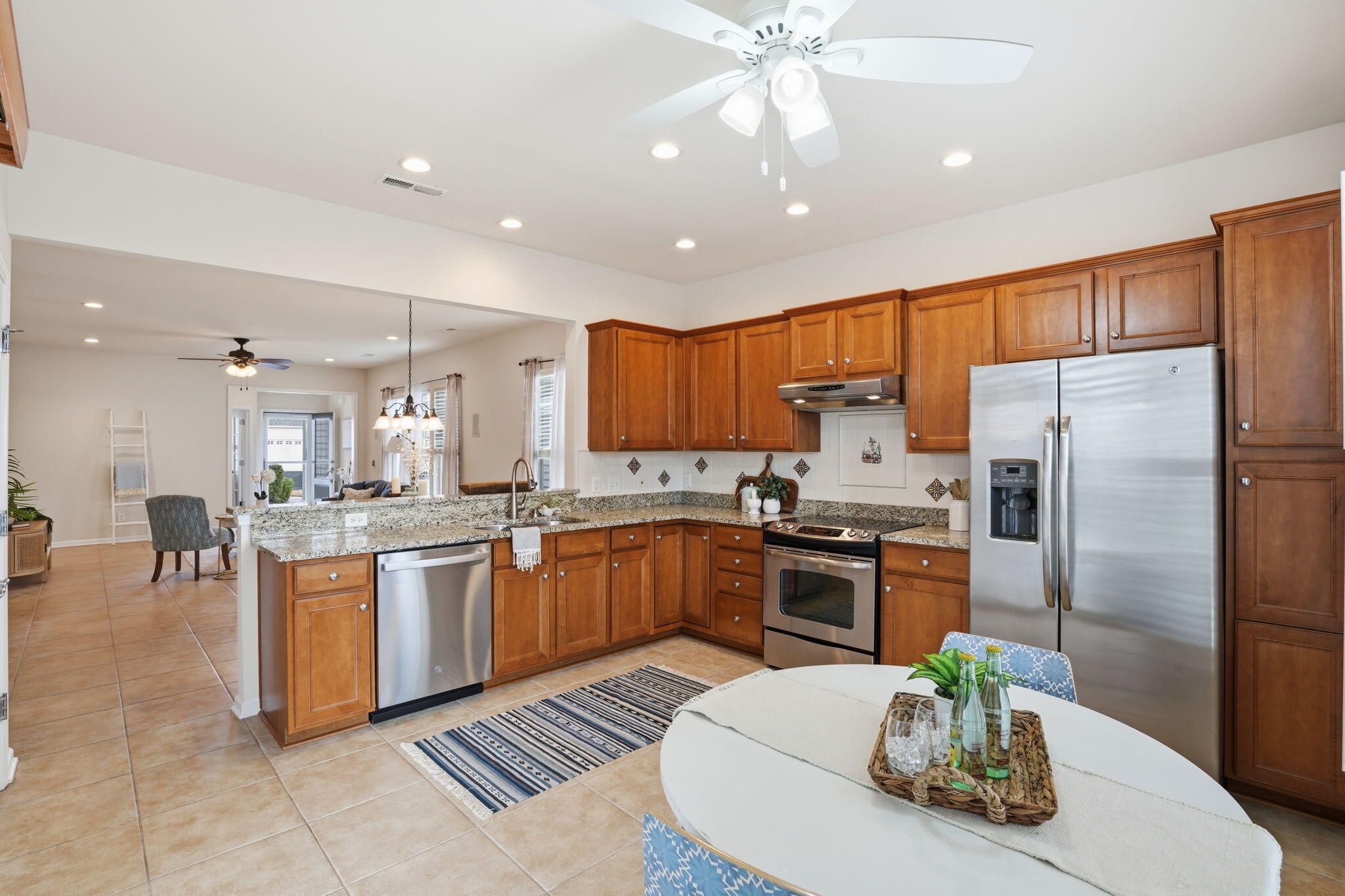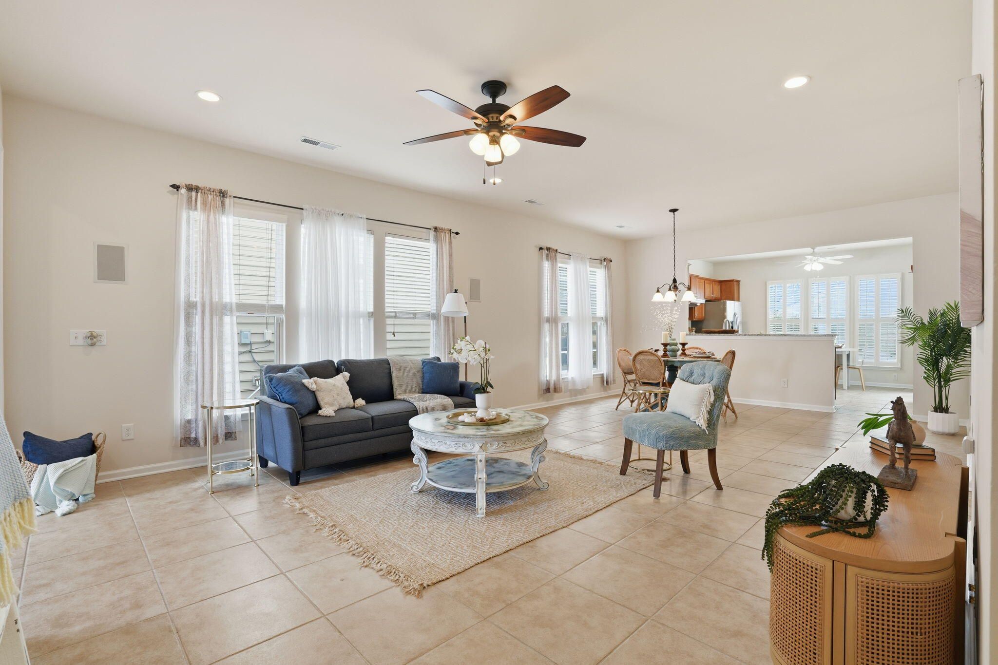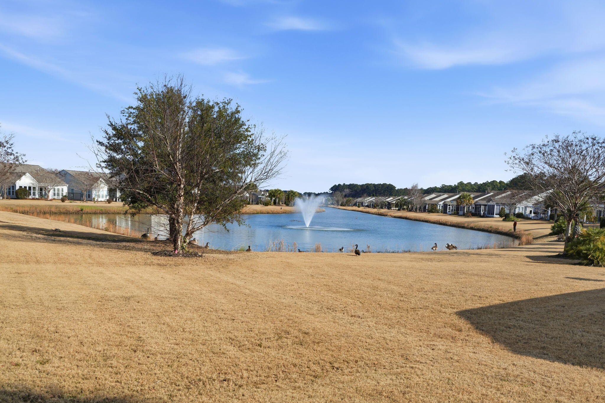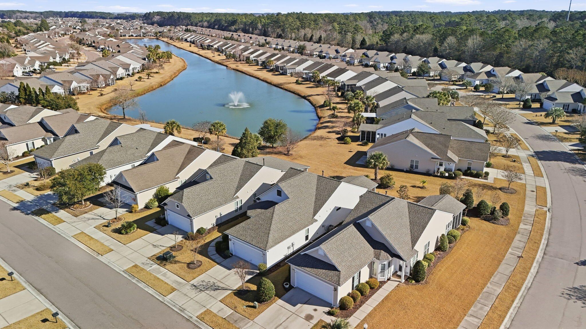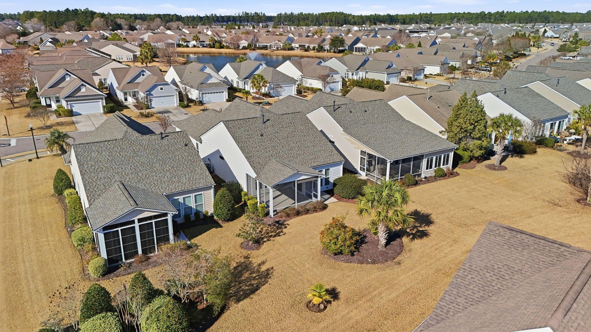 Welcome to maintenance free resort living in Summerville! This move in ready lake front cottage has been freshly painted and is ready for it's new owner! Clean and wide open floorplan is highlighted by large format ceramic tile flooring leading to an open chef's kitchen. Owner's suite is oversized with a huge walk-in closet. The screened lanai has been enlarged and extended with built in sun shades for those gorgeous Charleston sunsets overlooking the water! New roof Nov 24 + New HVAC 2021 + Refrigerator & Washer+Dryer including. Just bring your tooth brush and sunscreen and start enjoying the good life in Charleston's nicest neighborhood!Why residents Love Del Webb Cane Bay-- Low-maintenance living with predictable costs - Built-in social lifestyle & organized activities - Premium amenities without separate memberships - Connected community designed for active adults - High speed internet, TV, and lawn maintenance is included!
