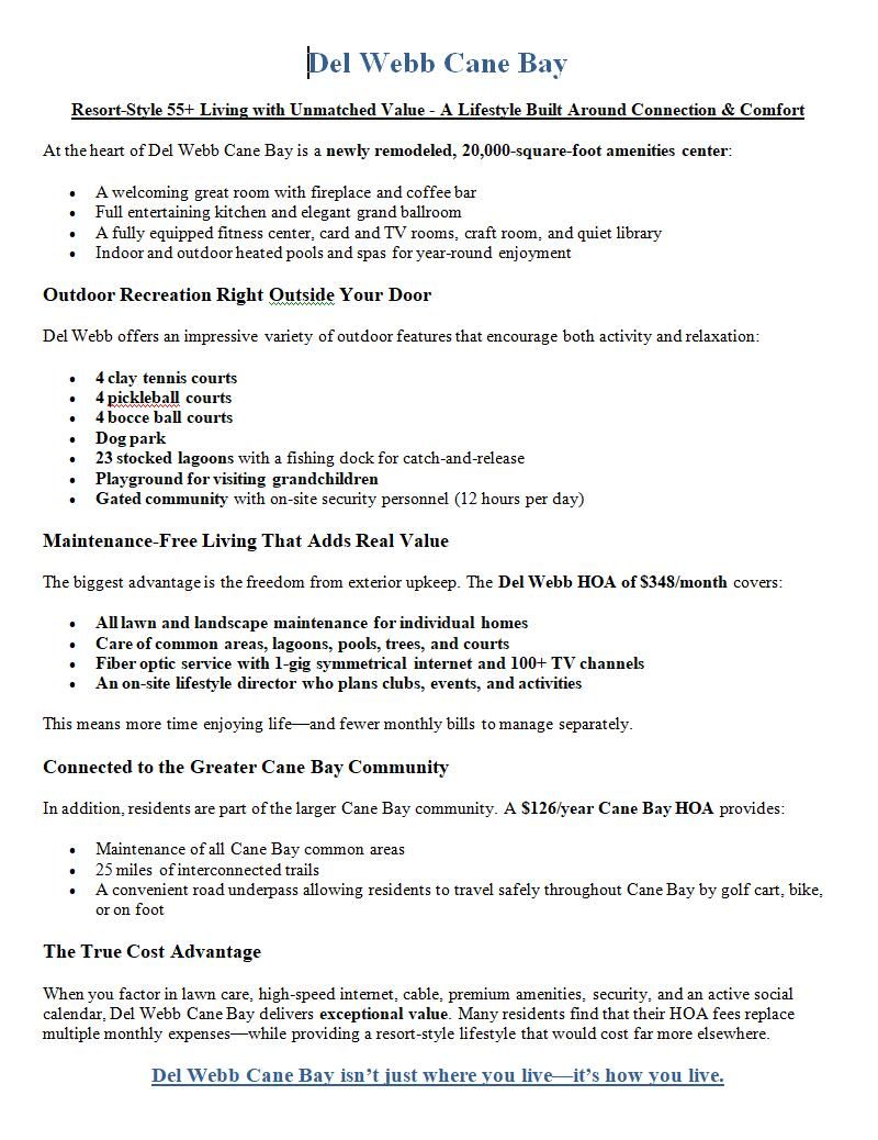 Want to learn more about Del Webb at Cane Bay?