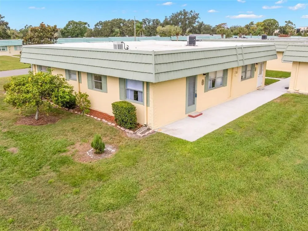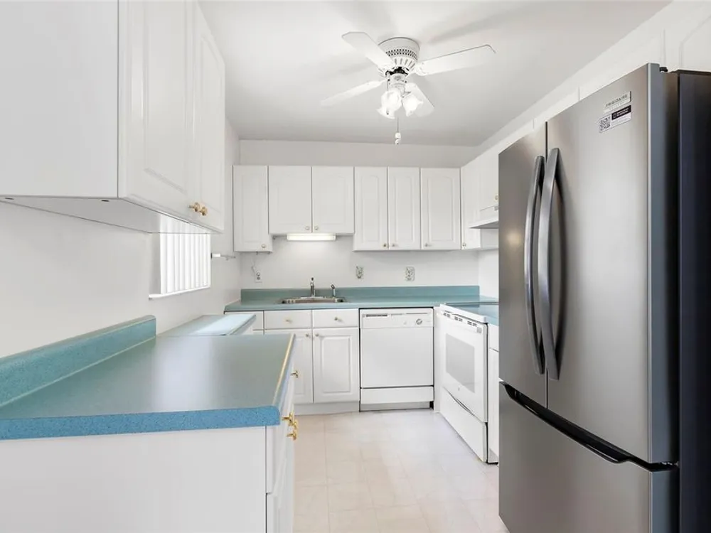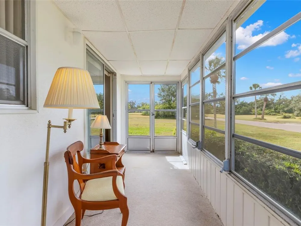 Welcome to this GOLF CART FRIENDLY, 55+ location in the GATED community of Kings Point, Sun City Center! This end unit is situated on a PRIVATE street with NO BACKYARD NEIGHBORS and is close to the North Clubhouse as well as the main, MANNED gated entrance. THE FEES INCLUDE cable, internet, pest control, water, sewer, trash, lawn care, roof repair & replacement and access to activities that include over 200 clubs, multiple indoor/outdoor HEATED pools, fitness, PICKLE BALL, an onsite SALON, two restaurants and so much more which allows for no need to leave in this MAINTENANCE FREE LIFESTYLE! This 2-bedroom, 2-bathroom home is MOVE IN READY with neutral finishes that will compliment any decor. The living and dining rooms create a space ideal for daily living as well as entertaining. The kitchen is spacious, provides plenty of cabinetry, counter space and has a newer STAINLESS STEEL French door refrigerator (2024)! The primary bedroom is large enough to accommodate KING SIZE furniture, has a walk-in closet AND an en-suite bathroom with a walk-in shower and glass door enclosure. The secondary bedroom is GRAND, has built in shelving, a wall of closets that includes the washer and dryer, and sliders to the rear porch! This extends your living space, offers quick access to enter the home, and a view of the COVERED parking that is steps away from your home! It also has a DOUBLE DOOR entry to store your golf cart and other items when needed. There is a SECOND full bathroom that is ideal for guests and has a spa like ambience with a calming color palette and upgraded fixtures. This lot is PRIVATE, offers extra parking for guests and emotional support and service animals are welcome! Kings Point has TWO clubhouses with RESORT STYLE amenities including numerous indoor/outdoor HEATED pools (lap pools and aerobic pools too!), large decks for cookouts and events including parties, movie nights and casual dining at Café Le Perk at the North Clubhouse. The 2020 Centre Club has a STATE-OF-THE-ART FITNESS facility and Serenity Salon and Spa where you can enjoy manicures, pedicures and even messages! The South Clubhouse offers a fitness center and the Palm Court Restaurant & Bar where the golfers share their day and relax in the indoor/outdoor pools and steam rooms. The Property Management Company is ON-SITE, which provides peace of mind! If you plan on venturing out there is quick access to restaurants, SHOPPING, beaches & 30 minutes to Tampa International Airport, less than an hour to the Sarasota shops and 20 minutes to Ellenton Prime Outlets!