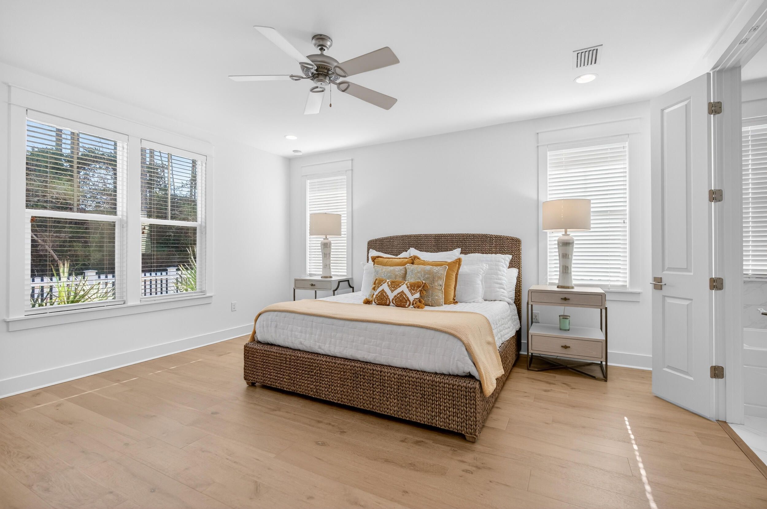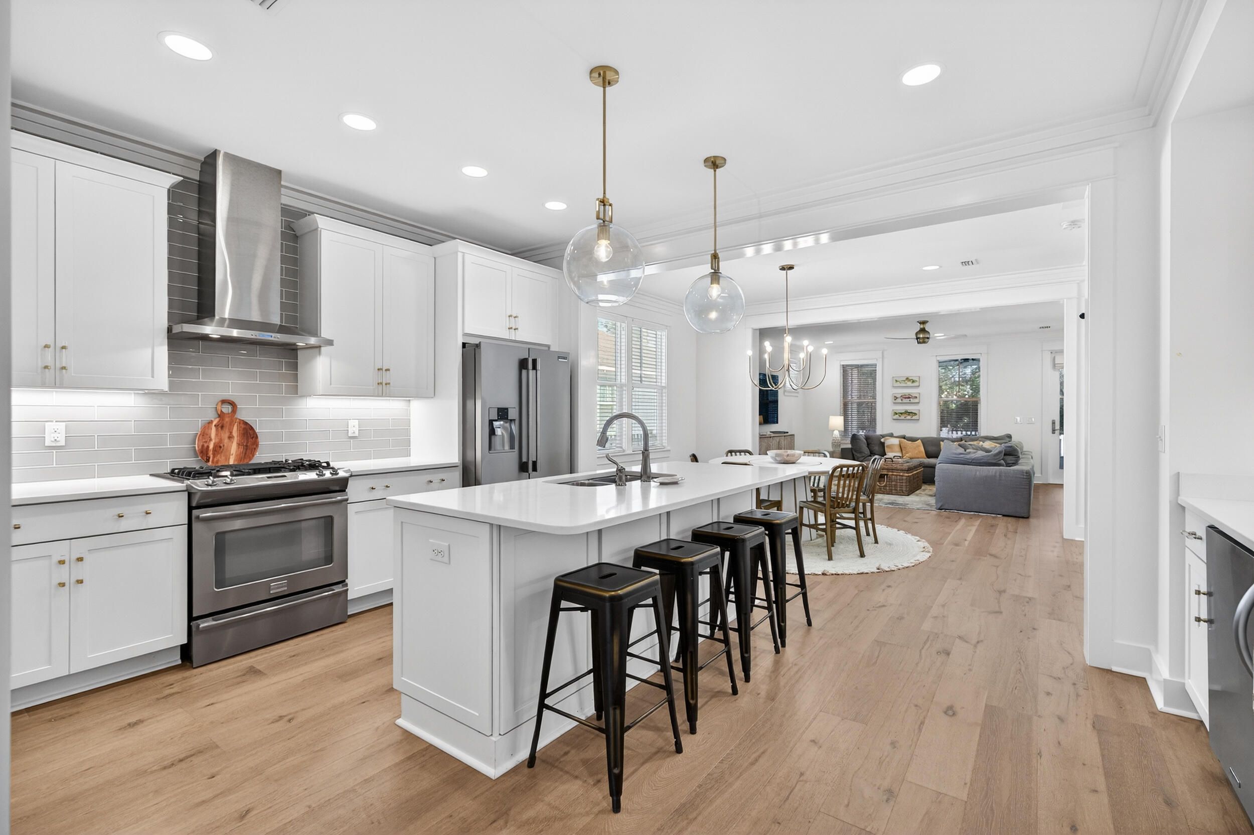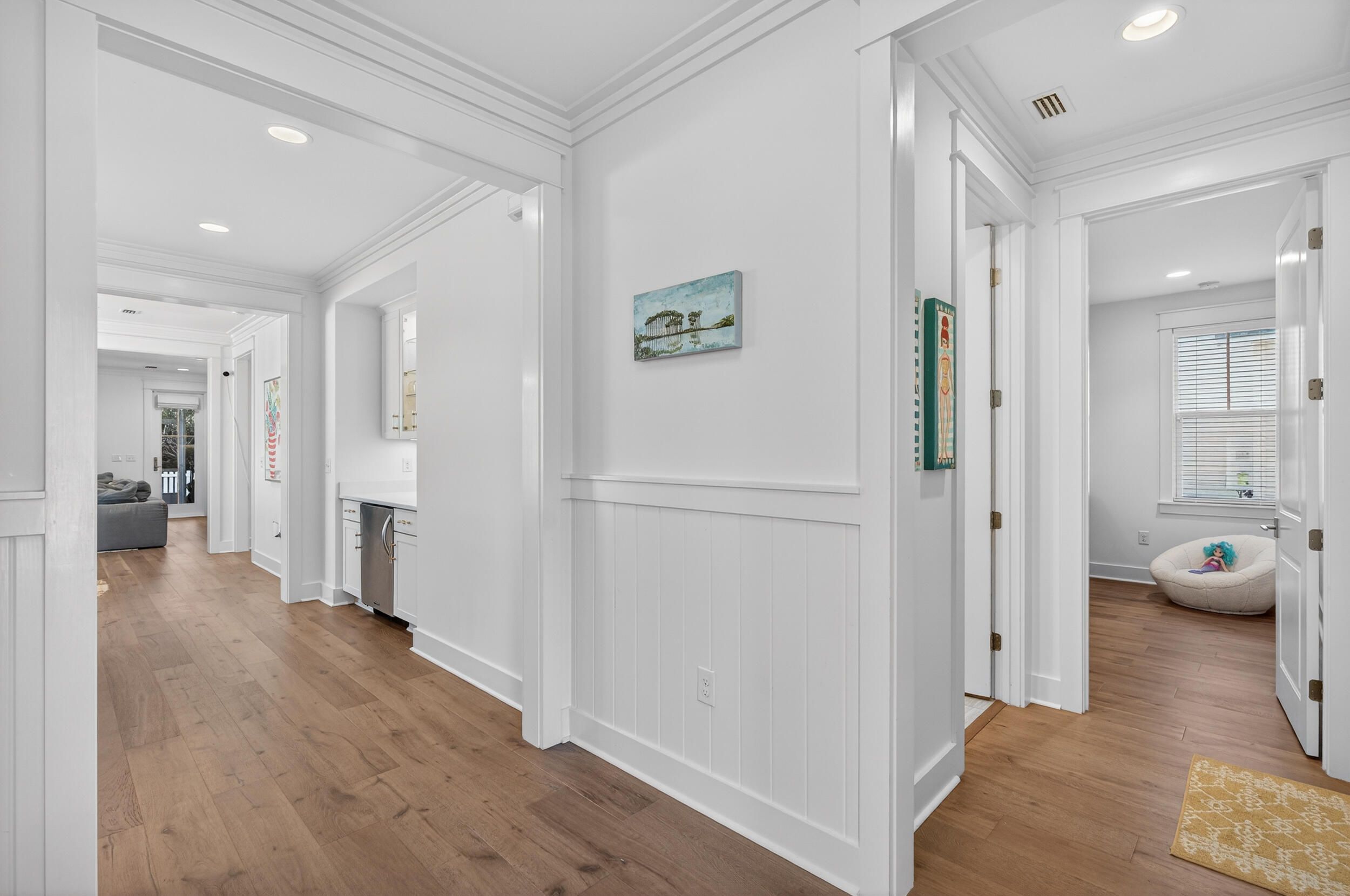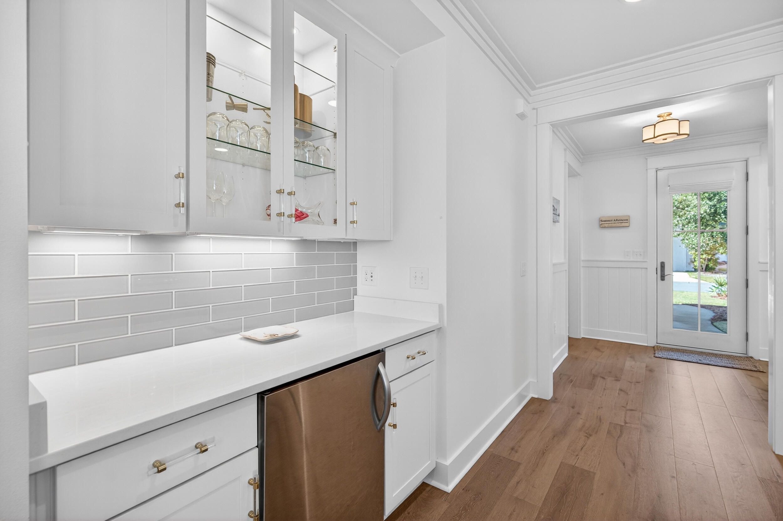 Discover refined coastal living in this beautifully appointed 3-bedroom, 3-bath Huff Home, ideally located in the prestigious Pathways section of WaterSound Origins. Set on a premium lot backing to peaceful green space, this residence offers privacy, style, and unmatched access to one of South Walton's most sought-after communities. Step inside to find hardwood floors throughout, complemented by crown molding that add warmth and character. The chef-inspired kitchen features quartz countertops, Frigidaire appliances, a stunning ceiling-height backsplash behind the gas range, and a custom dry bar—perfect for entertaining. Two generous guest bedrooms each enjoy their own full ensuite bathrooms, while the spacious living area flows seamlessly to the screened-in porch with serene views of the lush backyard oasis. The oversized primary suite is privately tucked away and offers backyard views along with a luxurious spa-like bathroom complete with dual vanities, a zero-entry shower, a garden tub, and an expansive walk-in closet. WaterSound Origins spans 1,400 acres and is designed to celebrate both modern convenience and the natural beauty of the area. Residents enjoy access to top-tier amenities including the Village Commons resort-style pool, fitness center, sports courts, walking trails, parks, and Lake Powell access with complimentary kayaks. Golfers will love the Origins Golf Club, offering multiple play configurations for all skill levels. The vibrant WaterSound Origins town center features Publix, dining options, shops, and servicesall just moments from world-class beaches. Homeowners also have the option to join the exclusive WaterSound Club, which provides private beach access, beach services, dining venues, pools, two private golf courses, and the new Lifestyle Center at Camp Creek. This home offers the perfect blend of luxury, location, and lifestylean exceptional opportunity in WaterSound Origins.