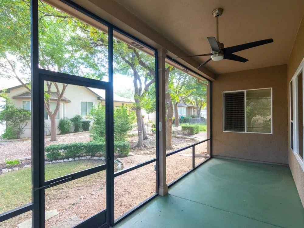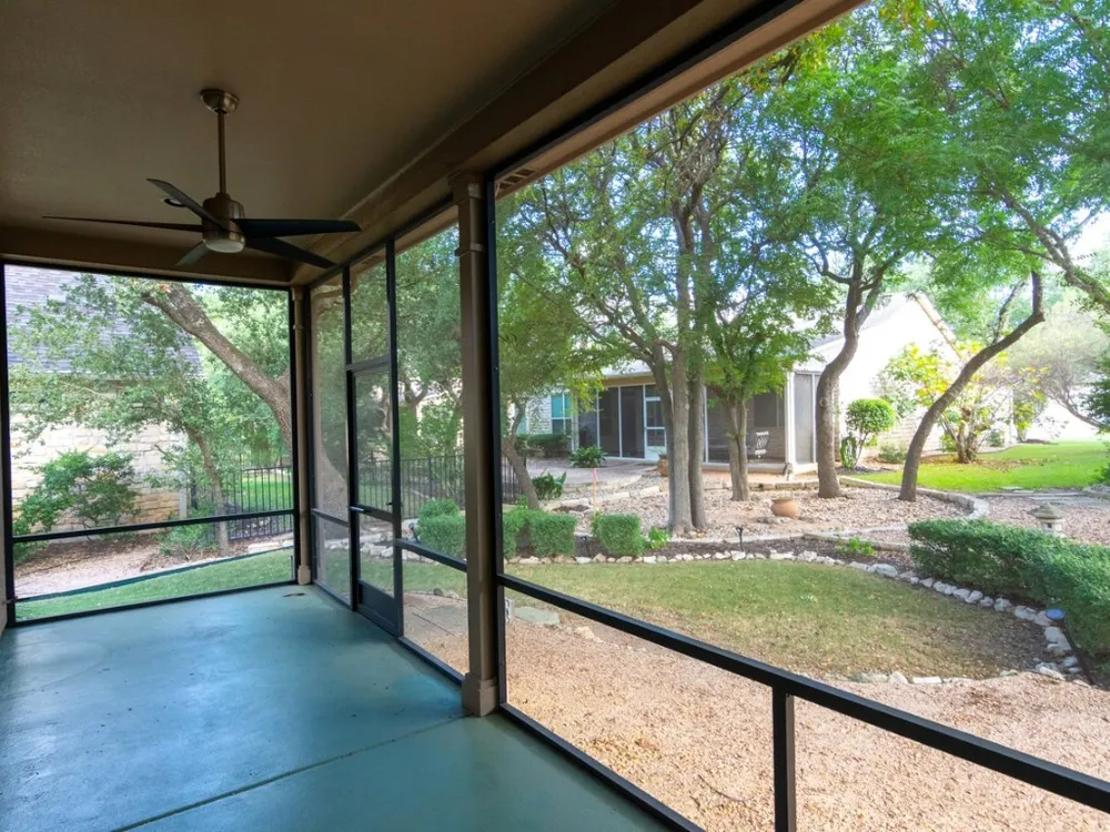 Home is gorgeous with one of the prettiest yards in the area. Huge oak tree majestically frames the front of the home with the added grace of a fabulous Magnolia tree. Lawn is green and lush (sprinkler system a plus). Back yard is an open entertaining area just waiting for you to bird watch and enjoy frivolity Bonus on this home is the screened in back porch. Open airy living areas with large windows and views of the outdoors. Huge kitchen with island and eat in kitchen area. Cook top, Corian counter tops, ample cabinets and storage, built-in oven, tile backsplash and loads of character. 2 Bedrooms plus a Study/office/2nd living area with built-ins, French doors and window treatments. Master bedroom is luxurious and large with attached bath which features a walk-in jetted bath tub and separate shower. 2ndary bedroom is private with a guest bath. Great location near golf courses, restaurants, shopping and major roads. Living in Sun City is a lifestyle loved by many. There are many pools, 3 golf courses, local watering holes, restaurants, activities and planned parties/events all in the Sun City Georgetown community.