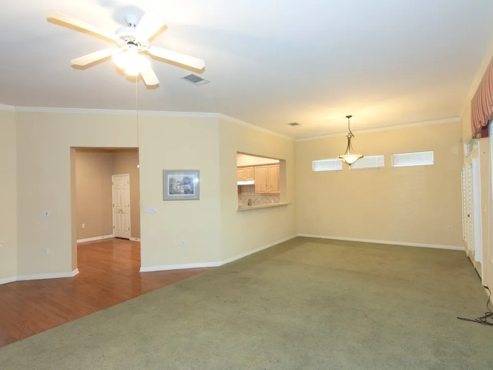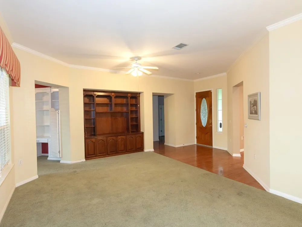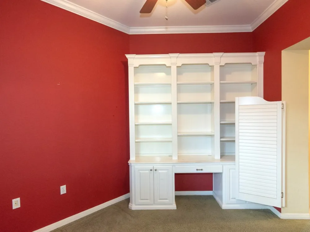 - Bookcases, Built-in Features, Ceiling Fan(s), Crown Molding, Double Vanity, Eat-in Kitchen, High Ceilings, Kitchen Island, Multiple Living Areas, NoInteriorSteps, Open Floorplan, Pantry, Storage, Solid Surface Counters, Soaking Tub, Natural Woodwork, Walk-In Closet(s)