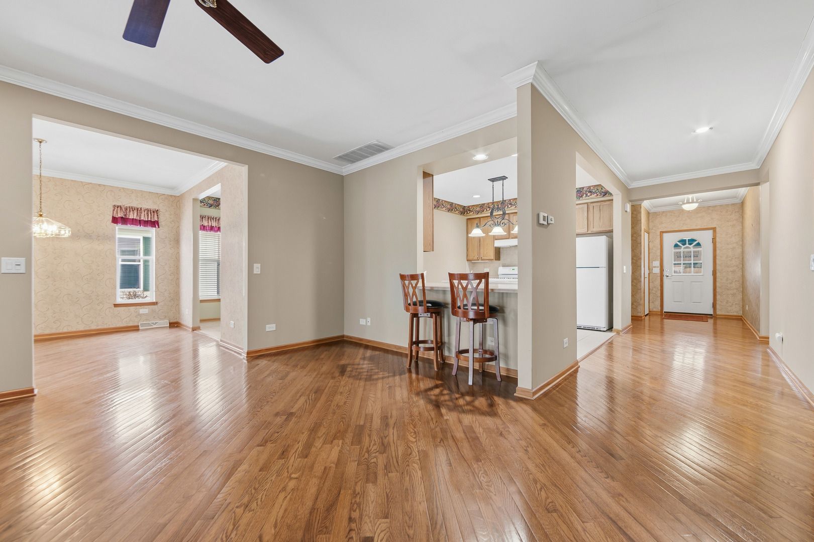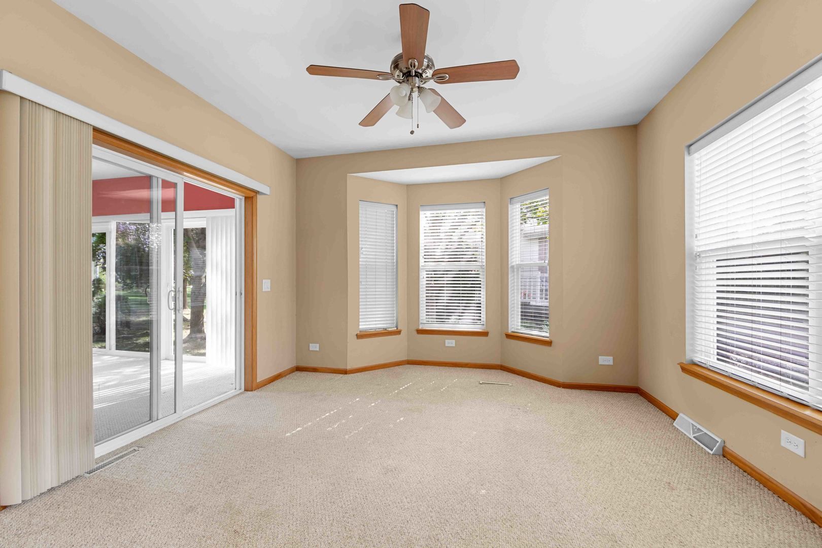 Saddlebrook Farms has long been one of Lake County's most sought-after 55+ communities, offering a lifestyle defined by comfort, connection, and ease. This rarely available, larger floor plan delivers two bedrooms, two full baths, and a dedicated office or den-an ideal blend of space and flexibility. From the moment you step inside, wide hallways and an open flow create a sense of calm, while the galley-style kitchen with central island, Corian countertops, and bright dining area naturally connects to the spacious living room and cozy fireplace. An extended front porch invites slow mornings and relaxed evenings, while hardwood floors throughout much of the home add warmth and character. A three-season room provides additional living space, and recent updates including a newer roof, furnace, washer and dryer, and whole-house humidifier offer peace of mind. The oversized heated two-car garage is a rare bonus, as is the full backup generator-an uncommon feature that sets this home apart and ensures comfort no matter the season. Opportunities like this don't come along often, and once you experience it, you'll understand why.