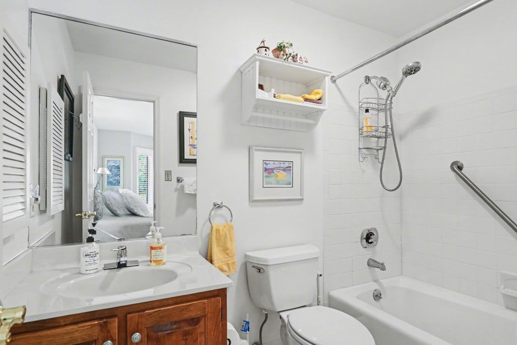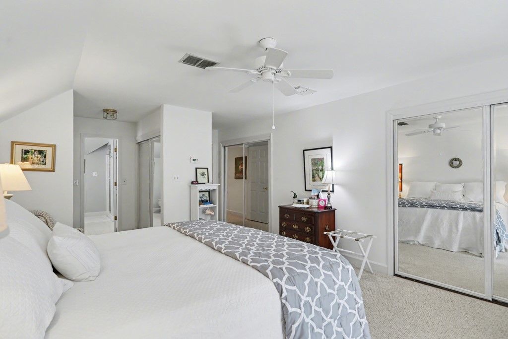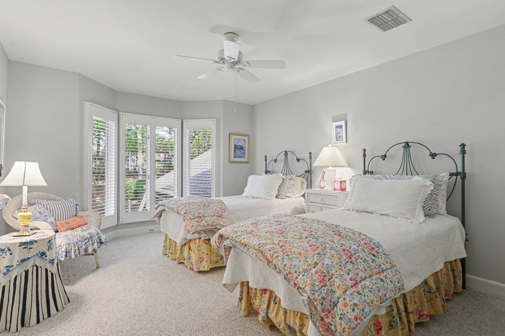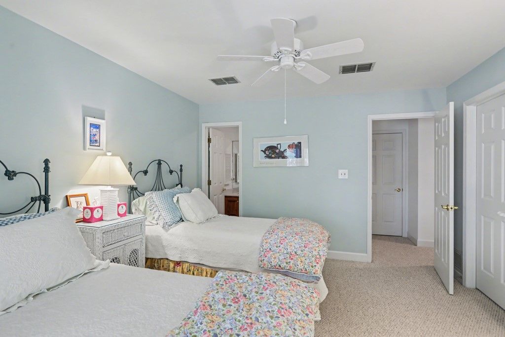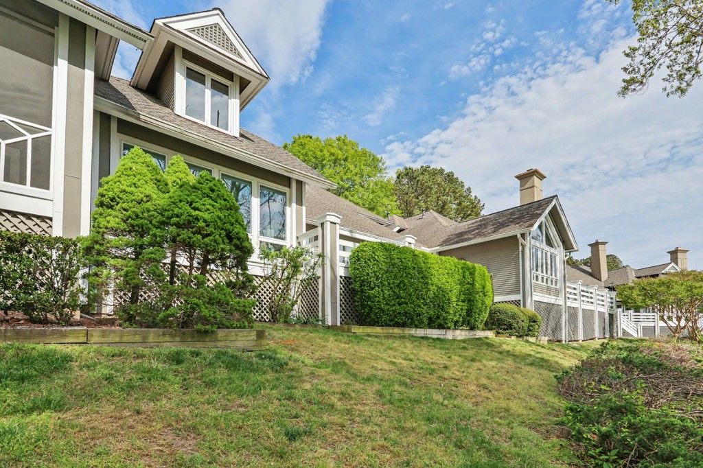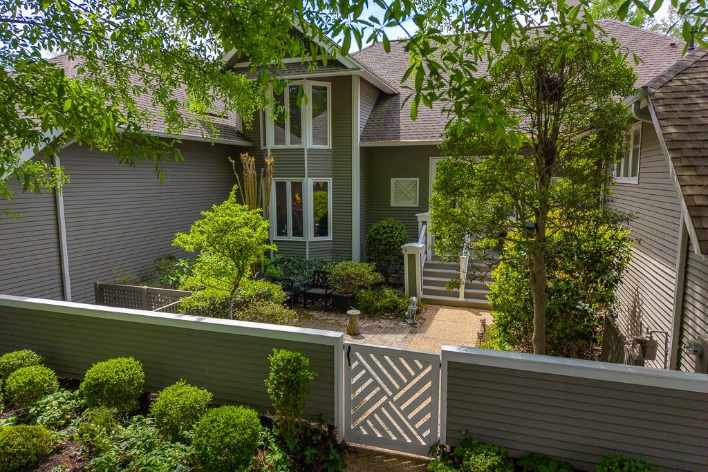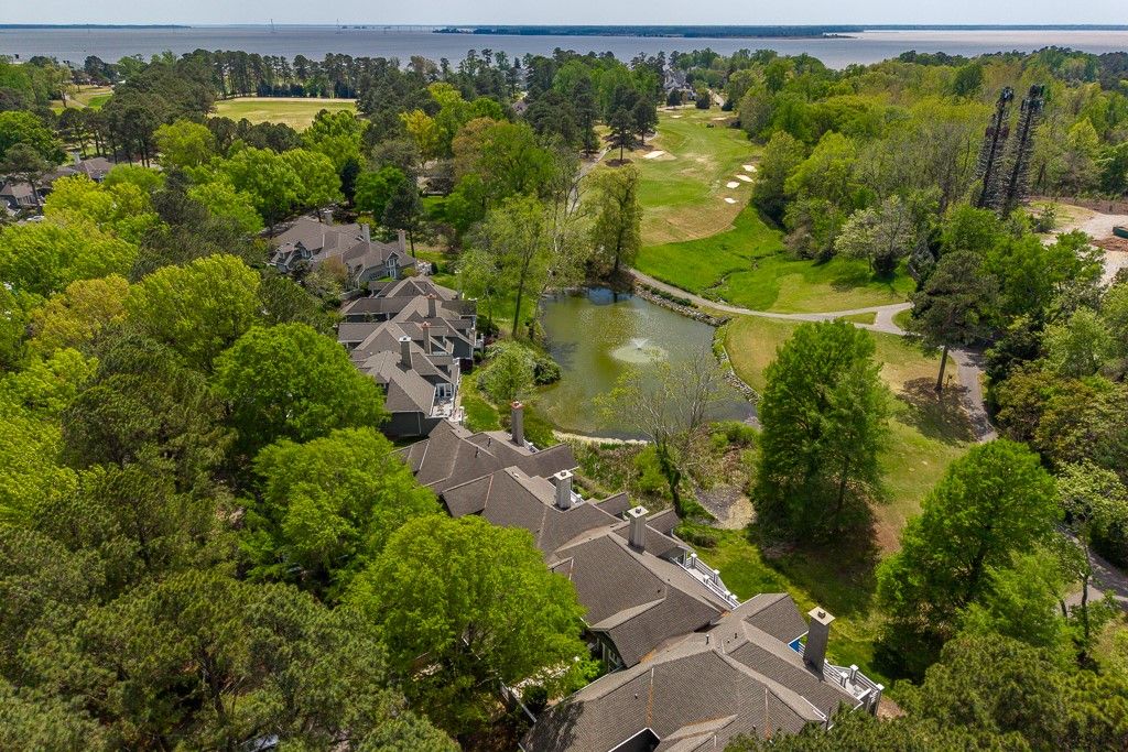 Beautifully maintained and updated Townhome on the 15th hole of the River Golf Course overlooking the pond and fountain. Each bedroom offers its own private en-suite bath, creating an ideal setup for family and guests. Boasting a spacious and modern layout, this home features an entire wall of glass across the back of the house looking out to the pond and golf course. There is hardwood flooring on the entire first floor, a lovely kitchen and breakfast room, and a charming Sun room. Enjoy seamless indoor-outdoor living with a beautifully landscaped private courtyard in front and an expansive deck with benches out back—perfect for entertaining or unwinding in the serene surroundings. 9' and vaulted ceilings. Giant Family room with back wall of sliding glass doors that look out to the deck, pond, and golf course. Vaulted ceiling with ceiling fan. Gas log fireplace with raised hearth and built-in bookcases and cabinets on either side. Updated Primary bathroom is very nice!