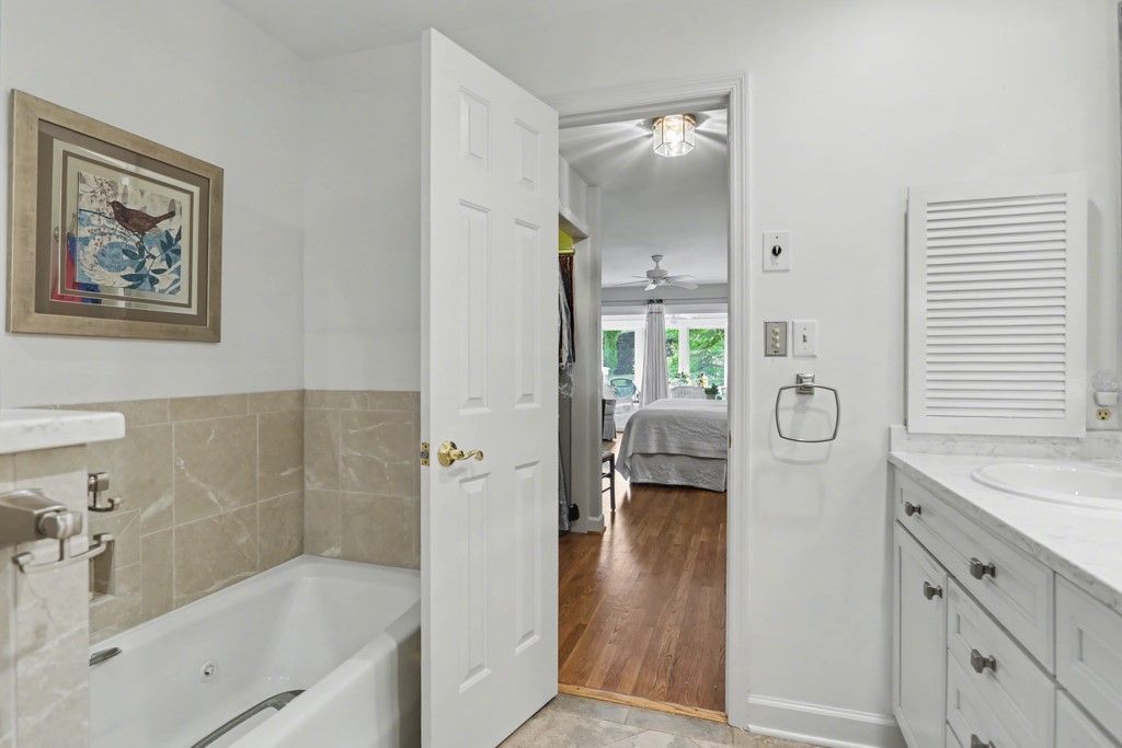 - Attic Access, Bookcases, Built-in Features, Ceiling Fan(s), Cathedral Ceiling(s), Separate/Formal Dining Room, Double Vanity, Eat-in Kitchen, Granite Counters, High Ceilings, Recessed Lighting, Walk-In Closet(s)