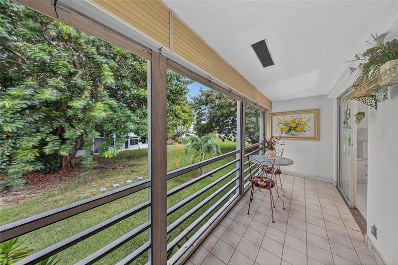 This Great Condition, Pre-Loved Condo comes furnished & features 2 Bedrooms & 1.5 Bathrooms with Central A/C (new in 2023), Plenty of Closet Space, & the Best parking spot: directly in front of the building! Screened-in Patio features a serene nature's view. Newport F is in the Heart of Century Village and has great reserves. Century Village is an Extremely Active 55+ Community offering Resort-Style Amenities: Cafe, Clubhouse, Tennis, Pickleball, Craft/Painting Workshops, Hobby Classes Fitness Centers, Free Movies, Free Shuttles