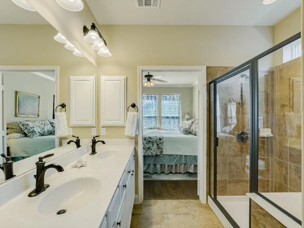 - Ceiling Fan(s), Double Vanity, Entrance Foyer, Granite Counters, Main Level Primary, Open Floorplan, Pantry, Walk-In Closet(s)