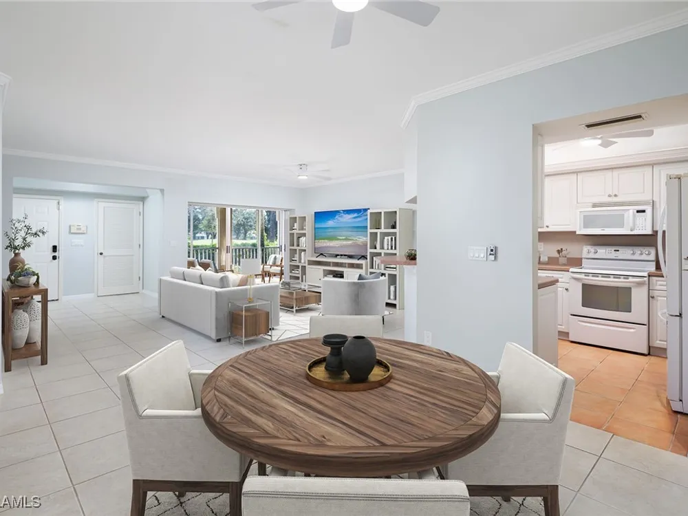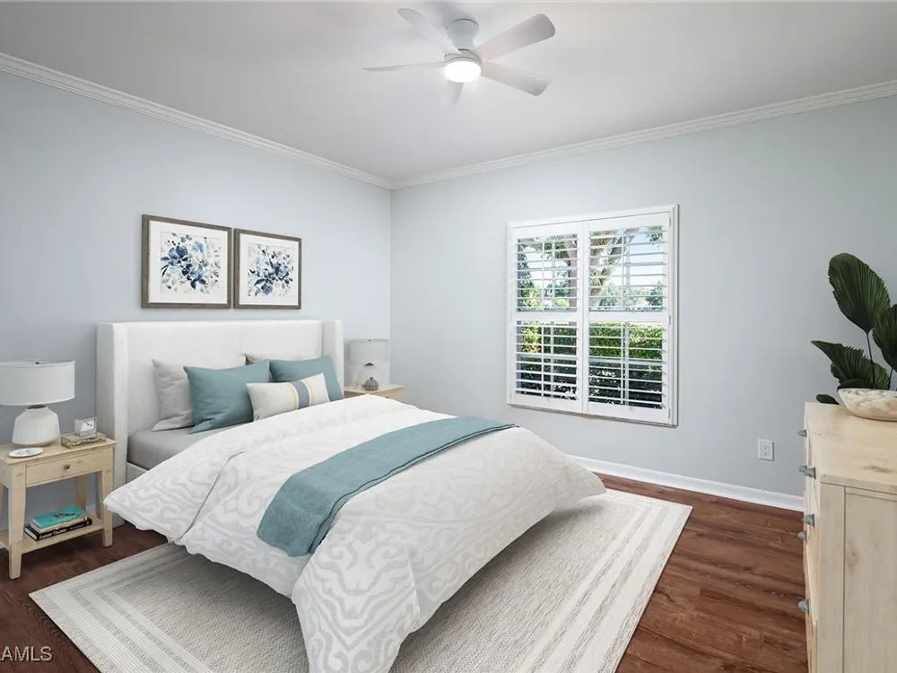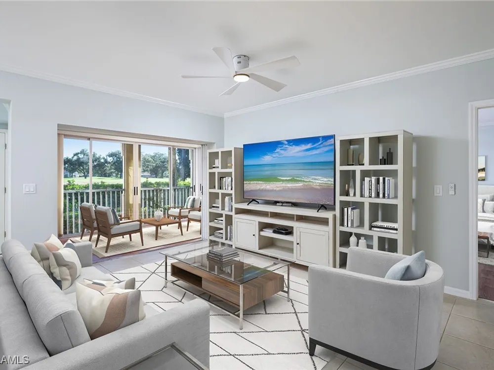 Lush views of Vineyards Country Club golf course are the backdrop to this easy living condo in Tuscany in The Vineyards. The large screened lanai is enclosed with sliding glass doors, providing the ideal spot for enjoying beautiful views and perfect weather. Offering sunny eastern exposure, this condominium enjoys lovely natural light, and comfortable split floor plan is ideal for hosting guests. Features include luxury vinyl plank flooring in the bedrooms, plantation shutters throughout, easy clean marble-tile bath floors, crown molding and a large, fabulous primary closet with custom built-ins. Tuscany is a smooth-running, active condominium association with professional management. The community offers a community pool and clubhouse, reserved covered parking and plenty of guest parking. Crossroads Market Center is a short walk or bike ride away, offering grocery, pharmacy, fitness, restaurants and more. Optional membership in Vineyards Country Club offers social, sports or golf membership, and includes a fantastic fitness center and spa, two championship golf courses, tennis, pickleball, dining and special member events. Just a quick drive from Mercato, Waterside Shops and white sandy beaches of Southwest Florida, The Vineyards offers a central location to all Naples has to offer. Whether you’re looking to purchase your first Florida home or are hoping to generate rental income, this is a spectacular opportunity to own an easy-living Naples condominium with a fantastic view!