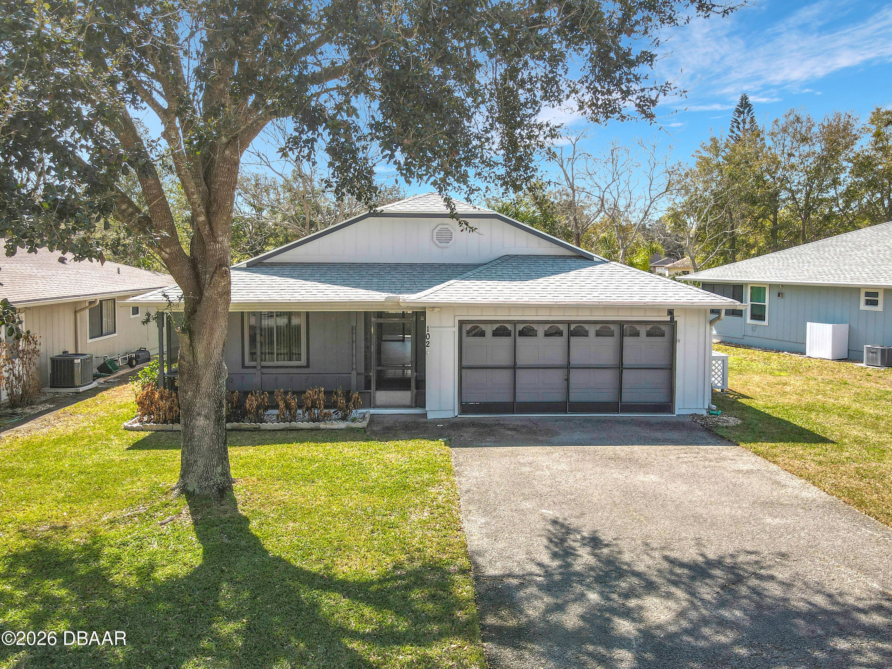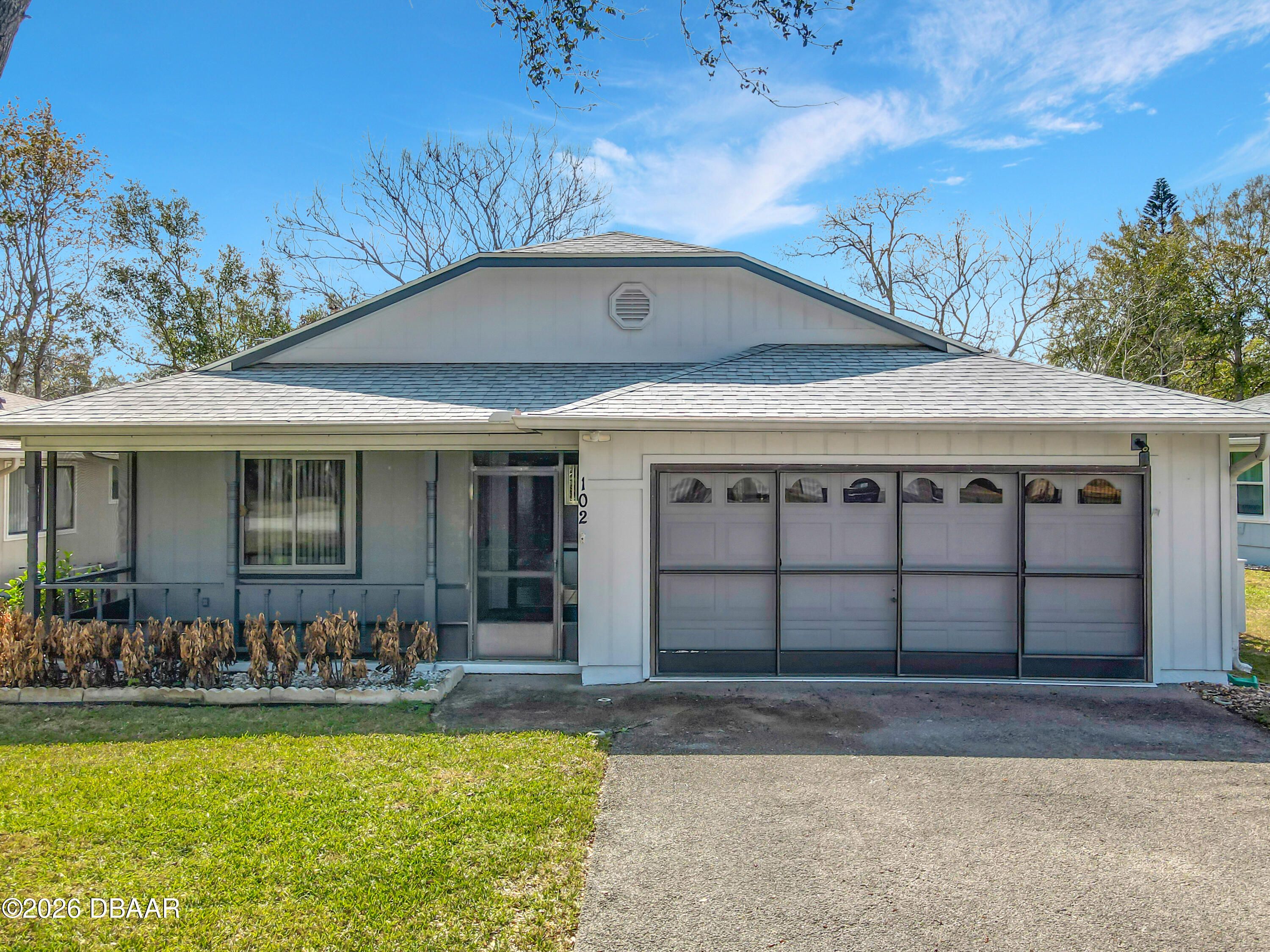 Start with peace of mind knowing this home features a brand new 2025 roof, then step inside to discover a beautifully updated 2 bedroom, 2 bath, 2 car garage residence in the sought-after 55+ community of Summer Trees III. Freshly painted on the exterior and equipped with a sprinkler system, this FRESH, BRIGHT and LIGHT home with practically all the windows in the house updated offers easy living with no carpet anywhere & stylish vinyl flooring installed in 2023. The front eat-in kitchen is welcoming & functional, complete with a breakfast bar that opens to the dining area & a full appliance package including refrigerator, range, dishwasher, microwave, washer & dryer. Cathedral ceilings enhance the spacious feel, while glass doors separate the living room from the family room, creating flexible space for entertaining or relaxing. Enjoy Florida breezes from the screened front porch, & take advantage of the screened garage door - perfect for comfortably tackling projects year-round. The primary suite features a private en-suite bath with a separate garden tub, shower and makeup vanity, and the second bedroom also offers its own en-suite bath, ideal for guests or even a mother/adult-daughter arrangement. This well-maintained community provides a laid-back, low-maintenance lifestyle with walking and hiking paths, a screened swimming pool, shuffleboard, pickleball and tennis courts, and a clubhouse filled with fun social events. Low HOA dues include cutting grass, exterior painting every six years, cable TV and internet service, plus the added benefit of a community subterranean termite bond for peace of mind. Recreational vehicle parking is available, and the location places you just minutes from shopping, restaurants, the Advent Health emergency center, easy I-95 access, and only about six miles to the beautiful shores of Daytona Beach.