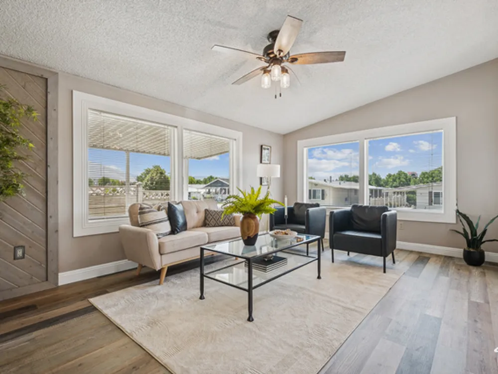 Live your best life in this beautifully updated home nestled in one of Sandy's most sought-after 55+ active communities! Designed for low-maintenance living and rich with amenities, this home offers the perfect blend of comfort, convenience, and community. Inside, you'll find a large living room filled with natural light, a generous dining area perfect for hosting, and a thoughtfully updated kitchen that blends style and functionality. The oversized master suite is a true retreat, featuring a spacious layout, walk-in closet, and a luxurious garden tub-ideal for unwinding at the end of the day. This home has been extensively renovated with a new roof, HVAC system, updated electrical and plumbing, new flooring, and modern bathrooms and kitchen. (Full list of upgrades available-see MLS attachments.) Step outside to an expansive backyard with weed barrier already installed-ready for your vision of a garden, patio, or outdoor sanctuary. The 15' x 35' powered workshop/storage shed is perfect for hobbies, projects, or extra storage. Located in the heart of Sandy, you'll love being close to shopping, dining, medical services, and outdoor recreation. This 55+ community is known for its active lifestyle, friendly neighbors, and strong sense of connection. Buyer must be 55+ to occupy. The home is vacant and easy to show. Square footage figures are provided as a courtesy estimate only and were obtained from County Records. Buyer is advised to obtain an independent measurement.