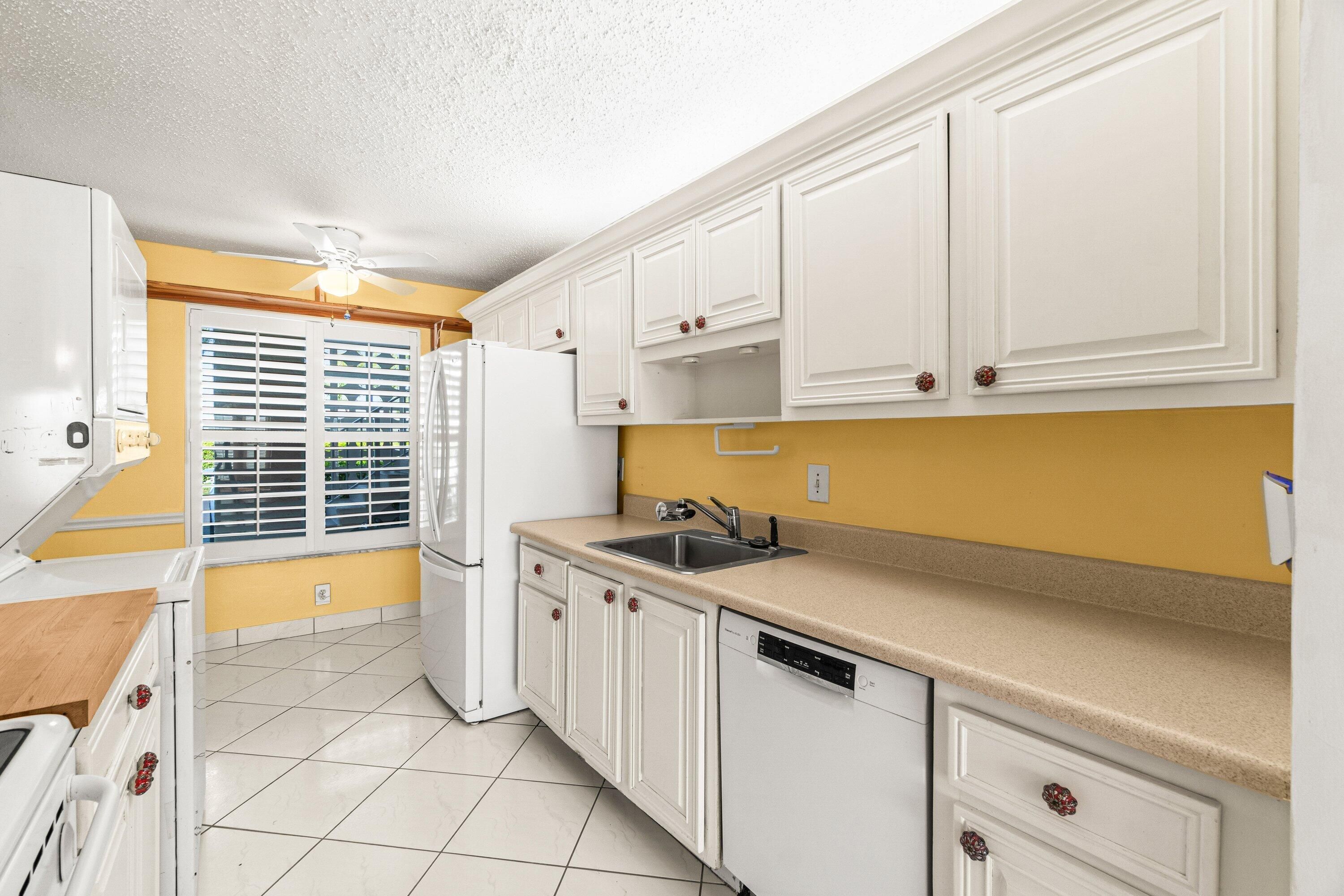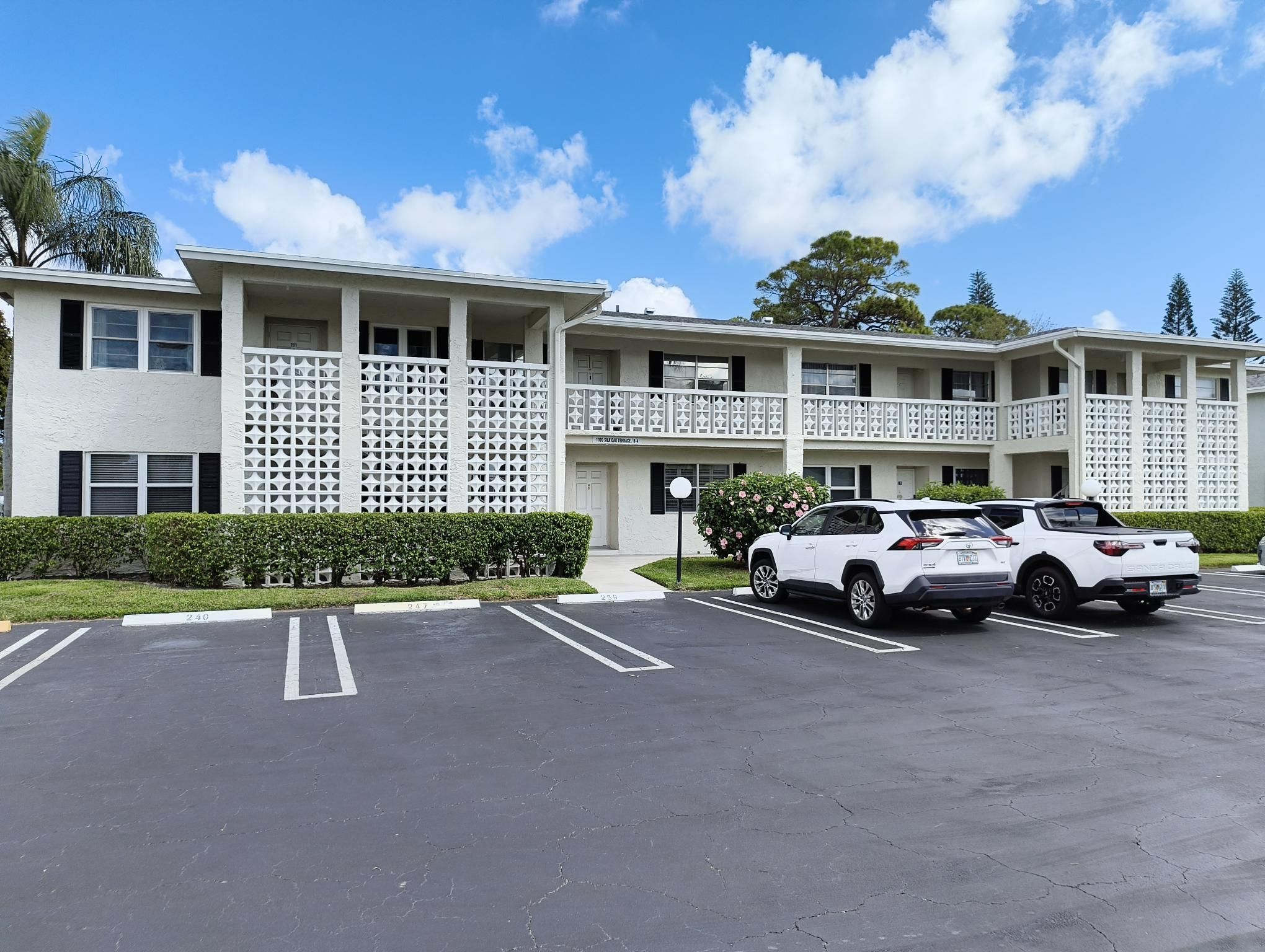 The Pines of Delray is an active clubhouse community that has all newer roofs! The apartment is an easy access 1st floor and features the following updates: kitchen cabinets, refrigerator, blinds, both bathrooms are redone in tasteful tones. Your parking space is at your front door. There are many additional guest spots for a second car! The club house features: A very large, heated swimming pool, Stage, Dance floor, Meeting room, Pool table/billiards, An exercise room, 4 shuffleboard courts Etc. Etc.