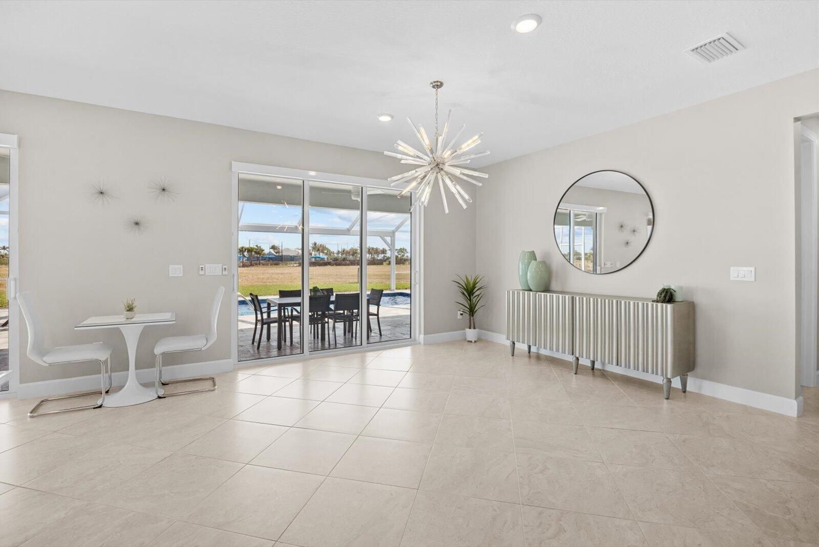 This gem is located on an oversized .39-acre premium lot with no rear neighbors and sweeping preserve views in the sought-after community of Del Webb at Tradition. Tucked at the end of a quiet cul-de-sac, this stunning pool home provides rare space and serenity and delivers the ultimate Florida lifestyle. This move-in ready 3 bed, 3 bath + flex room property offers high ceilings, open layout, impact windows + doors, natural light and many upgrades. The expansive backyard with extended lanai, picture-frame screen enclosure, 14x30 custom pool and huge travertine deck, is a true outdoor oasis. Whether entertaining, relaxing or enjoying the resort-style amenities, this home has it all. Shopping, dining and Tradition Square are just minutes away.