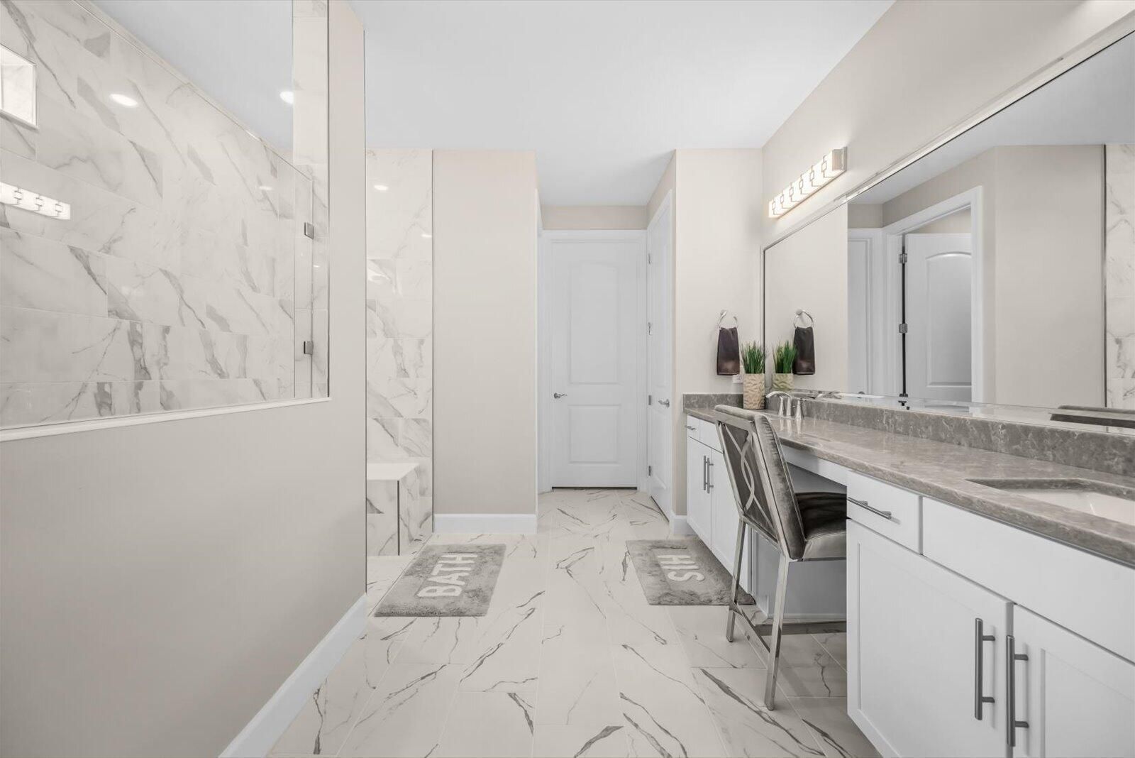 - Pantry, Walk-In Closet(s), Split Bedrooms, Closet Cabinetry, Cabana Bath, Impact Glass, Dual Sinks, Main Level Primary, Separate Shower