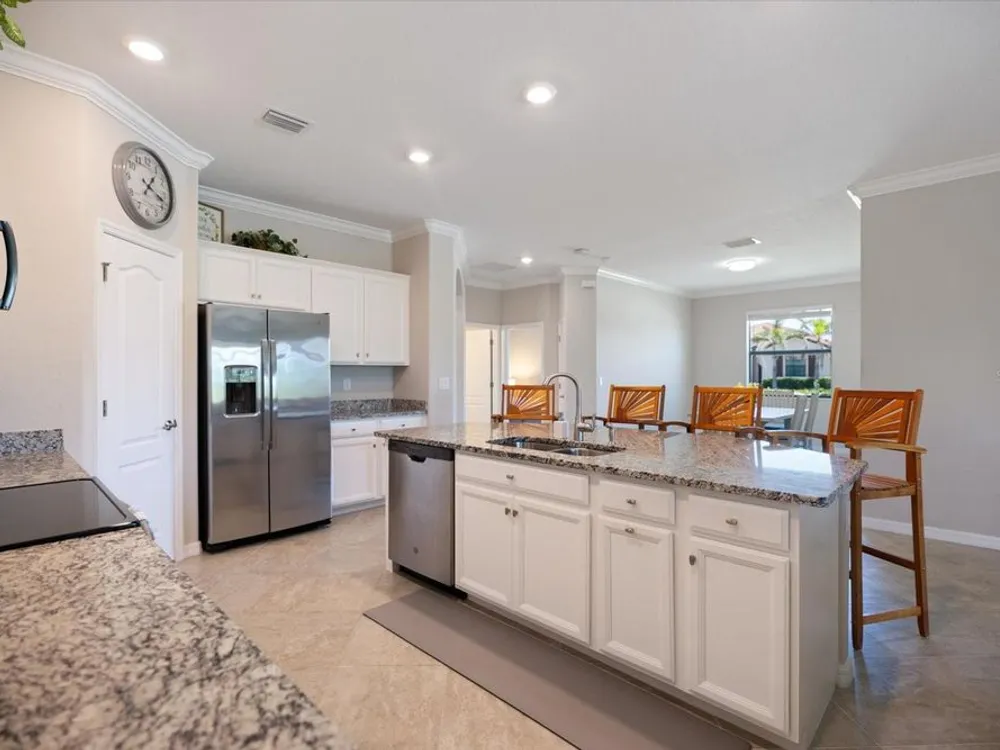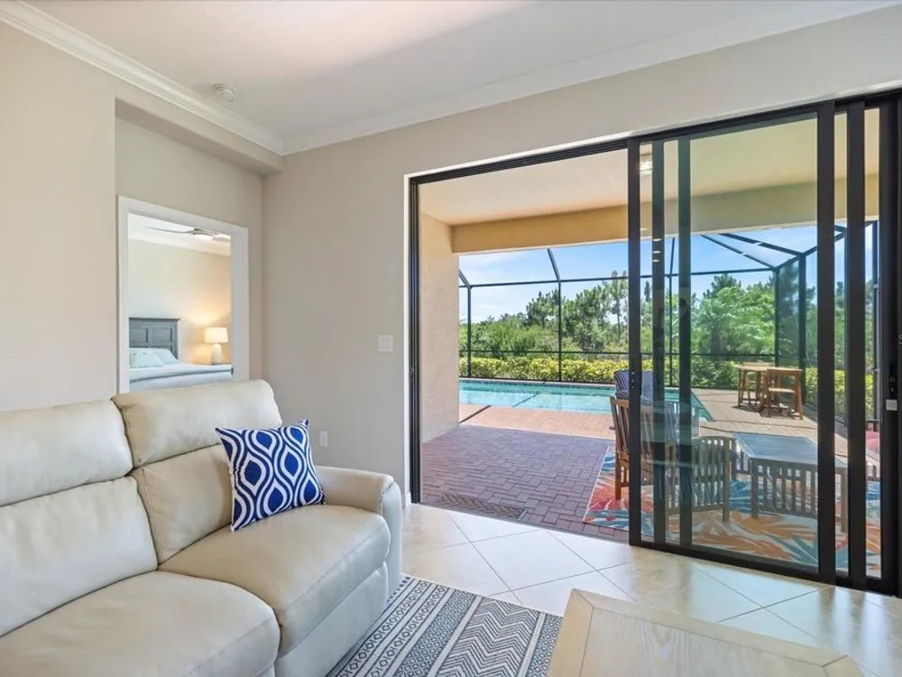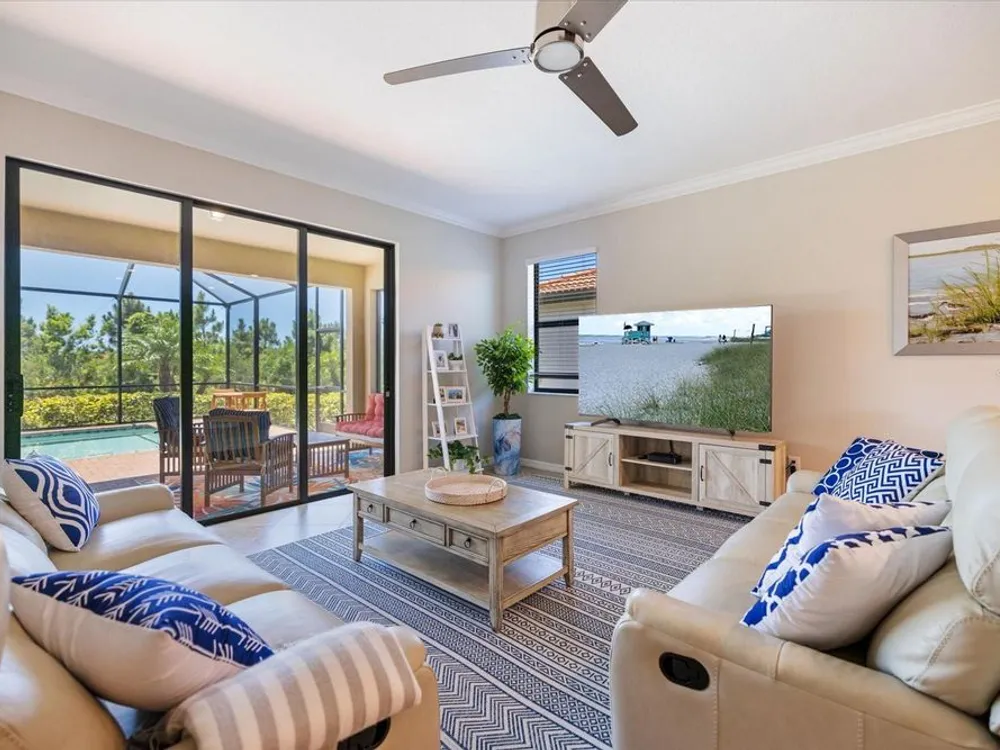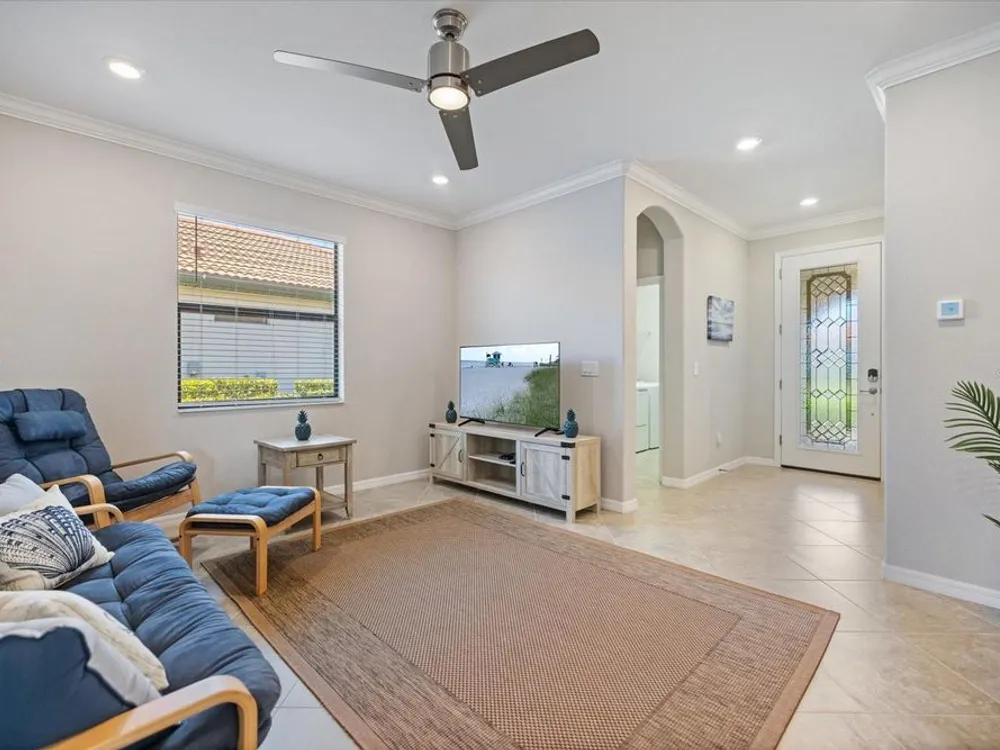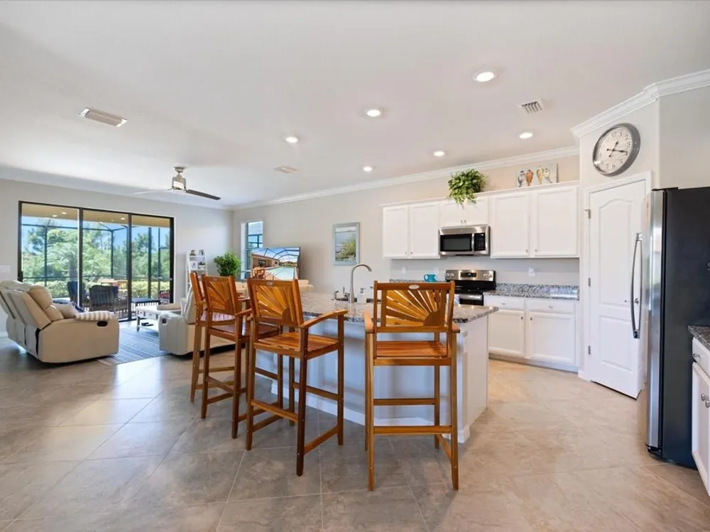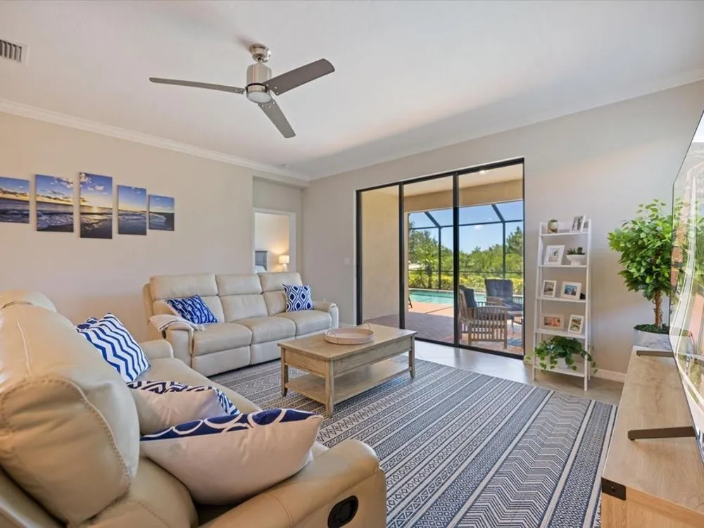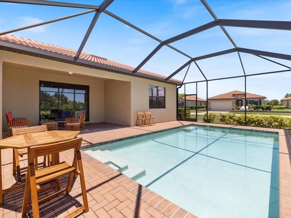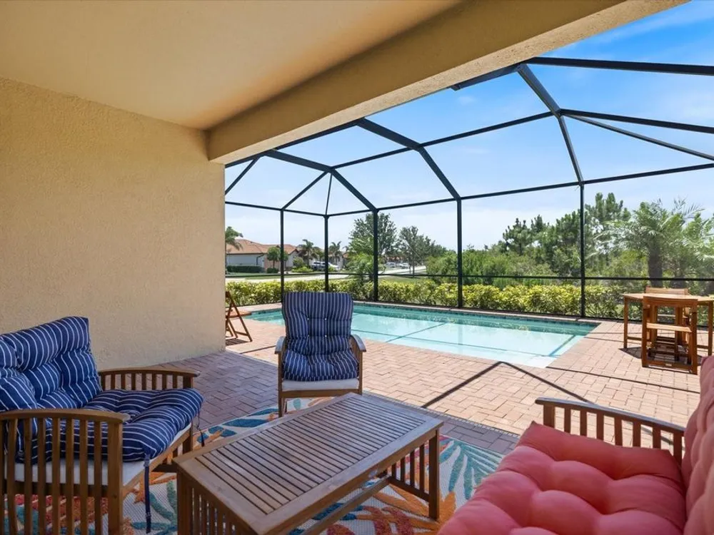 Stunning Sarasota National POOL home in "The Lake Village Community" - A Must See! This lovely 2 bedroom, 2 bathroom home with BONUS FAMILY AREA is "like-new" and nestled on a large corner lot with preserve nature views. This open concept Milan floor plan offers 1,900 sqft with a gorgeous granite kitchen island overlooking the main living room and pool deck area, perfect for entertaining! Enjoy tranquil pool time in this HEATED pool ALL YEAR ROUND - plus, a brand new heater was install in June 2025! The pool decking showcases timeless pavers with plenty of room for dining, lounging and barbequing! The master suit bedroom has a large, modern en-suit glass shower bathroom, closet commode and two walk-in closets. Your guests will have the opposite side of the home and use of the second bathroom, complete with a soaker tub. This has BEEN A SEASONAL HOME to ORIGINAL OWNERS and MAY BE PURCHASED FURNISHED, with a separate sale. Sarasota National offers some of the most unique amenities in the Venice area! This is a LIFESTYLE COMMUNITY with a highly regarded prestigious Gordon Lewis-designed GOLF COURSE, BUT there’s so much more than golf to this community! Being in the "The Lake Village Community", also known as the non-golf membership side, residents can enjoy golf on a "pay to play" basis, but GOLF MEMBERSHIP IS NOT REQUIRED. There's definitely premier golfing is this community, but you'll soon discover there are many more amenities and activities to keep you busy! A favorite among residents is The Palm Club Restaurant & Bar. This is their signature POOL SIDE TIKI BAR with delicious drinks, yummy food, gas fire pits and gorgous pool views! There’s also a charming Coffee lounge, complete with Wi-Fi and tables for working or group fun! Bring your family and friends to the beautiful resort-style community pool for lounging, swim laps (dedicated lap section), hot tub fun, or go play PICKEBALL, Har-tru tennis, bocce ball, or visit the dog park. There's even a 7,300 sqft fitness center with exercise classes and a day spa! This HOA offers so many activities, plus lawncare, irrigation, and basic cable are part of the HOA. Cyclists and walkers also enjoy the breathtaking preserve and wetlands views within this massive 2,400 acre community, all with protected land, designed with input from the National Audubon Society. This Venice community is an ideal location, only 9 minutes from Wellen Park, with it’s new restaurants, weekly Farmers' Market, baseball, and Free Friday night concerts. Plus, our historic downtown Venice is just 15-20 minutes away, along with several nearby beautiful beaches!
