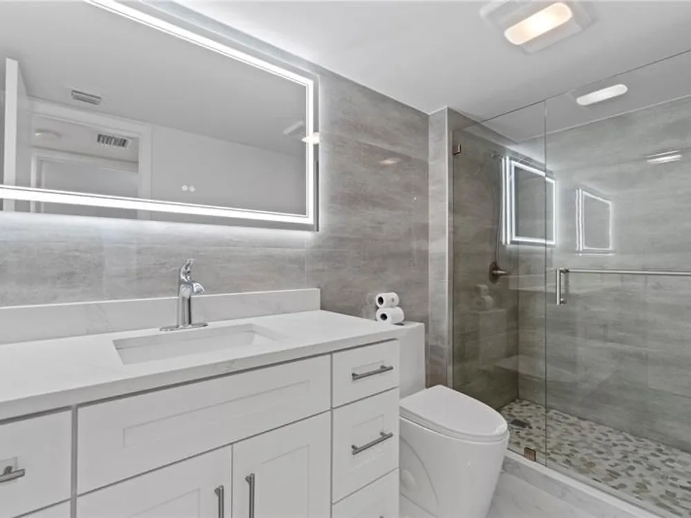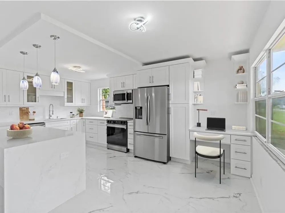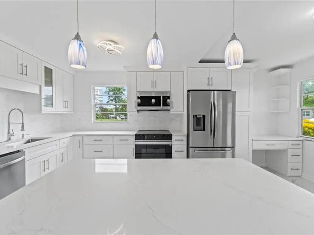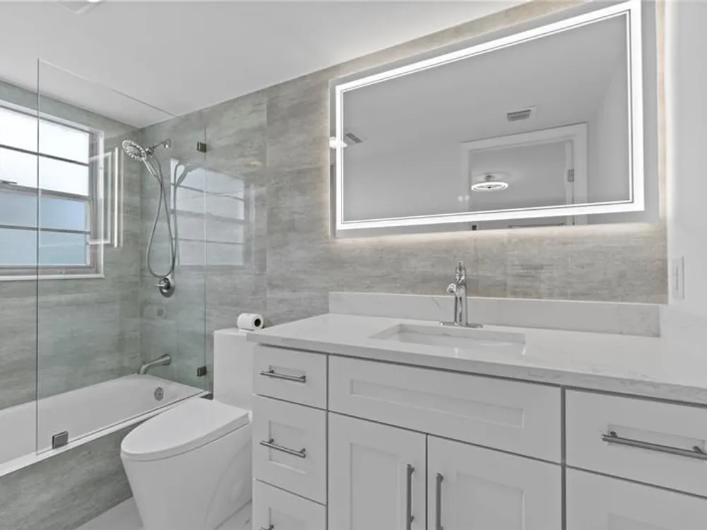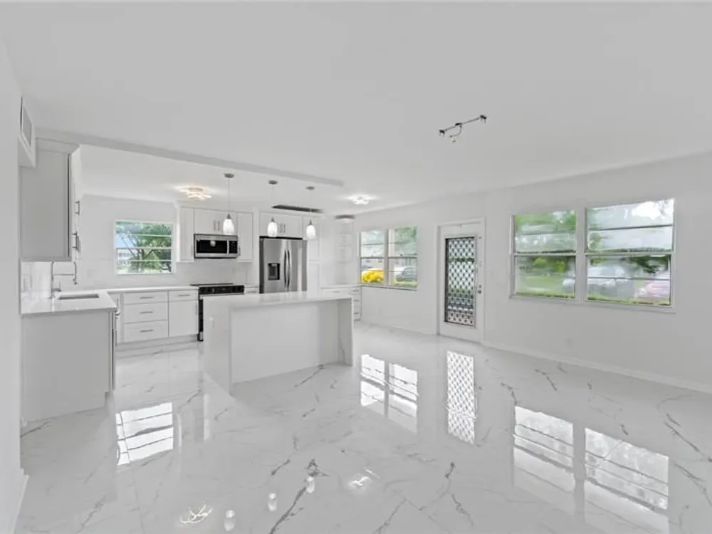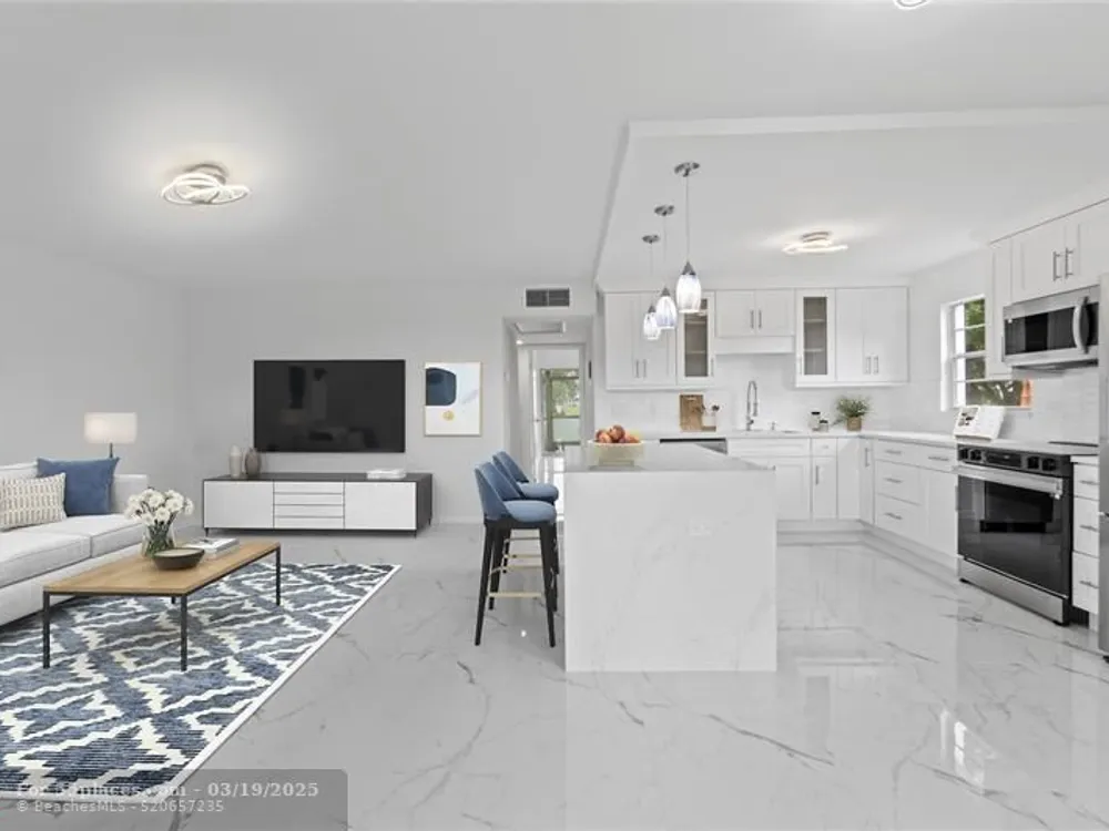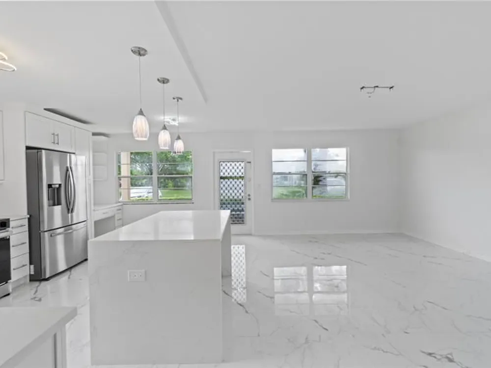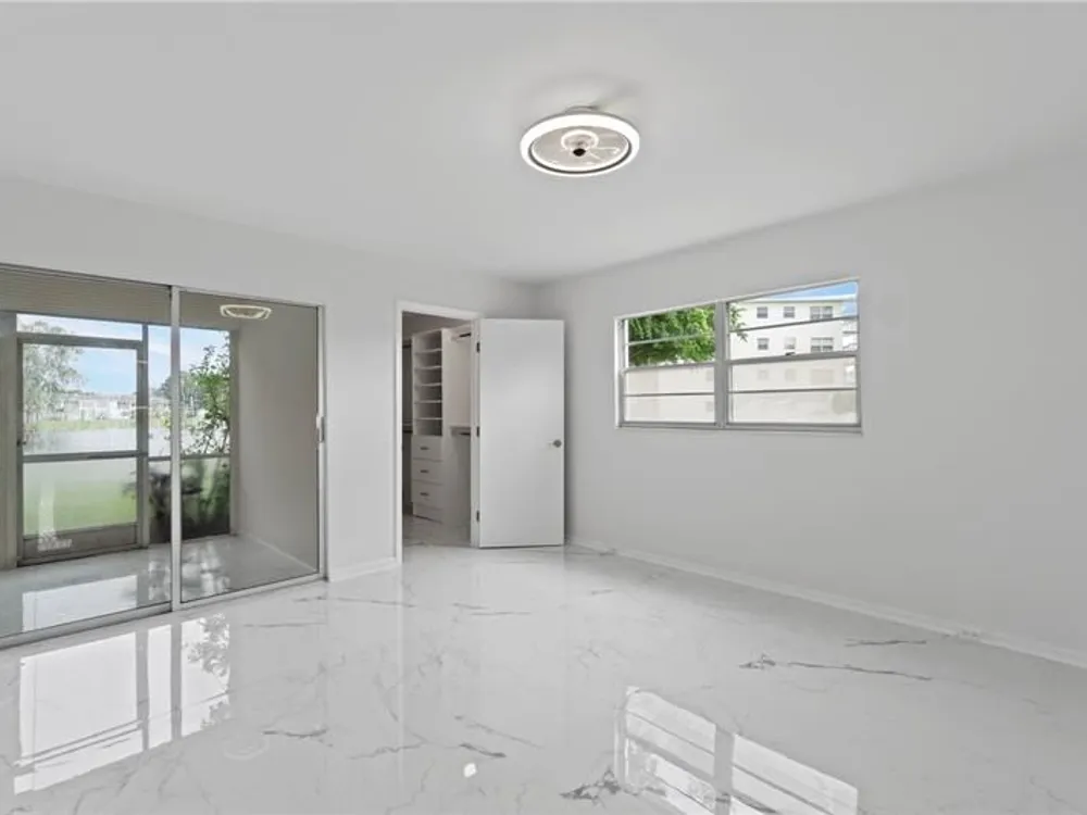 BRAND-NEW IMPACT SLIDING GLASS DOOR INSTALLED, Expanding the Bright Porch Room with a Custom Garden Backyard, Ideal for Outdoor Enthusiasts. Enjoy The Serene Lake View for Relaxing or Entertaining. This Stunning, Fully Renovated 2-Bed, 2-Bath Corner Unit On The First Floor With Lake View Features Tile Flooring Throughout, Custom Closets, Central Air In Both Bathrooms With Extra Fans, Drop Ceiling In Open-Concept Kitchen With Desk Area, Top-Tier Appliances, Waterfall Countertop, Lazy Susan, And Custom Lighting. Premium Fixtures In Kitchen And Baths. Located In A 55+ Resort-Style Community Just 10 Minutes From The Beach—Fitness Center, Sauna, Theater, Pickleball, Pools & More. All Cash