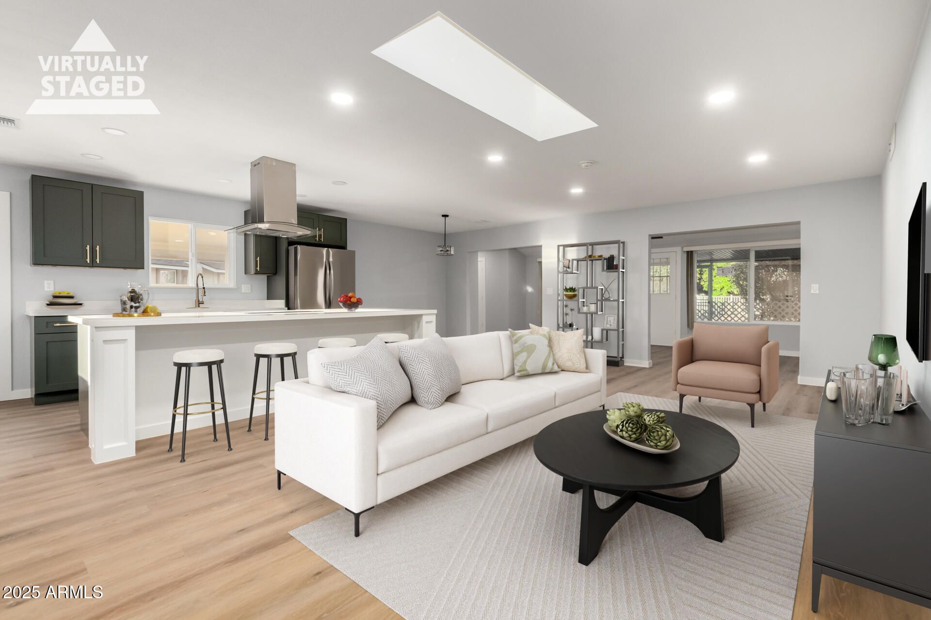 Experience the best of Arizona living in your beautifully updated Sun City retreat! Featuring a bright Arizona room perfect for relaxing or entertaining year-round, this home combines comfort, charm, and low-maintenance living, ideal for those seeking a serene place to retire. Inside, enjoy wood-look floors, soft paint tones, and a stunning kitchen with quartz counters, stainless appliances, and a spacious island. The primary suite offers a modern dual-sink bath, while outside, the screened patio overlooks a private yard with fragrant citrus trees and extra storage space. others say ''Its scary, how Perfect this home is'' I say, the only spooky thing about this home is how quickly it will be gone! Take a look yourself ! Don't let this Arizona treat Vanish!!