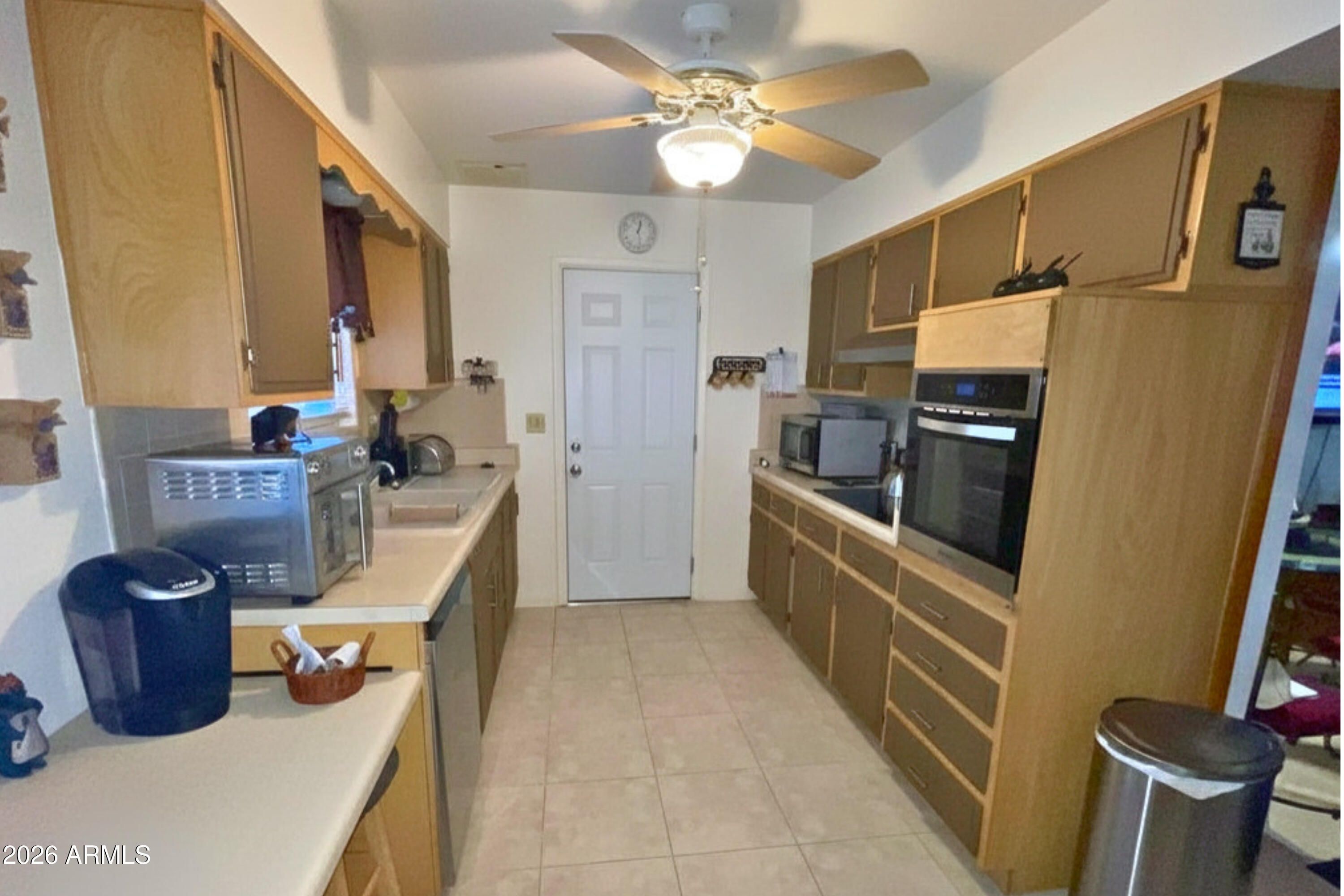 Immaculate, move-in ready detached home in desirable 55+ Sun City--this one stands out from the rest! Gorgeous curb appeal. Spacious great room with wood flooring, freestanding fireplace & bright AZ room. Kitchen features ample cabinetry, pantry, breakfast bar & brand new appliances (2025). Primary suite has ensuite bathrm w/grab bars in tiled shower. Secondary bedrm offers 2 closets & grab bar in 2nd full bathroom for safety! Oversized laundry room with built-ins, utility sink, and washer/dryer included--& large space with shelving perfect for hobbies or extra storage. Garage with built-in cabinets. Main covered patio has block wall/wrought iron fencing plus separate fenced yard. Gate from covered carport opens to 2nd cov'd outdoor area. Roof approx 8 yrs, HVAC approx 10 yrs. This is not your typical Sun City home--immaculately maintained, exceptionally clean, and sellers are motivated to close/move quickly. If your buyers are tired of homes that need work, this is the one they've been waiting for. From the inviting front porch to the thoughtfully designed interior, pride of ownership is evident throughout. Step through double doors into a spacious great room with warm wood flooring, a charming freestanding fireplace, and seamless access to a bright Arizona room--ideal for everyday living or entertaining. The kitchen is clean, functional, and well-equipped with ample cabinetry, a pantry, ceiling fan, low height breakfast bar area, and brand new appliances (2025)--a major value add compared to many homes in the area. The primary suite offers comfort and accessibility with an ensuite bathroom featuring grab bars. One of the biggest advantages of this home is the oversized laundry room with cabinets, utility sink, and included washer & dryer--a flexible space with built in shelving perfect for hobbies, a workshop, home office, or additional storage. The garage also includes built-in cabinetry, giving you even more usable space. Outdoor living is just as appealing, with a covered patio featuring a block wall and wrought iron fencing that creates a defined, private feel. The separate fenced yard with mature, low-maintenance landscaping makes enjoying Arizona mornings and evenings effortless. Gated access from the covered carport keeps vehicles or recreational items discreetly tucked away. Major systems are already addressed with a roof approx. 8 years old and HVAC approx. 10 years old, adding peace of mind. Clean homes like this--especially with this level of flexibility and storage--don't come up often in Sun City.