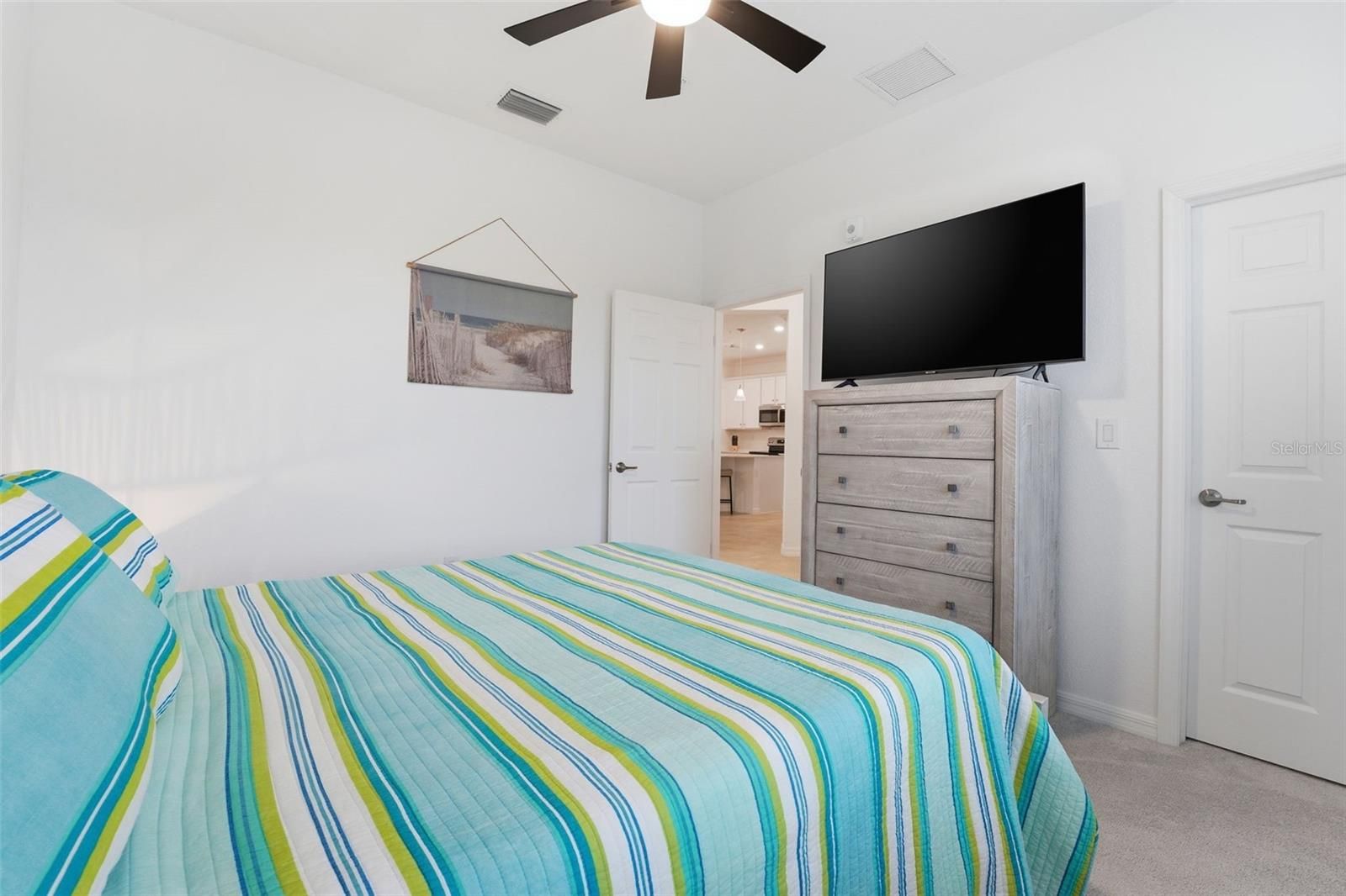 - Ceiling Fan(s), Eat-in Kitchen, High Ceilings, In-Wall Pest Control, Kitchen/Family Room Combo, Open Floorplan, Solid Surface Counters, Thermostat, Walk-In Closet(s), Window Treatments