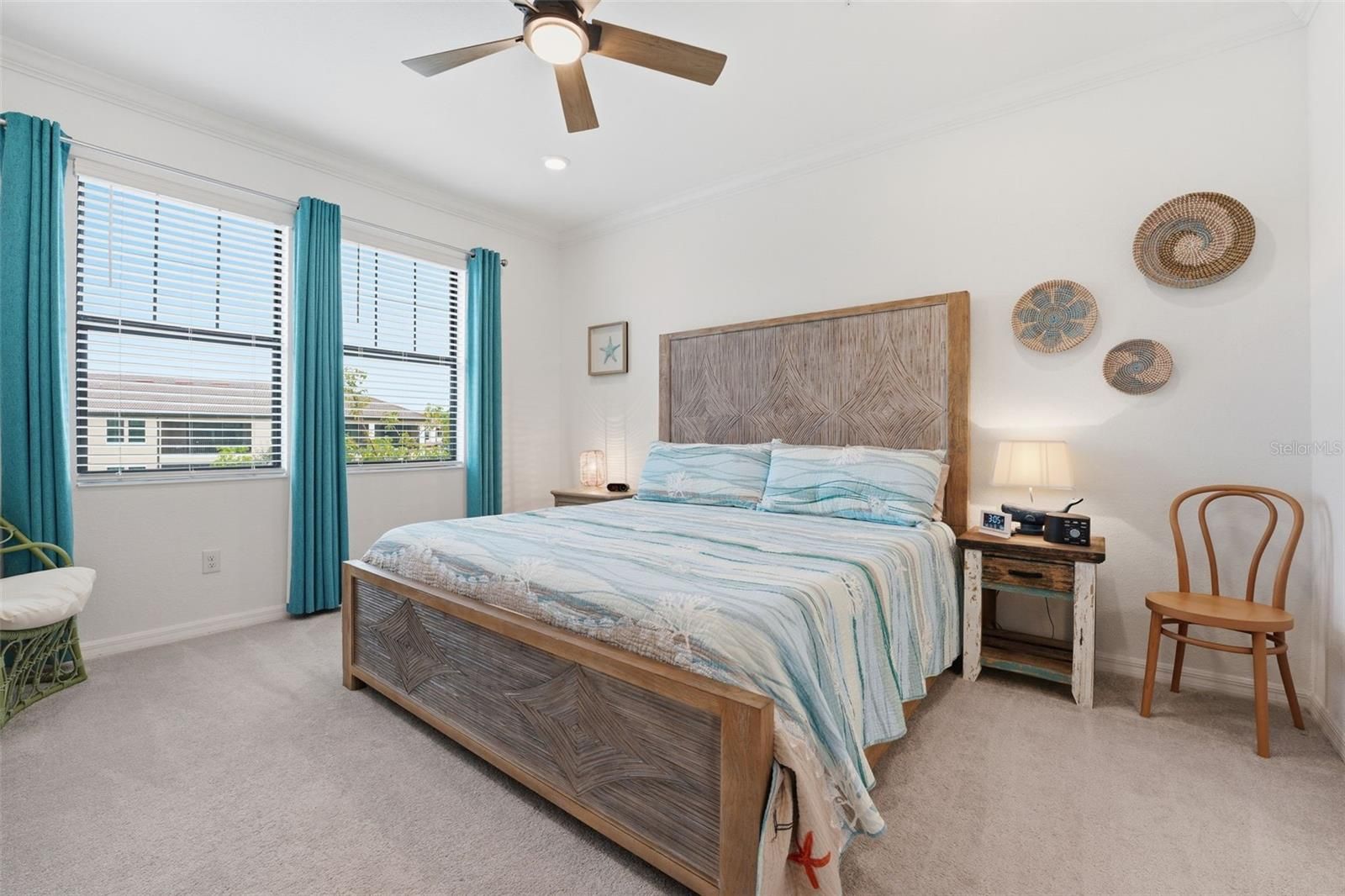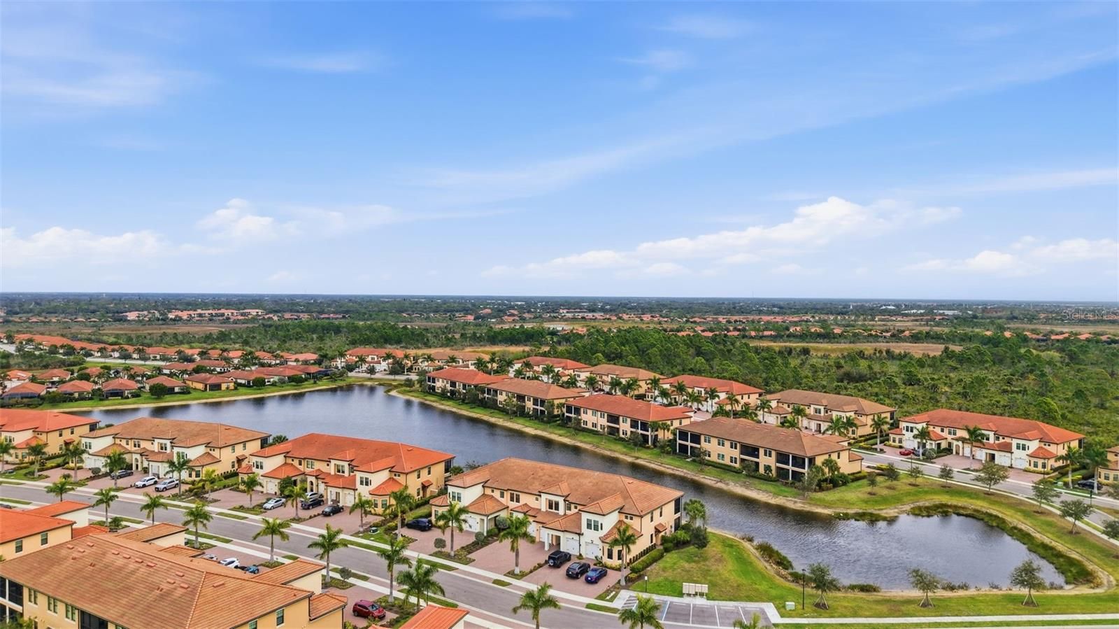 Now is your opportunity to own this TURN-KEY FURNISHED TOP-FLOOR condo with beautiful pond views, located in the highly sought after guard gated community of Sarasota National. Enjoy tranquil views off the back as you sit and relax on the oversized screened lanai which is upgraded with privacy sunshades and a wall mounted TV. Off the front, you can also see lake views that will glisten in dramatic hues as the sun sets across the water. This condo is flooded with natural light and boasts an open concept floor plan featuring 3 proper bedrooms with tons of closet space and 2 bathrooms. The unit is outfitted in beautiful high-end furnishings that are sure to impress. Completely maintenance free, this home is outfitted with HURRICANE IMPACT GLASS and includes a 1 car attached garage and a paver driveway that gives you additional parking. The open concept floor plan is perfect for entertaining, and a wall of sliders in the living room allows you to enjoy picturesque views of the pond as you move through the space. The kitchen is stunningly appointed with shaker style cabinets that provide tons of storage, a massive island with sparkling quartz countertops, subway tile backsplash, and a stainless-steel appliance package by GE. Other upgrades include tile on the diagonal throughout the main living areas, extra recessed lighting, decorative crown moldings, ceiling fans, and light fixtures. The large primary suite captures stunning views, and the en suite spa-inspired bathroom features a large dual sink vanity with tons of extra storage, walk-in glass shower, a separate water closet for privacy, and a HUGE walk-in closet. Located on the opposite side of the home creating privacy for all, you will find the second bedroom at the top of the stairs and the third bedroom in a private alcove. The second bathroom is spacious and offers loads of storage, and there is an extra linen closet as well. There is an ample-sized, in-unit laundry room. ALL exterior maintenance is included, such as roof replacement, re-painting of the exterior; all ground maintenance including re-mulching and irrigation, cable TV, pest control, water, sewer, trash, and building insurance! This condo is perfect as a full-time residence, a part-time seasonal home, or even a great investment that will generate substantial rental income whether rented annually or as a short-term seasonal rental. Located in one of the quietest parts of the community, with quick access to the back owner's gate, allowing you to enter and exit the community with ease. Live like you are on a 5-star vacation with a 30,000sf clubhouse with resort style pool, hot tub, outdoor tiki bar serving food and drinks daily, a coffee house, fine dining restaurant, 7,000sf fitness center with top-of-the-line equipment and classes, day spa, card room, bocce ball, pickle ball, tennis, dog park, playground, and event lawn! Sarasota National is a guard gated 2400-acre International Audubon Bird Sanctuary that offers some of the most beautiful water and preserve views in all of Venice. This home is just minutes from the new and exciting town center of Wellen Park, the Atlanta Brave's spring training camp at the CoolToday Park Stadium, and tons of area amenities. Explore 3 local beaches and historic downtown Venice, all less than 15 minutes away! If you have dreamed of owning a piece of Florida's paradise, look no further than Sarasota National... one of Venice's premiere communities!