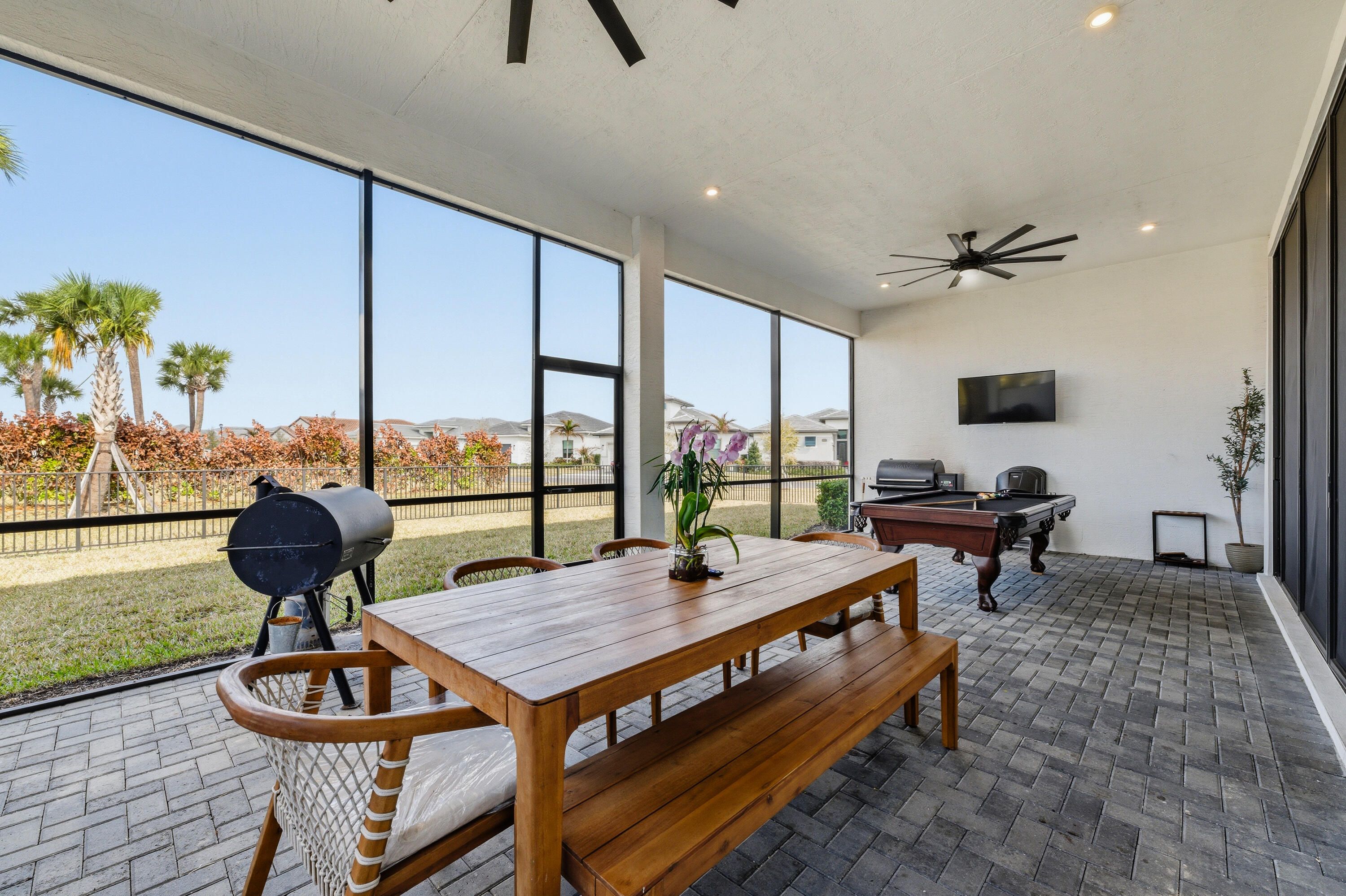 When lifestyle and luxury collide, you discover this exceptional corner residence in the most desirable area of Port St. Lucie. Featuring 4 Bedrooms, 4 1/2 Baths, this home offers the perfect blend of elegance, comfort, and prime location—just minutes from top dining, shopping, golf, and beaches. From the moment you enter, you're captivated by curated interiors with custom Restoration Hardware finishes throughout. Built with the Builder highest upgrade package, every detail has been elevated, including designer lighting and fixtures. Each spacious bedroom features a private en-suite bath, while the secluded owner's suite provides a serene retreat. The chef's kitchen with a grand island and walk-through pantry creates the ultimate space for entertaining and everyday luxury living. This community offers resort-style living with a modern clubhouse, EGYM fitness center, group classes, dining, and a poolside bar. Enjoy pickleball, tennis, basketball, and a full calendar of events. This vibrant community delivers luxury amenities, active living, and year-round recreation for all ages.