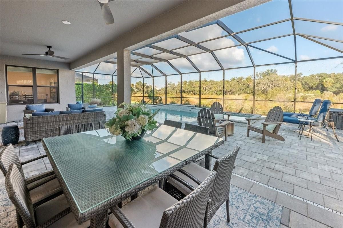 Magazine-Worthy Luxury Meets Resort Living in Skye Ranch! Be the envy of your friends and family in this stunning, fully completed Sand Key model home-a true showcase of luxury and style. Nestled on a wedge-shaped 1/4-acre lot with panoramic views of two wetland lakes-Completely private and most sought after lot and a tranquil preserve, combines sophisticated design, exceptional upgrades, and a lifestyle that feels like a permanent vacation. This 5-bedroom + bonus room, 4.5-bath residence with a 3-car garage has been meticulously upgraded inside and out. Outdoor Paradise Step into your private sanctuary-a resort-style retreat anchored resort heated saltwater pool with an infinity-edge spa, sun shelf with bubblers, long underwater bench, and dramatic water Feature that light’s up the night. The Clearview screen, paver patio, and outdoor Florida kitchen with a Blackstone-style grill make entertaining effortless. Enjoy daily visits from roseate spoonbills and sandhill cranes as you relax poolside, a living postcard of Florida’s natural beauty. Designer Interiors & High-End Finishes- Custom built ins, crown molding, tray ceilings, and upgraded floors-Every very inch of this move-in ready home exudes modern elegance: Wood-look tile flooring throughout the main areas-Pocketing sliders that blend indoor and outdoor living Designer lighting and tray ceilings all 8’ doors, crown molding, and an oak staircase Finished custom closets and water softener system, Tri-fuel generator hook up, car charger & epoxy floors in garage. The primary suite, located on the first floor with serene water views, is a luxurious retreat featuring a spa-inspired bathroom with a soaking tub, single-entry shower, and abundant natural light. The chef’s kitchen is equally impressive, offering Quartz countertops and a large island Gas range and oversized apron-front sink French door refrigerator and walk-in pantry A downstairs Office/Study with an additional Sitting room offers ample living space while a powder room ensures comfort for guests. Upstairs Flexibility-The second floor offers endless possibilities with four additional bedrooms—2 ensuite Bedrooms plus a huge jack "n" Jill bath and a large bonus room ideal for a pool table, media lounge, home gym, or playroom. Unmatched Community Amenities Living here means exclusive access to The HUB, Skye Ranch’s 25,000+ sq. ft. amenity center. Enjoy a state-of-the-art fitness facility, exercise classes, indoor basketball and pickleball courts, a climbing wall, teen lounge, demonstration kitchen, and more. Outdoors, indulge in multiple resort pools, splash pads, and frequent community events like food truck rallies. Nearby Turner Park adds baseball and soccer fields, beach volleyball, playgrounds, and dog parks for all ages to enjoy. Top-Tier School Access & Ideal Location Perfectly situated within the brand-new Skye Ranch School District (K–8) all within the same community, and minutes from Suncoast Academy, Out-of-Door Academy Lower Campus, and The Classical Academy. World-famous Siesta Key Beach is less than 30 minutes away, while Myakka River State Park is just 8 minutes in the other direction. Multiple golf, tennis, and outdoor recreation options are also close by. Your Sanctuary-This home delivers the best of both worlds, quick access to Sarasota’s vibrant lifestyle and a peaceful retreat to recharge and unwind. Schedule your private tour today and experience why Milky Way is truly the crown jewel of Skye Ranch.