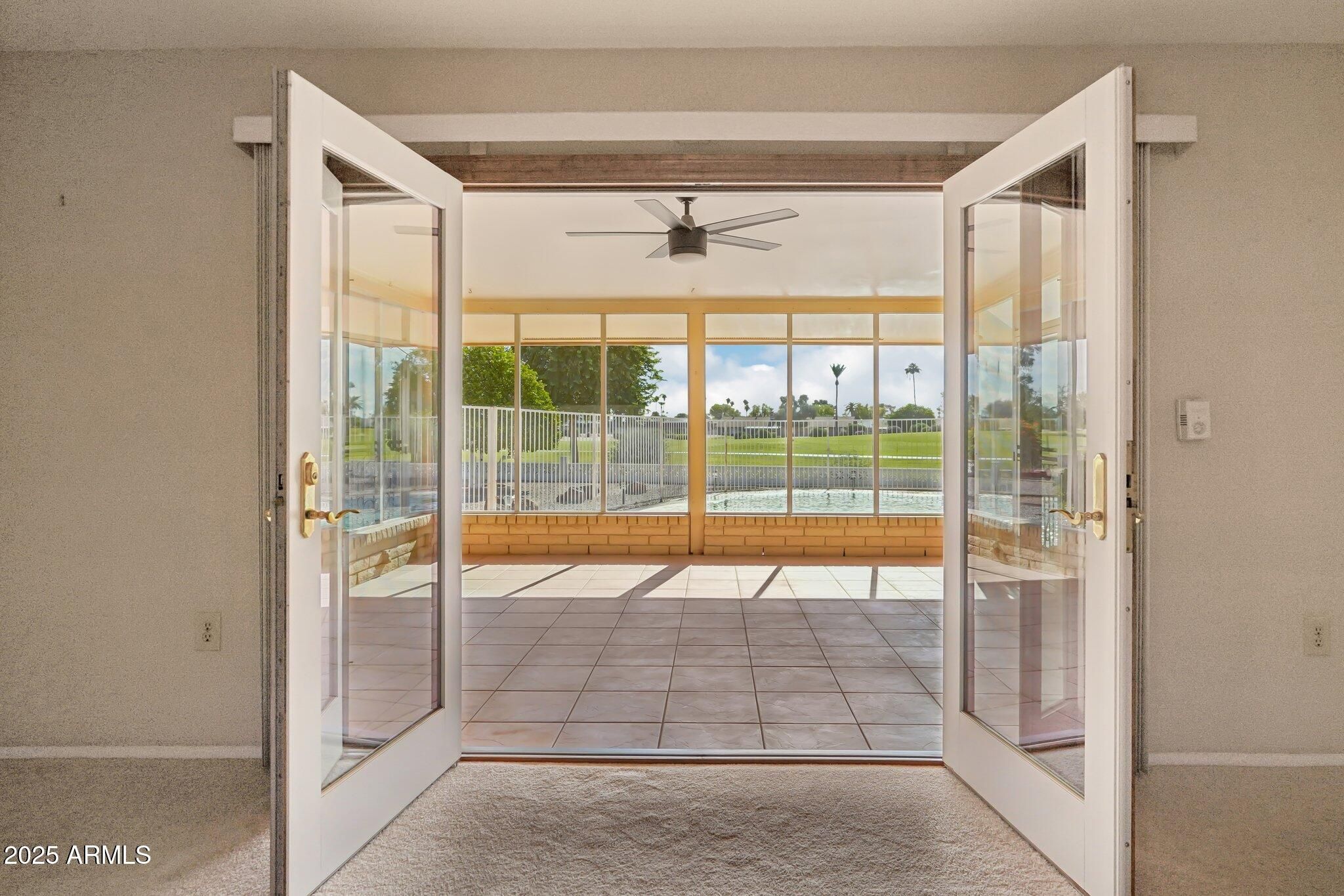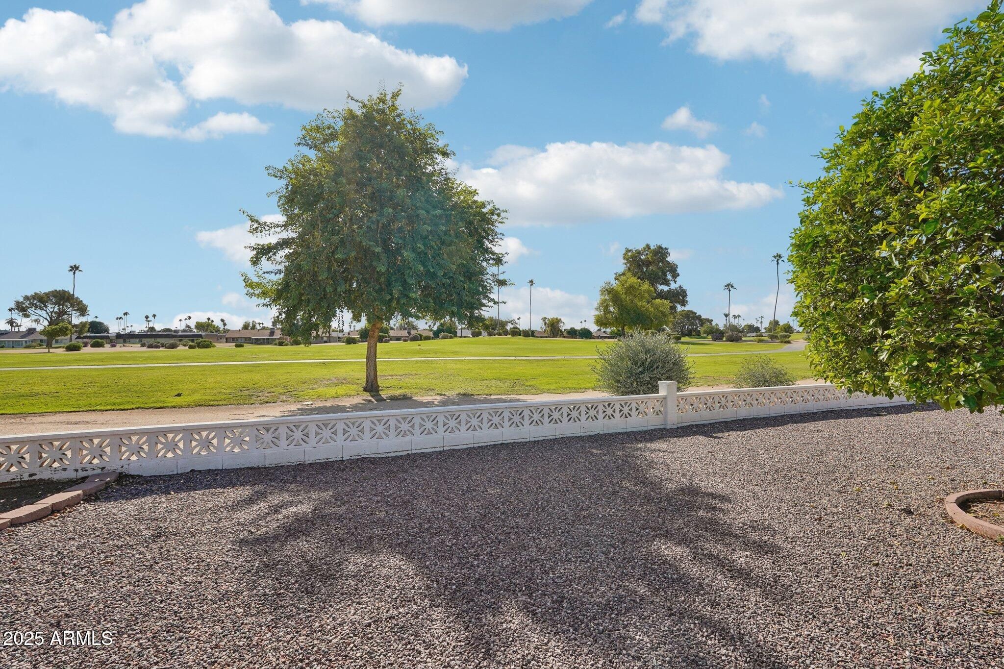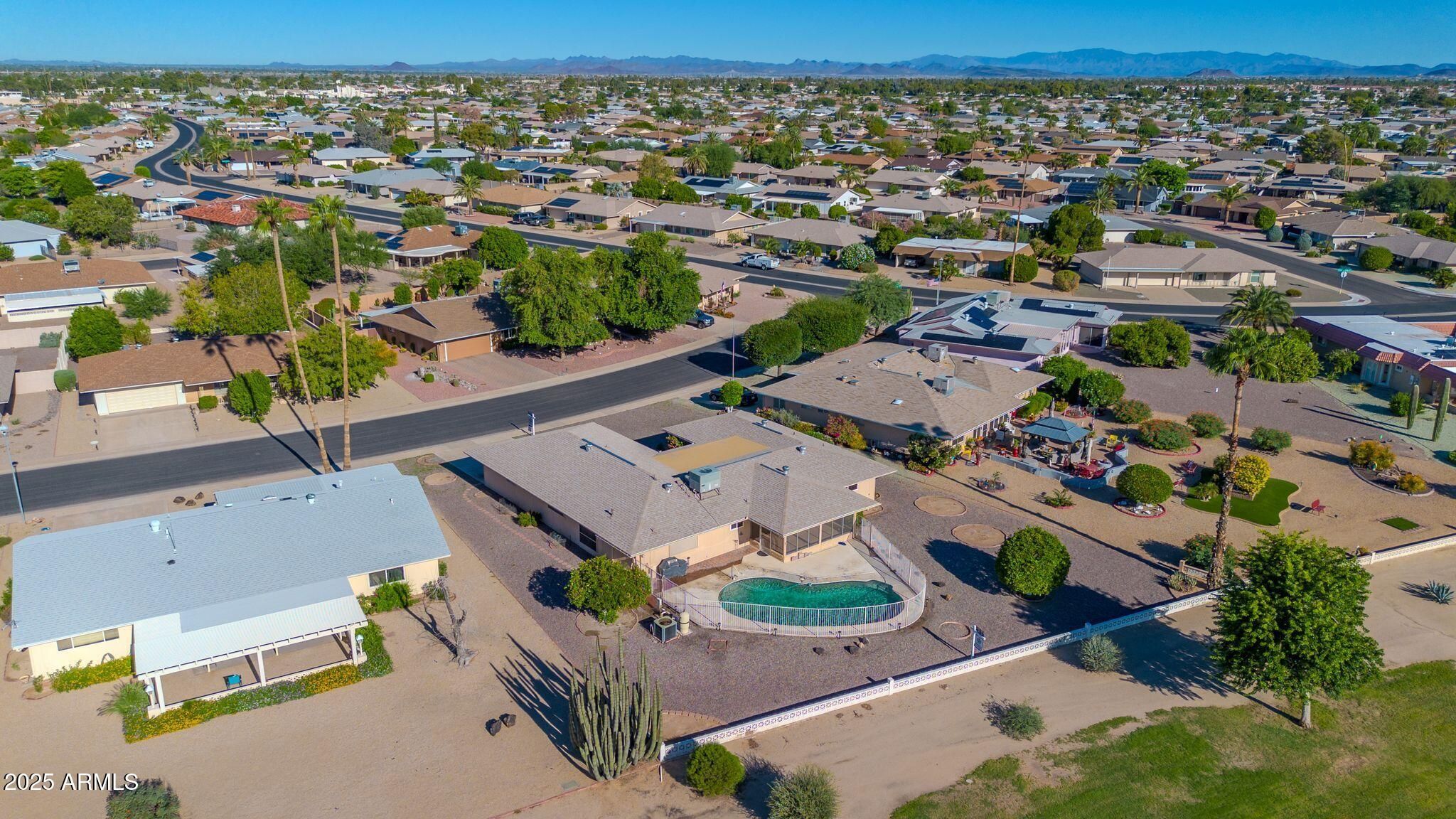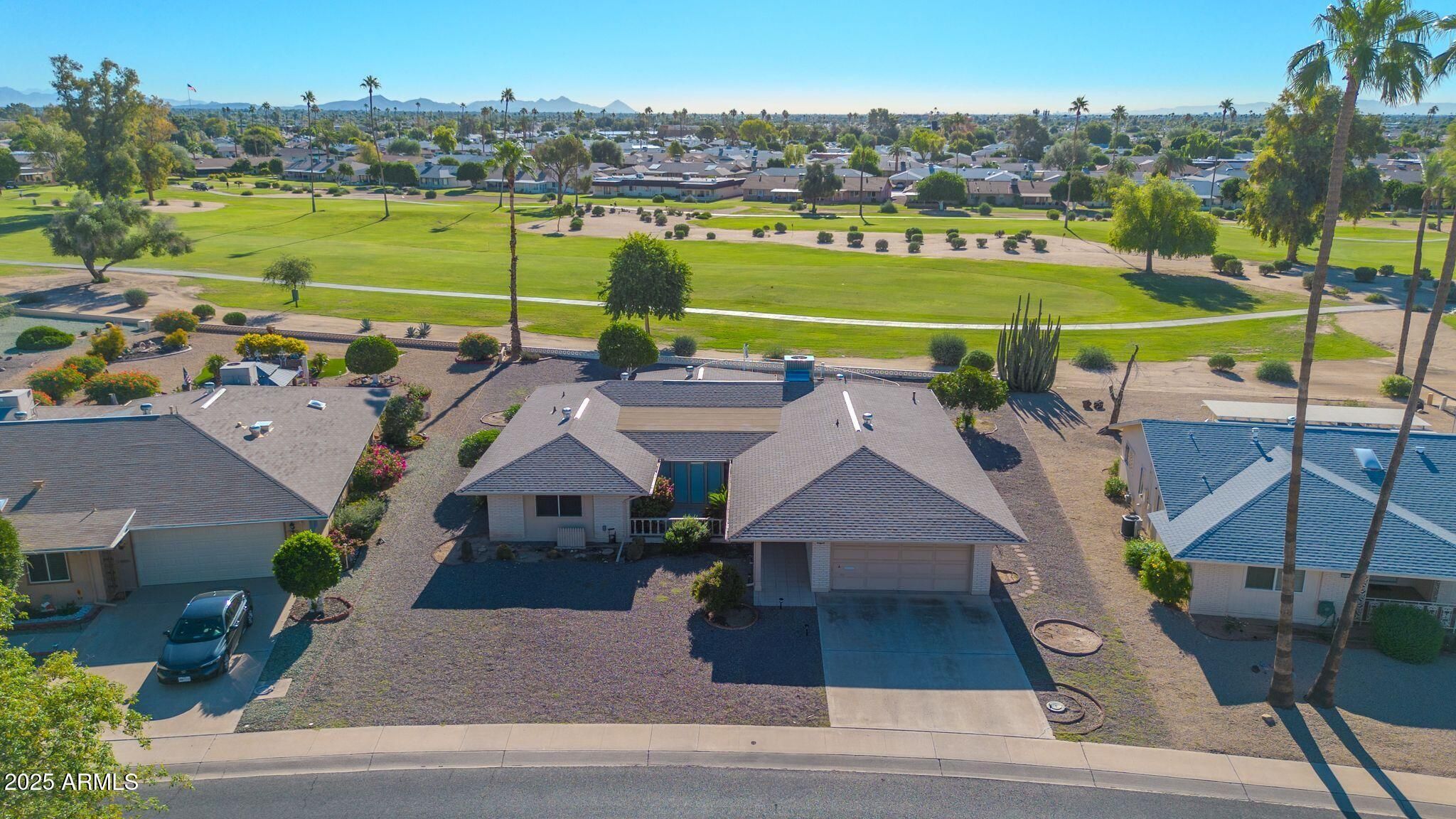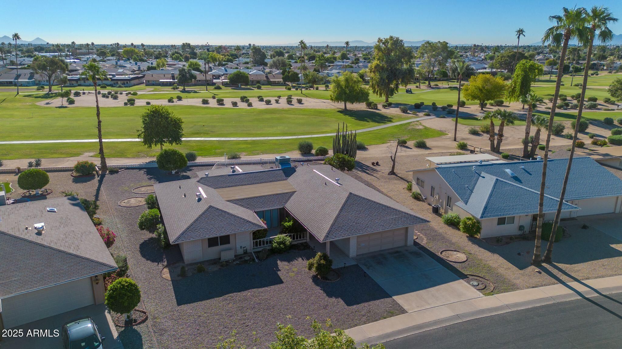This spacious Columbine model sits on a large lot with breathtaking double fairway views of the Sun City Lakes East Golf Course and those famous AZ sunsets. Enjoy resort-style living with a Pebble Tec pool and multiple outdoor spaces for relaxation and entertaining. Inside, the home features two master suites plus an office/guest bedroom, a kitchen with oak cabinetry and granite countertops, and a massive great room designed for gatherings and comfort. Start your day with sunrises from the screened patio or the pool deck overlooking the pool and golf course, and unwind in the evening on the front patio as you watch the sunset and the neighborhood come to life.