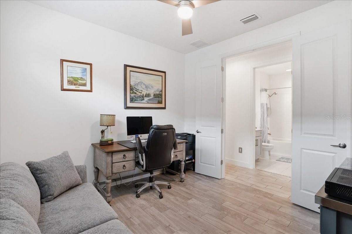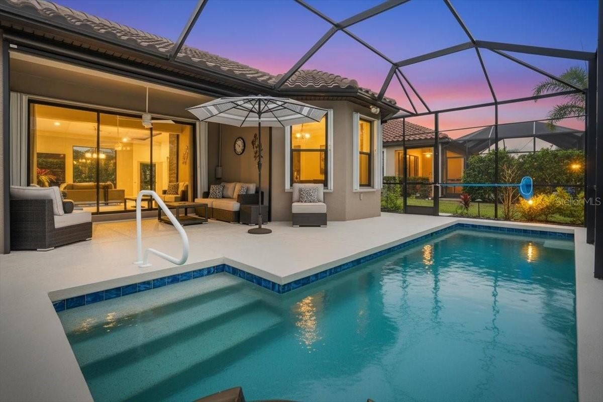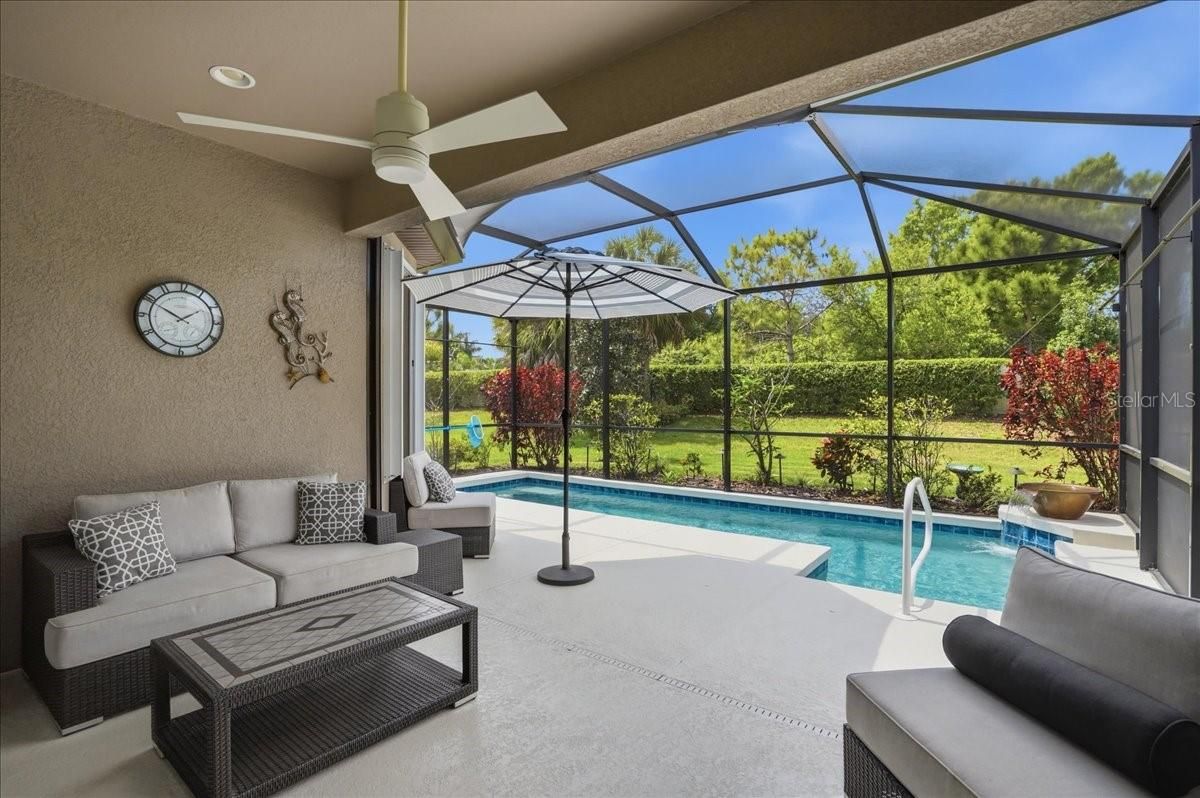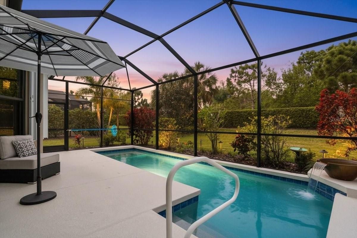 Welcome to a home that truly checks every box—style, comfort, and a private, peaceful setting. Located in the highly desirable Esplanade at Artisan Lakes in North Manatee County, this beautifully appointed 2-bedroom, 2-bath residence with a den/study offers a thoughtfully designed layout paired with elevated finishes throughout. From the moment you enter, the home feels bright and inviting, with high ceilings and elegant tray details enhancing the living room, dining area, and Owner’s suite. The open-concept design flows seamlessly, complemented by wood-grain porcelain tile flooring that adds warmth, durability, and a cohesive look throughout. The kitchen is designed to impress, featuring upgraded GE Café appliances, including a double oven and six-burner gas stove. Quartz countertops and ample cabinetry provide both style and functionality, making the space ideal for everyday living or entertaining. A split floor plan offers privacy and flexibility. The Owner’s suite is positioned at the back of the home, creating a serene retreat with peaceful preserve views. The secondary bedroom and den are located toward the front, perfect for guests or a home office. The den, complete with French doors, offers versatility to fit your lifestyle. Outdoor living is where this home truly shines. The screened lanai opens to a heated pool with a tranquil waterfall feature, creating a resort-style experience right at home. Enjoy a private preserve backdrop along with a picturesque pond view to the right, offering both beauty and privacy. Powered shades on the lanai provide added comfort and convenience throughout the day. Additional features include a newer HVAC (2024), hurricane shutters, a whole-house water softener with reverse osmosis filtration, and a 4-foot extended garage with an epoxy-coated floor, and lots of additional storage ideal. A fenced side yard adds extra functionality, perfect for pets or outdoor enjoyment. The Esplanade at Artisan Lakes offers a gated, resort-style lifestyle with two amenity centers, resort pools, dog parks, and a full schedule of pickleball and tennis programs, along with clubs and social activities. The wellness center features state-of-the-art fitness equipment, group classes, personal training, and water aerobics. Residents also enjoy spa services, wine tastings, cooking events, and creative experiences. Low-maintenance living is part of the appeal, with HOA dues covering lawn care, irrigation, cable, and high-speed internet. Conveniently located between U.S. Highway 41 and I-75 off Moccasin Wallow Road, this growing area offers easy access to shopping, dining, and a new medical center and hospital just a few miles away. Beautiful Gulf Coast beaches, including Siesta Key, Anna Maria Island, and St. Petersburg, are all within an easy drive of under an hour, making it easy to enjoy the best of Florida living.