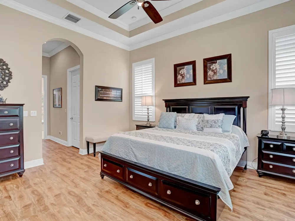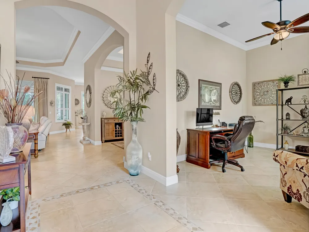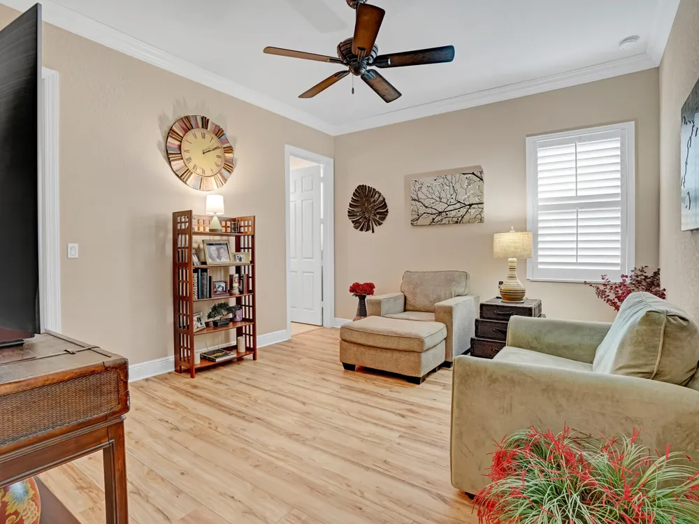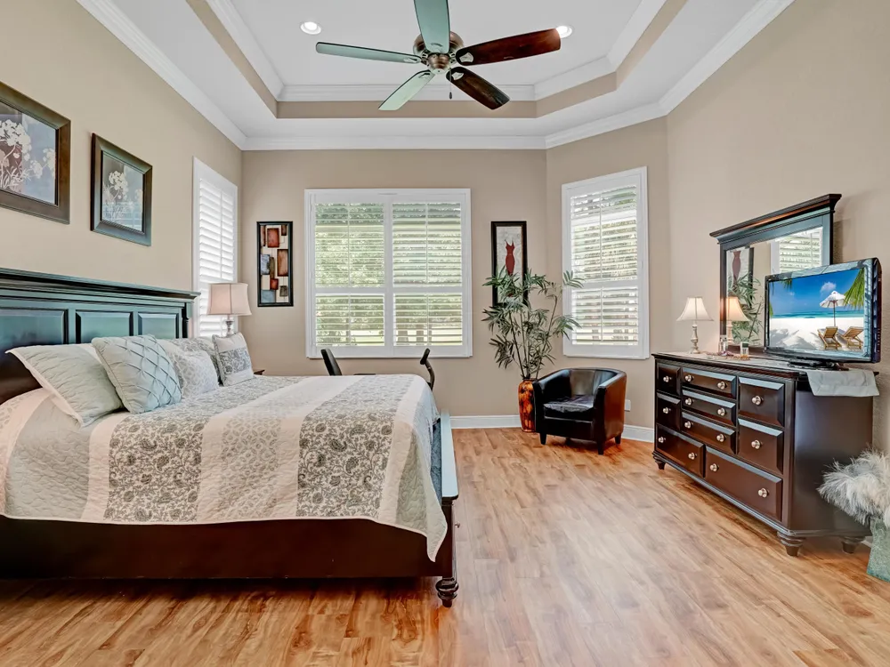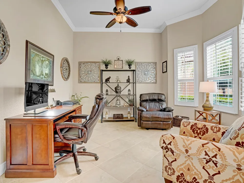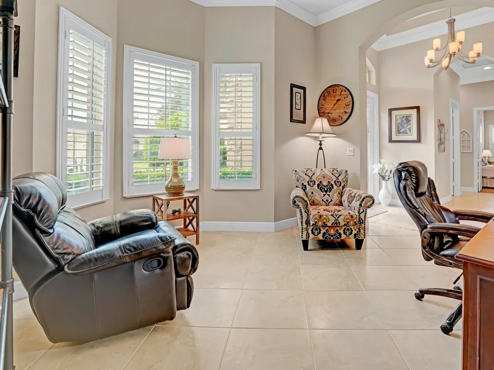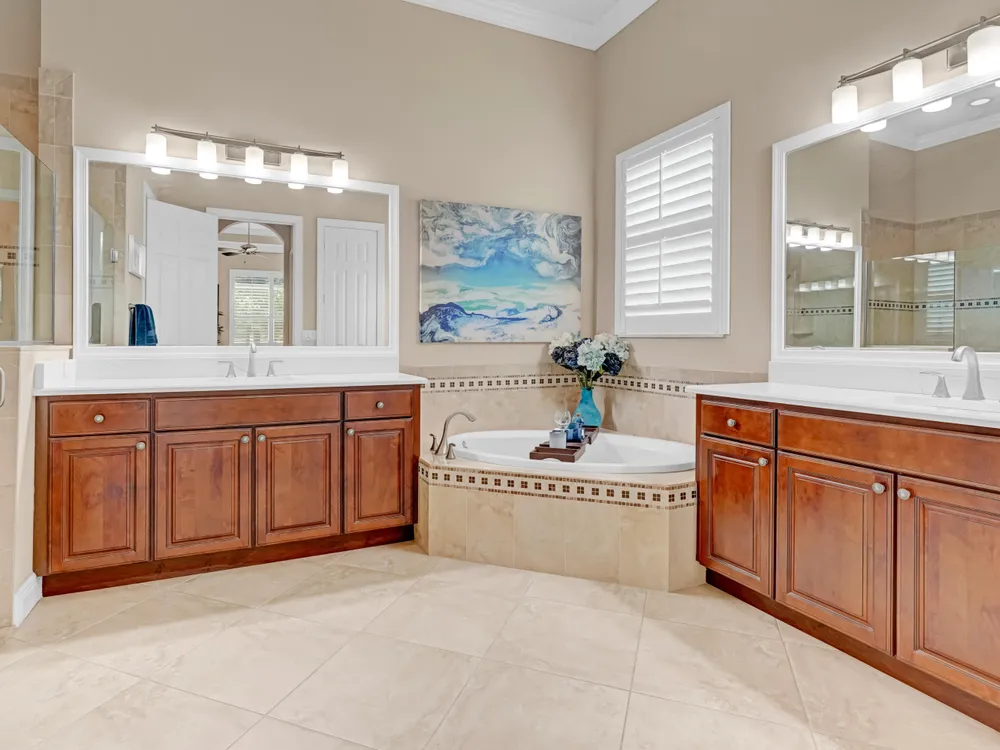 - Pantry, High Ceilings, Walk-In Closet(s), Home Office, Breakfast Area, Separate/Formal Dining Room, Snack Bar, Impact Glass, Plantation Shutters, Single Hung Metal Window(s), Dual Sinks, Primary Downstairs, Separate Shower, Bathtub