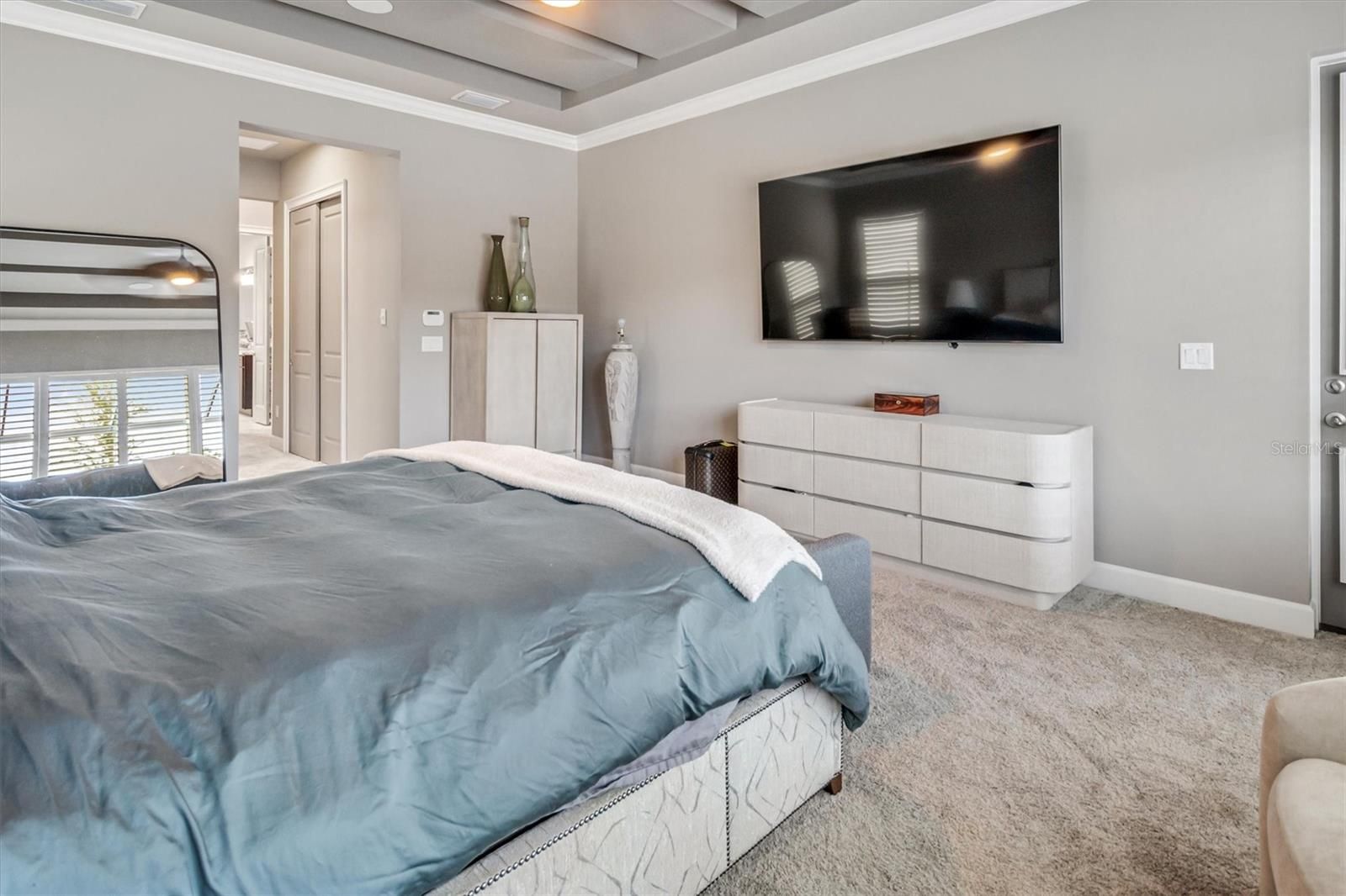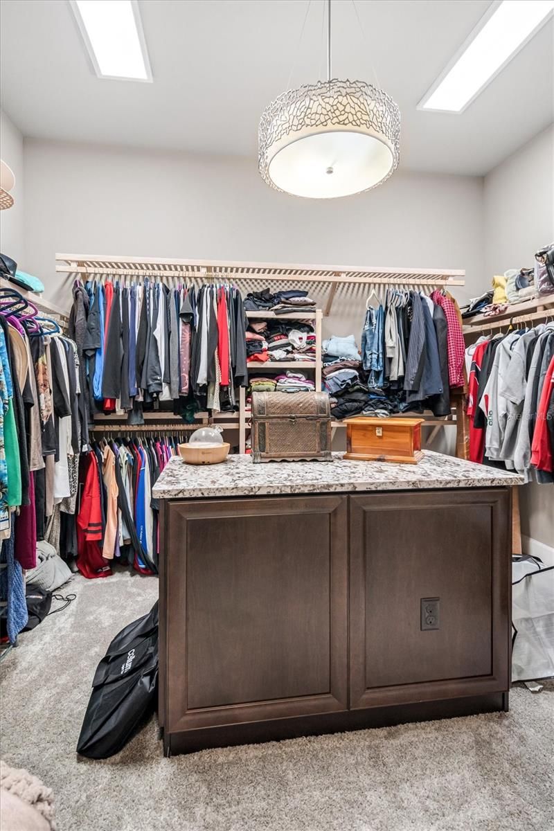 - Accessibility Features, Ceiling Fan(s), Eat-in Kitchen, High Ceilings, Kitchen/Family Room Combo, Living/Dining Room, Open Floorplan, Main Level Primary, Sauna, Solid Surface Counters, Solid-Wood Cabinets, Split Bedrooms, Thermostat, Walk-In Closet(s), Wet Bar