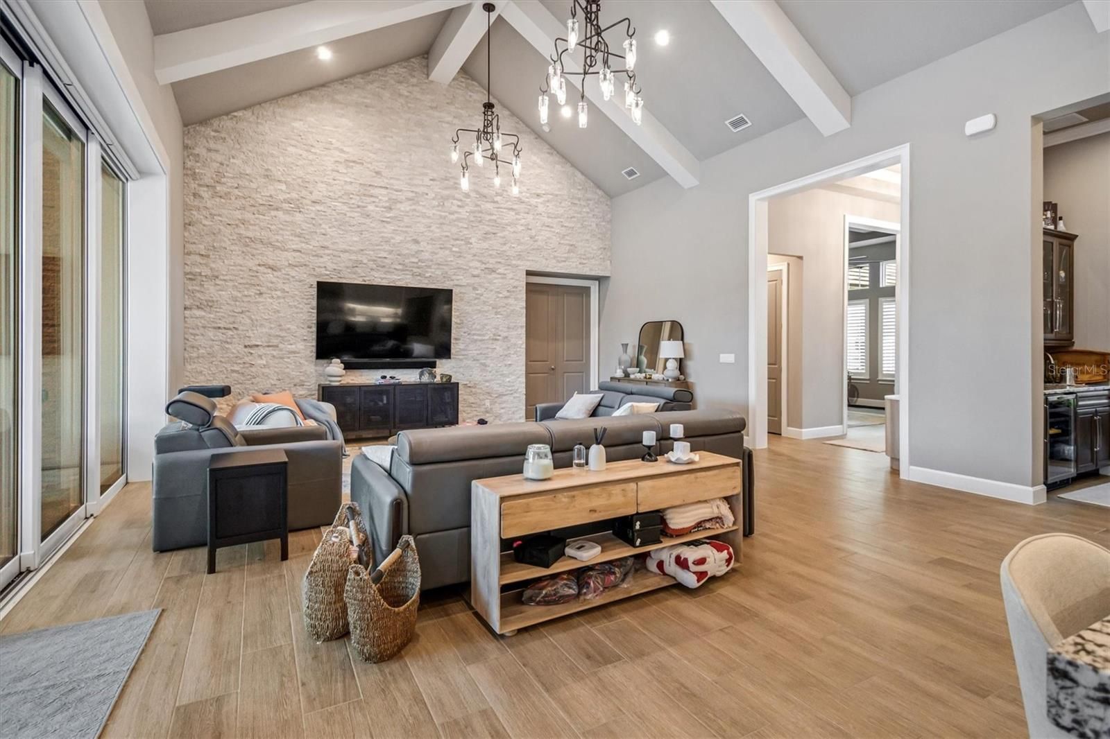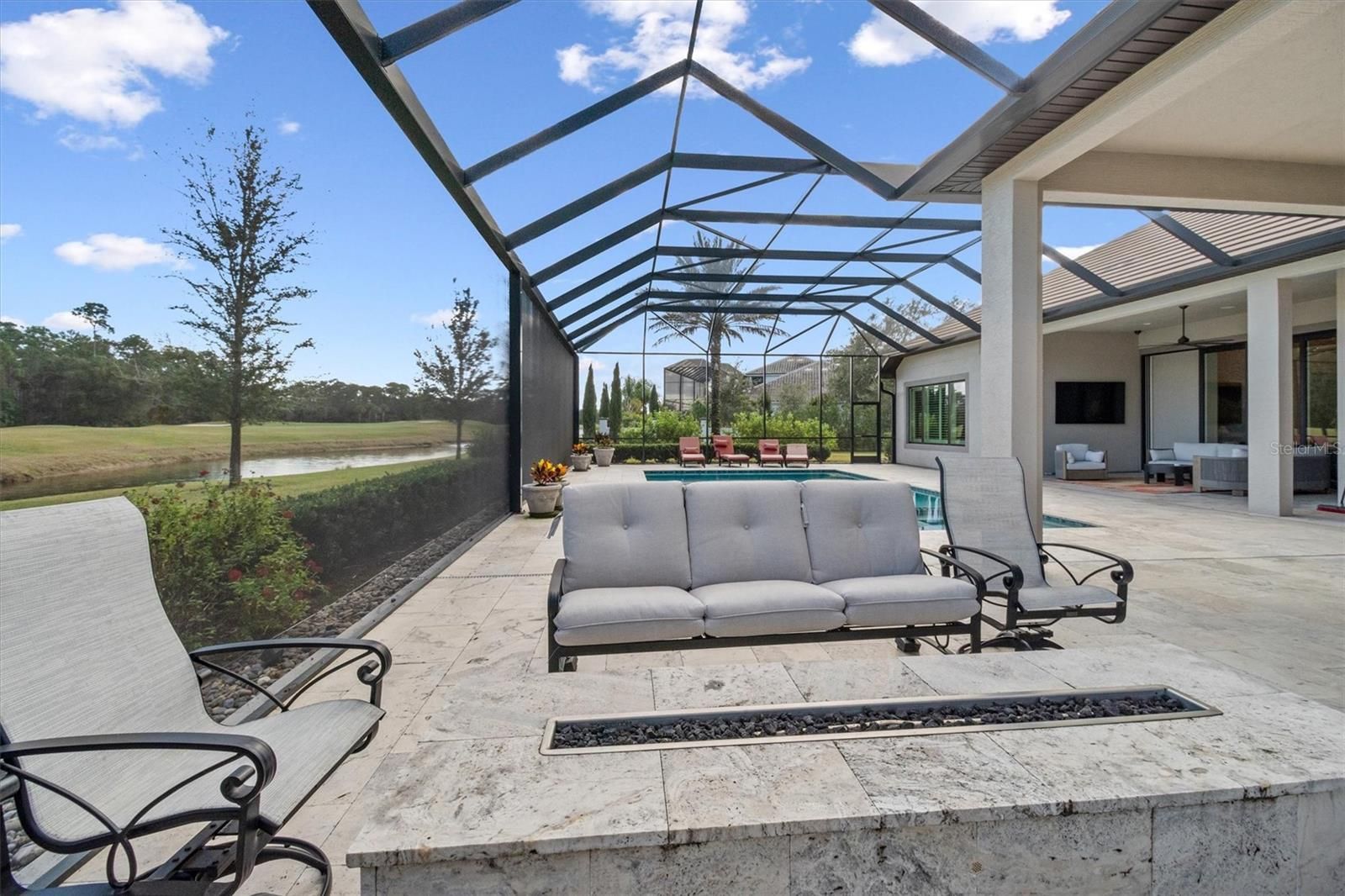 Live where every day feels like a private retreat. This former ICI model home is perfectly positioned on the 14th hole within Plantation Bay—a premier, gated private golf course community featuring 45 holes of championship golf, nine tennis courts, ten pickleball courts, a state-of-the-art fitness center, spa, on-site restaurants, and two stunning clubhouses, including the new $30 million Founders Clubhouse and the Prestwick Clubhouse memberships available. Wake up to peaceful pond and fairway views and spend your days immersed in an active, resort-inspired lifestyle. Golf-cart-friendly living completes the experience. Inside, this 4-bedroom, 4.5-bath designer showcase is built for both comfort and entertaining. Oversized pocket sliding doors open to a fully screened lanai, creating seamless indoor-outdoor living. Enjoy a gas-heated pool and spa with Bluetooth, remote controls, and integrated speaker system, plus a gas fire pit, outdoor kitchen, and expansive patio—perfect for evening gatherings under the stars. The chef’s kitchen, wet bar, and private wine room elevate hosting, while the owner’s suite offers a spa-like escape with a walk-in shower and soaking tub. Thoughtful upgrades include internal blinds on select sliders, electric patio shutters, an advanced camera and Luma system, whole-home water purification with instant hot water at the kitchen and outdoor sinks, upgraded water heater filtration, and an EV charging station in the garage. Two separate garages accommodate four vehicles, and the laundry room even includes a pet bath. This is more than a home—it’s refined golf course living paired with world-class amenities and modern luxury, all within one of Florida’s most desirable private communities.
