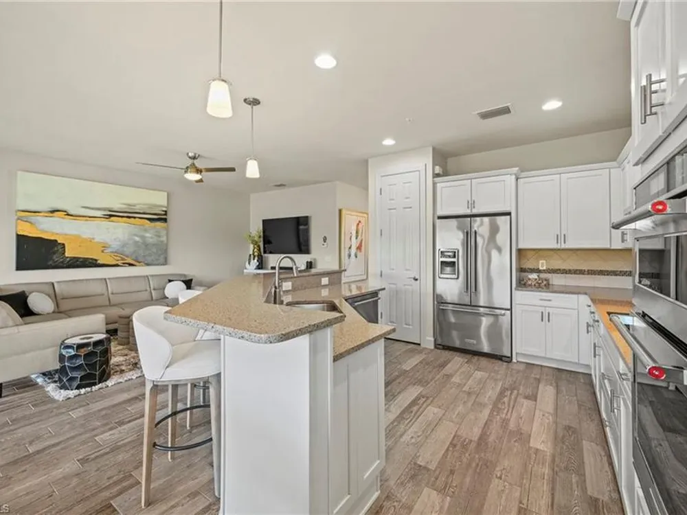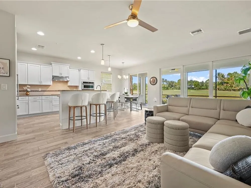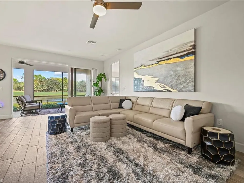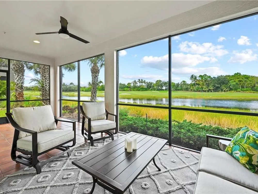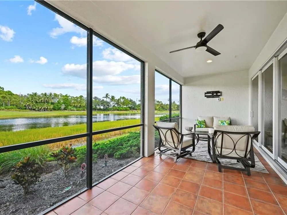 CHECK OUT THAT VIEW! Simply stunning by day with gorgeous sunsets in the evening. Move right in and start enjoying the best of SWFL living! This first-floor condo offers 2 bedrooms plus a den, 2 baths and a spacious covered lanai to enjoy the wide open and phenomenal lake and golf course view! Complete with a wall mounted TV to enhance your relaxation or entertainment. Sold FULLY FURNISHED TURNKEY, the interior boasts a calm, elegant décor, granite countertops throughout, a bright white kitchen with an open island. Beautiful plank tile flooring in the main living areas and new carpet in the bedrooms. Peace of mind comes with impact windows and sliders throughout. Located in an amenity-rich community with a full social calendar, you’ll enjoy endless opportunities to connect and unwind. Golf memberships are available but not required, giving you flexibility. Best of all, you’re just minutes from RSW Airport—off the plane and at your condo in 20 minutes—yet outside the traffic pattern so it stays peaceful and quiet. The Plantation is perfectly located in the center of SWFL close to I-75, shopping, restaurants, Jetblue Park, Hammond Stadium and so much more.