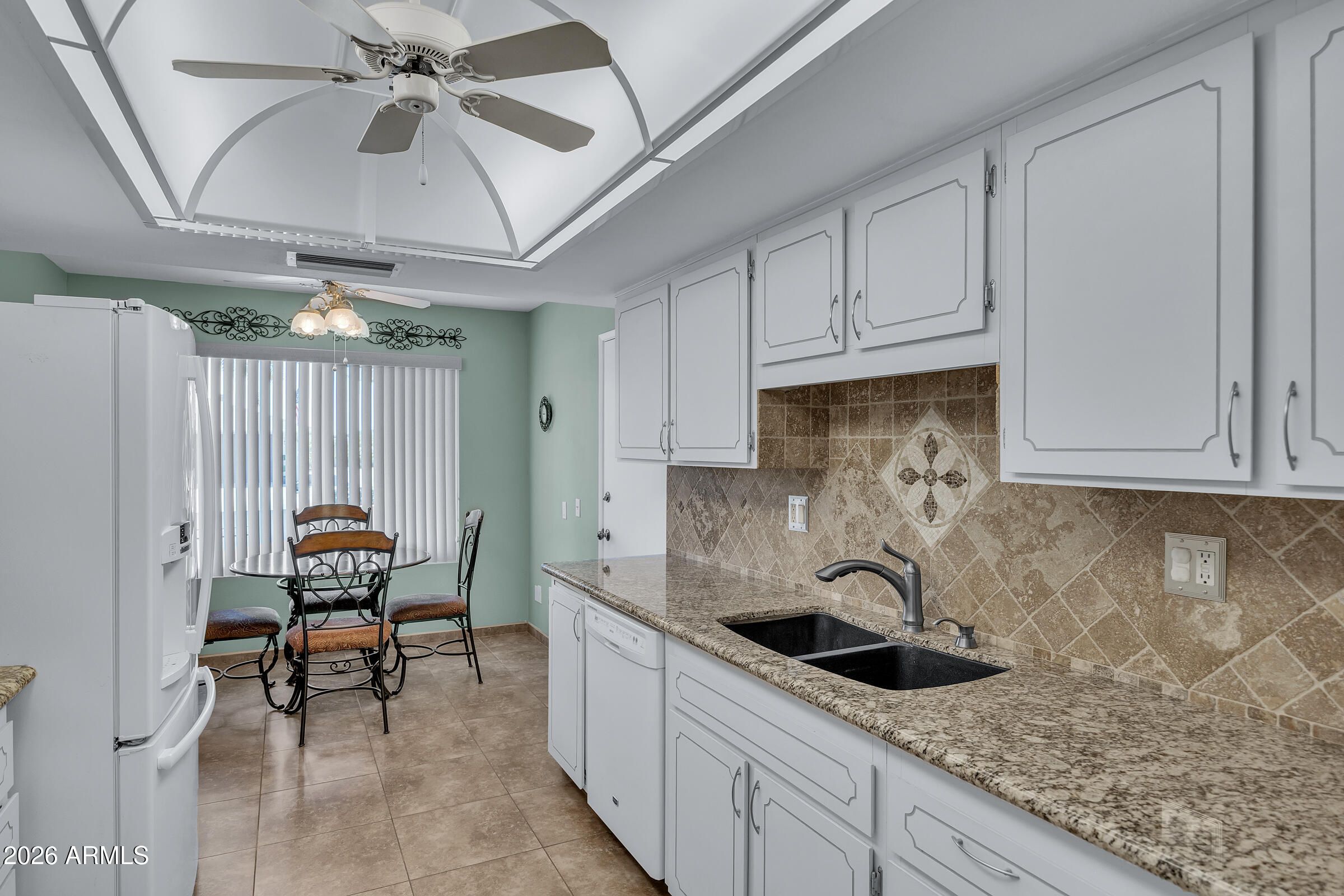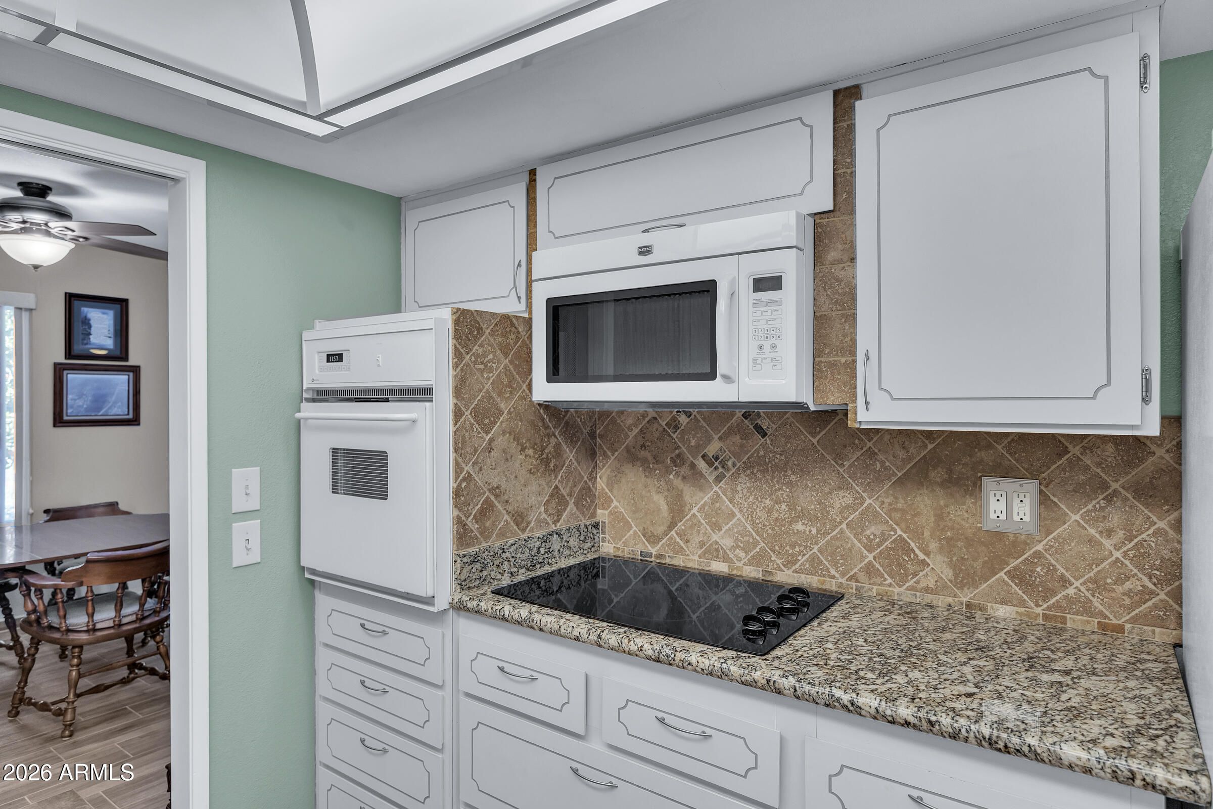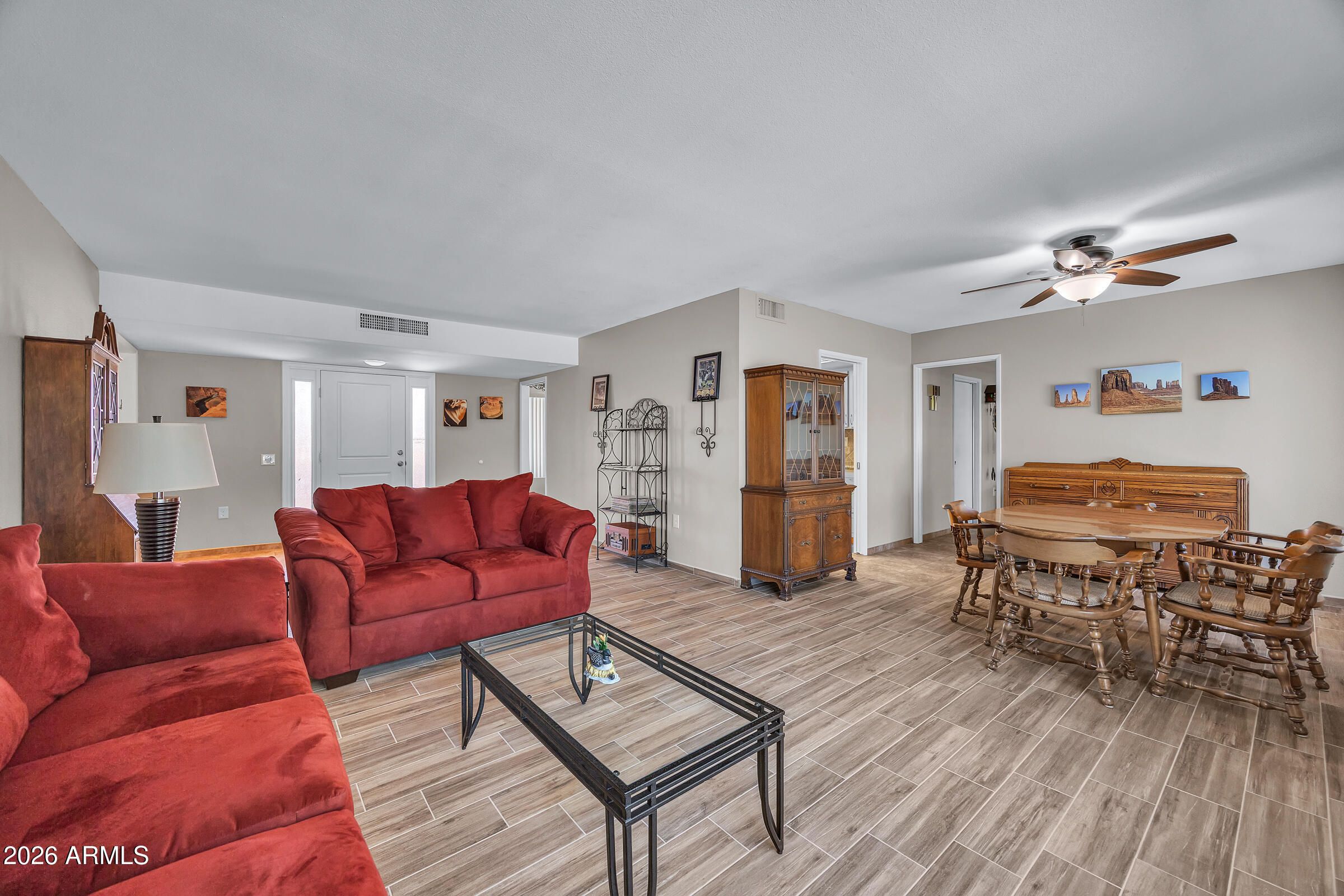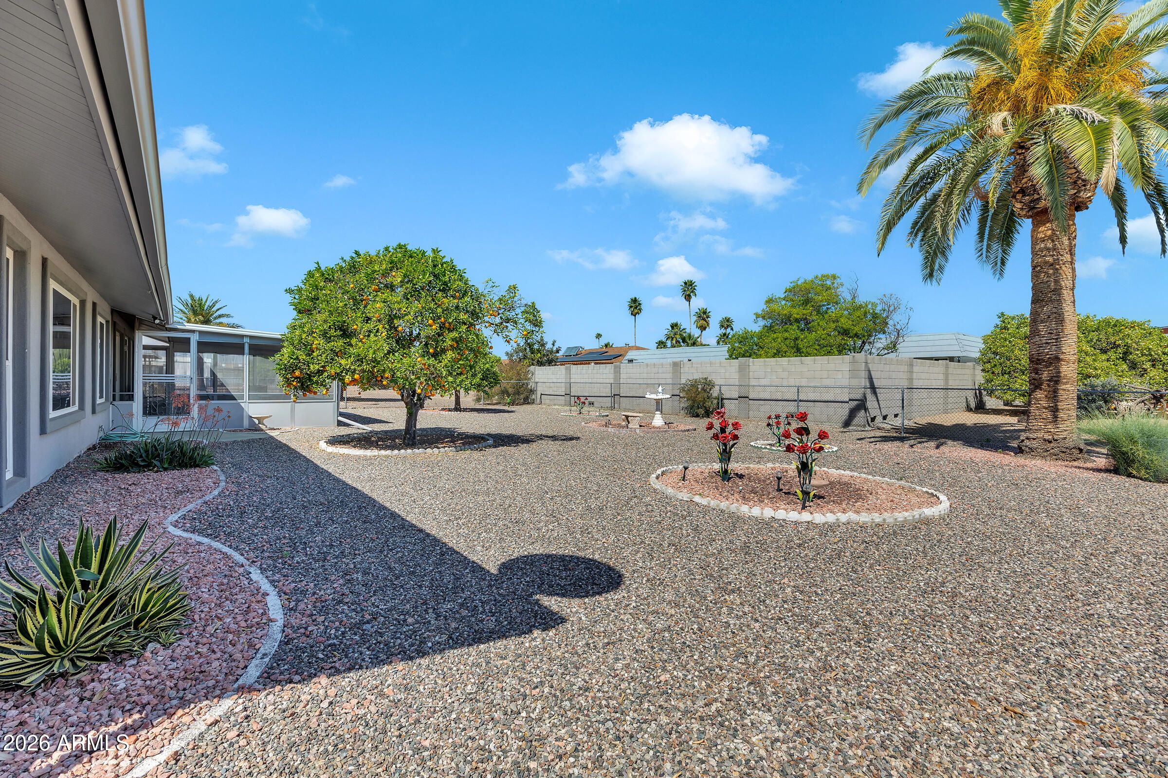 Ready to move in home! Many upgrades including Baths, Flooring, Windows, Kitchen, Pavers on driveway, Stucco and so much more! You will walk in and say ''I'm home!'' Check out the big back yard with mature citrus trees! Nice Workshop! Sit and relax in the enclosed patio! Very warm and inviting home great for parties and entertaining your family and friends. Being sold furnished! Just a couple blocks away from the community center and golf course not much further. Easy access to Bell Rd. and the 101. Convenient location to get to shopping and so much more! Come and see this wonderful home!