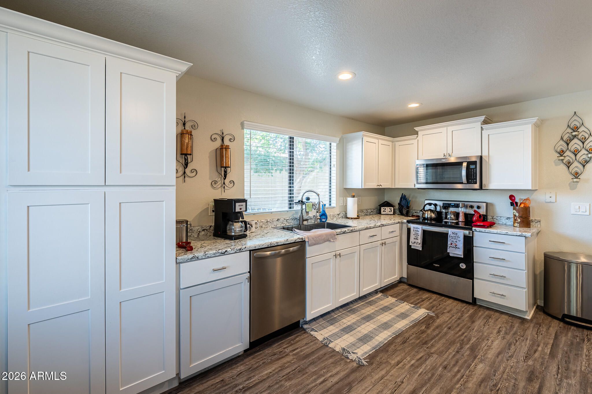 - Dryer, Washer, Water Softener Owned, Reverse Osmosis, Refrigerator, Built-in Microwave, Dishwasher, Disposal, Electric Range