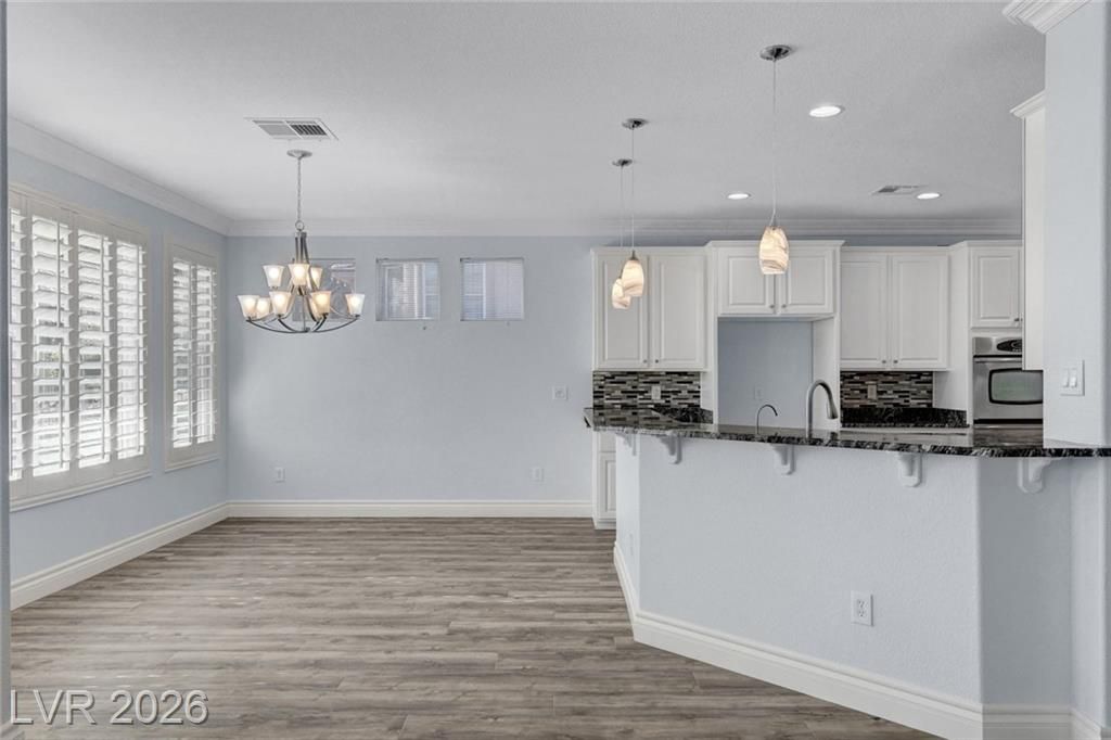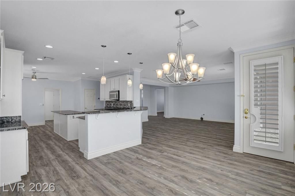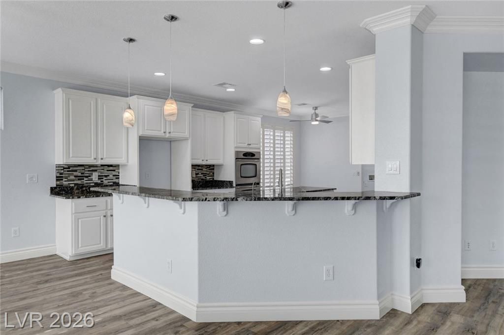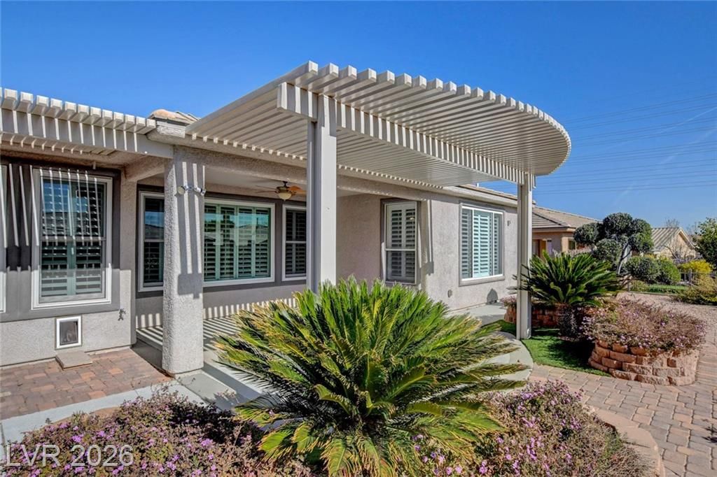 REMODELED & UPGRADED W/ MODERN FINISHES, 'SIENA' IN SUMMERLIN '6140' MODEL BOASTING CURB APPEAL, FRONT & BACK BOULDERS, PLANTERS, FAUX SOD & PEBBLETEX DRIVEWAY, CULTURED STONE, CUSTOM GATED COURTYARD, FULLY FENCED REAR W/ MOUNTAIN VIEW, COVERED PATIO, LG DECK & TRELLIS, INTERIOR W/ LUXURY VINYL T/O, WIDE BASEBOARD, CROWN MOLDING, APPROX 2060/SF, 2 BED, 2 BATH, DEN, OPEN GREAT RM, LG GOURMET KITCHEN W/ QUARTZ COUNTERTOPS, TILE BACKSPLASH, STAINLESS STEEL DOUBLE OVEN, GAS COOKTOP, MICROWAVE, DISHWASHER, BAR COUNTER, NOOK AREA & WALK-IN PANTRY, LAUNDRY & HOBBY RMS, CEILING FANS W/ LIGHTS, SHUTTERS, SILHOUETTES, 2 CAR GARAGE W/ WATER FILTRATION SYSTEM, WATER SOFTENER, TANKLESS WATER HEATER, ELECTRIC CAR CHARGER & STORAGE CABINETS, PLUS SO MUCH MORE!