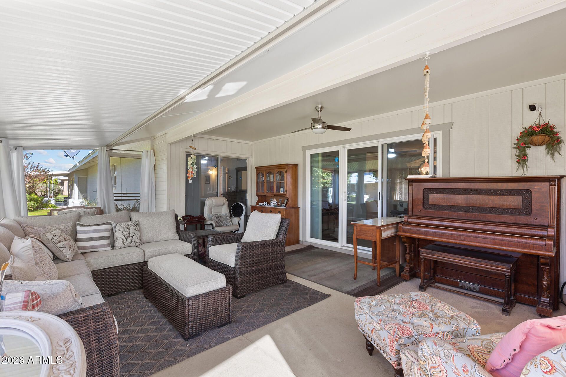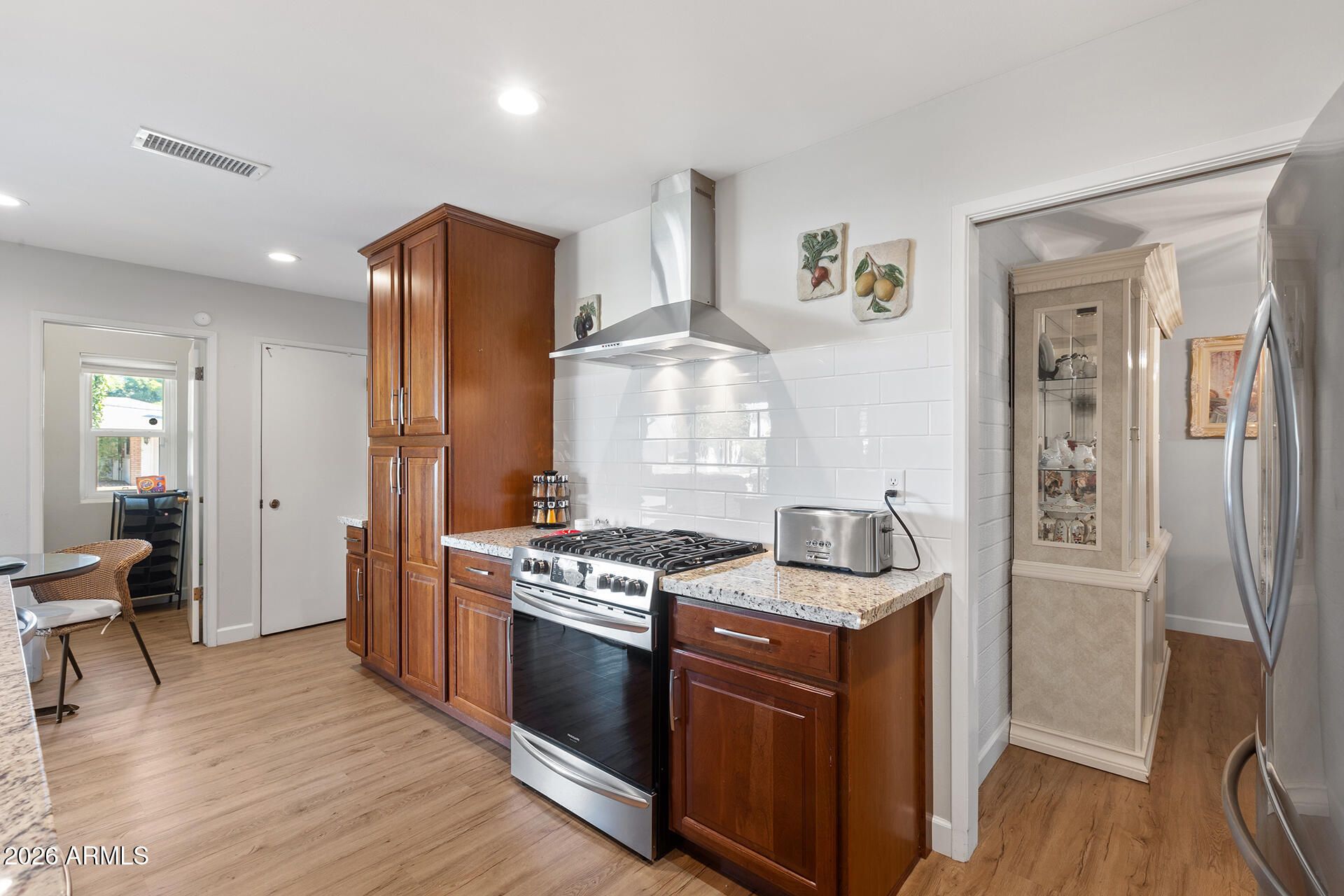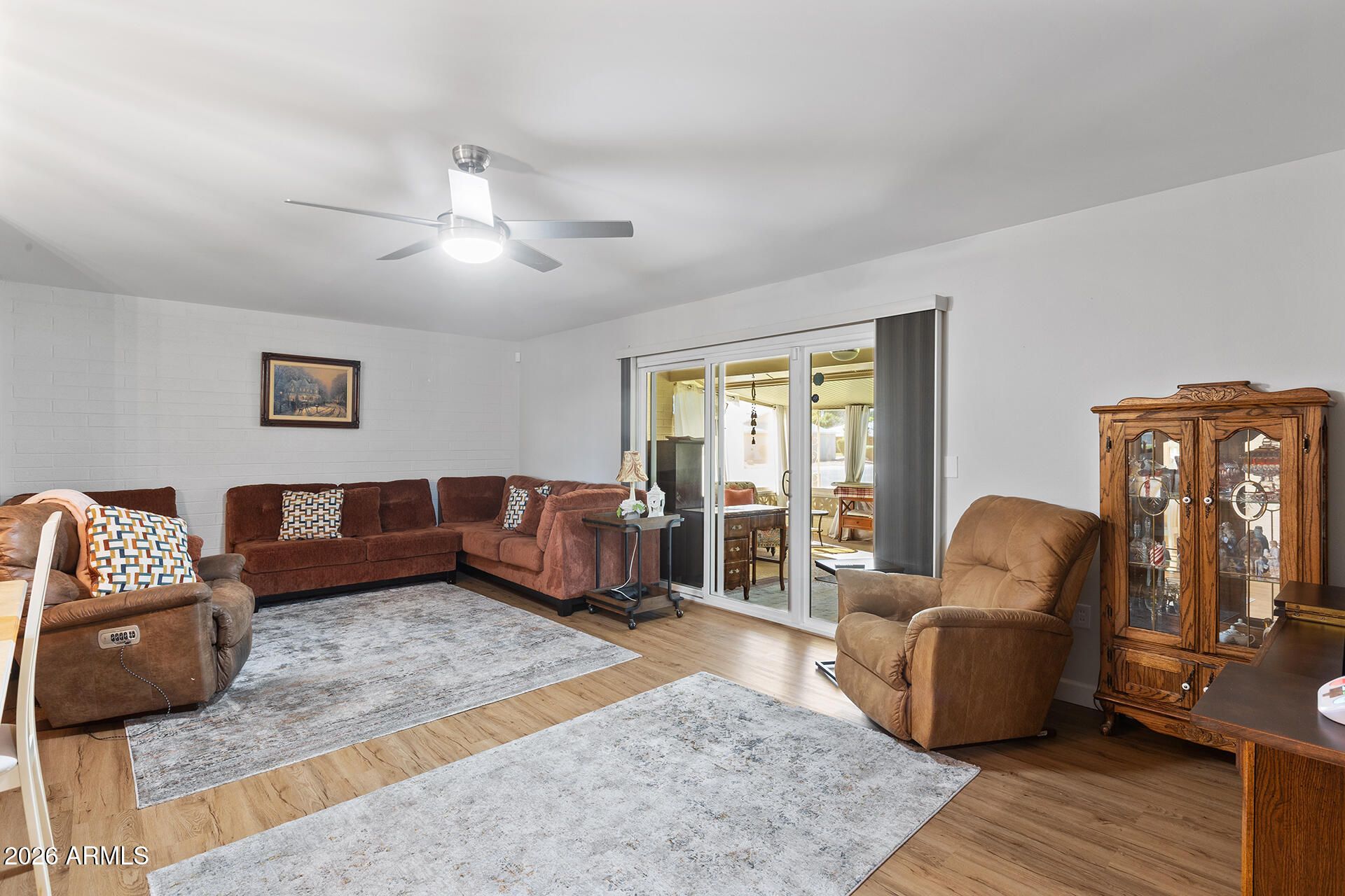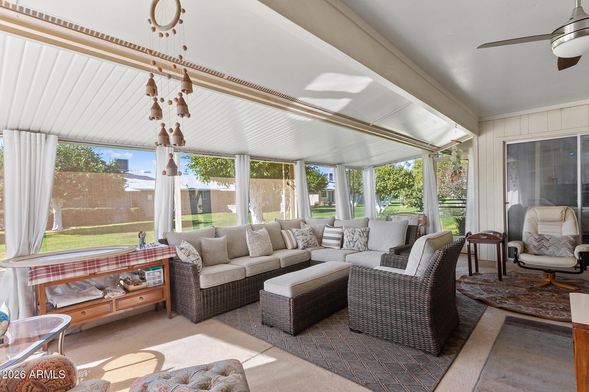 Welcome to this fully remodeled 2-bedroom, 1-bath home offering 1,471 sq ft of stylish, comfortable living on a desirable corner lot. Thoughtfully updated throughout, this home features luxurious vinyl flooring, energy-efficient dual-pane windows, a newer AC (only 3 years old), and a brand-new washer and dryer for added peace of mind. The renovated kitchen is both functional and beautiful, showcasing granite countertops, spacious cabinetry, a gas range, a modern, stylish vent hood, and stainless steel appliances—perfect for everyday cooking and entertaining. The updated bathroom features a beautiful vanity and quality finishes that elevate the space. One of the home's standout features is the huge Arizona room, ideal for enjoying Arizona's glorious weather, relaxing year-round, or creating a versatile bonus living space. Located in Sun City, residents enjoy access to exceptional recreation centers, amenities, clubs, and activities, making this home an excellent opportunity to embrace an active, vibrant lifestyle.