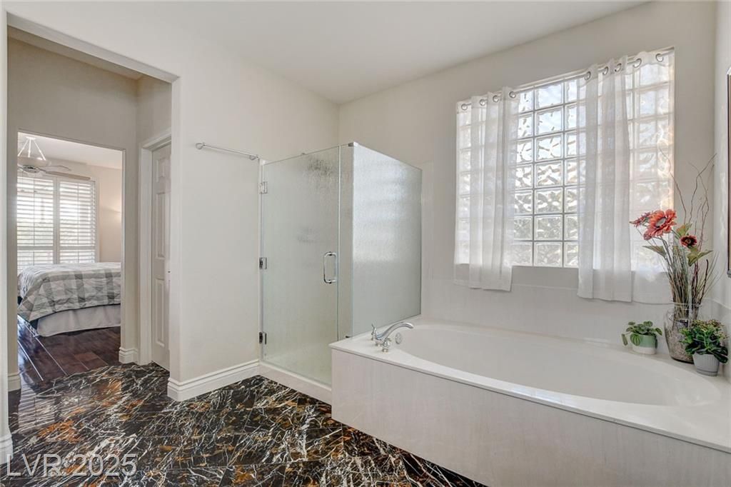 WONDERFUL 'SIENA' IN SUMMERLIN, AGE-QUALIFIED COMMUNITY W/ GREAT AMENITIES, THIS '6150' MODEL BOASTS AWESOME GOLF COURSE & MOUNTAIN VIEWS, CURB APPEAL, FULLY FENCED REAR, CUSTOM GATED COURTYARD ENTRY W/ CULTURED STONE, PEBBLE DRIVE/WALK/COURTYARD/PATIO/DECK, THIS 2216/SF BOASTING DUAL PRIMARY BEDROOMS, BOTH WITH FULL BATHS, POWDER ROOM, ENTERTAINING GREAT RM, DEN, GOURMET KITCHEN W/ GRANITE COUNTERTOPS, NEWER 'LG' STAINLESS STEEL APPLIANCES INCLUDING DOUBLE OVEN/GAS COOKTOP/MICROWAVE/DISHWASHER/REFRIGERATOR AND NEW GRANITE SINK & FAUCET, LAUNDRY RM W/ NEW WASHER & DRYER, MARBLE & WOOD FLOORING, SHUTTERS, NEW INTERIOR PAINT, FANS W/ LIGHTS, FANCY LIGHT BARS, ALARM, COVERED PATIO, TRELLIS, 2 CAR GARAGE W/ GOLF CART STORAGE AREA, PLUS SO MUCH MORE!