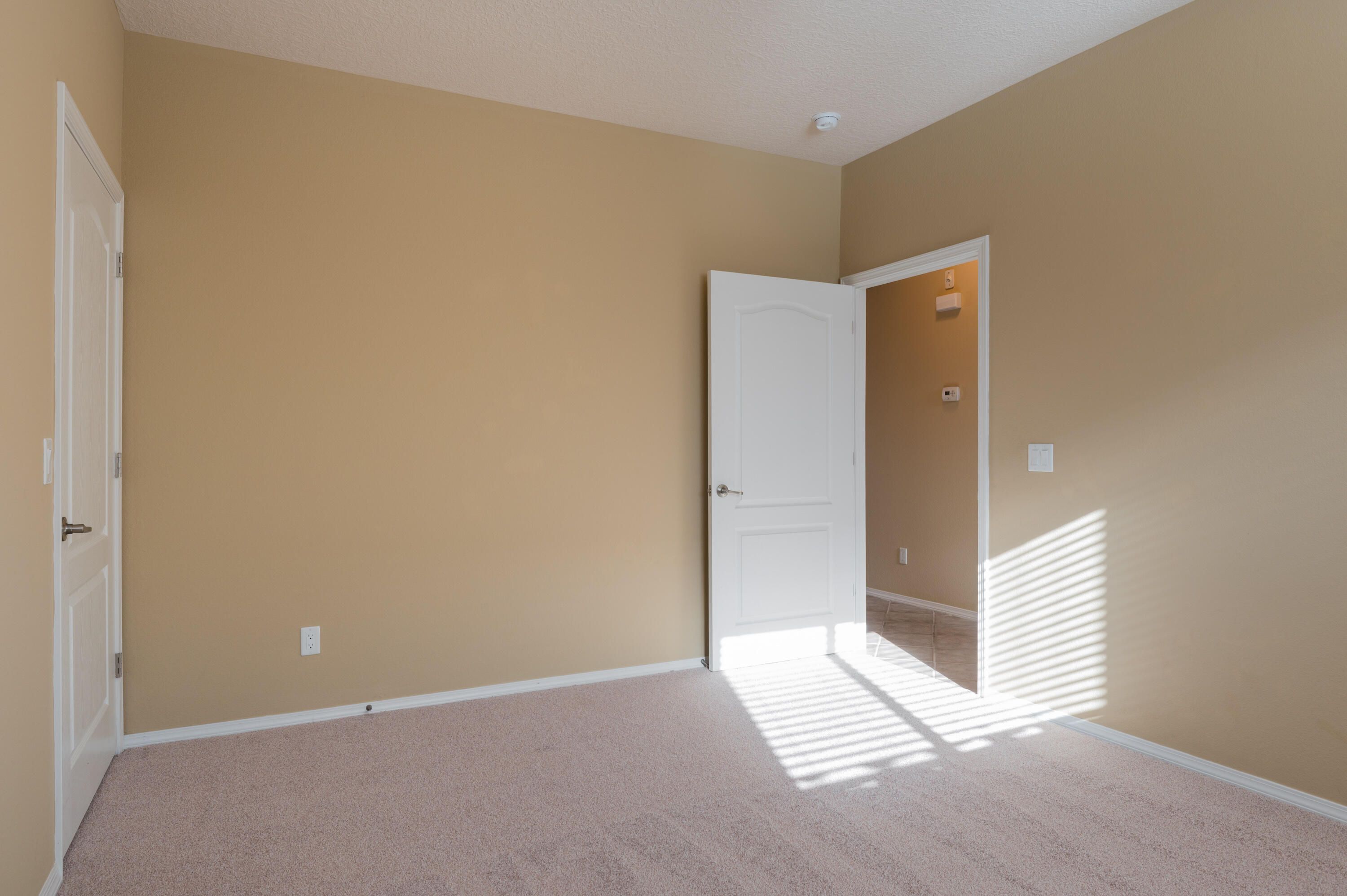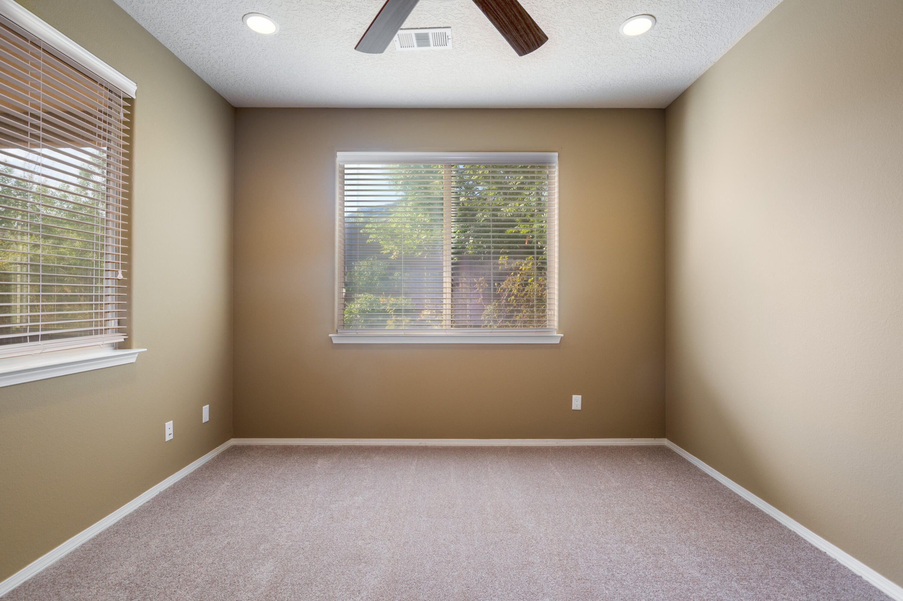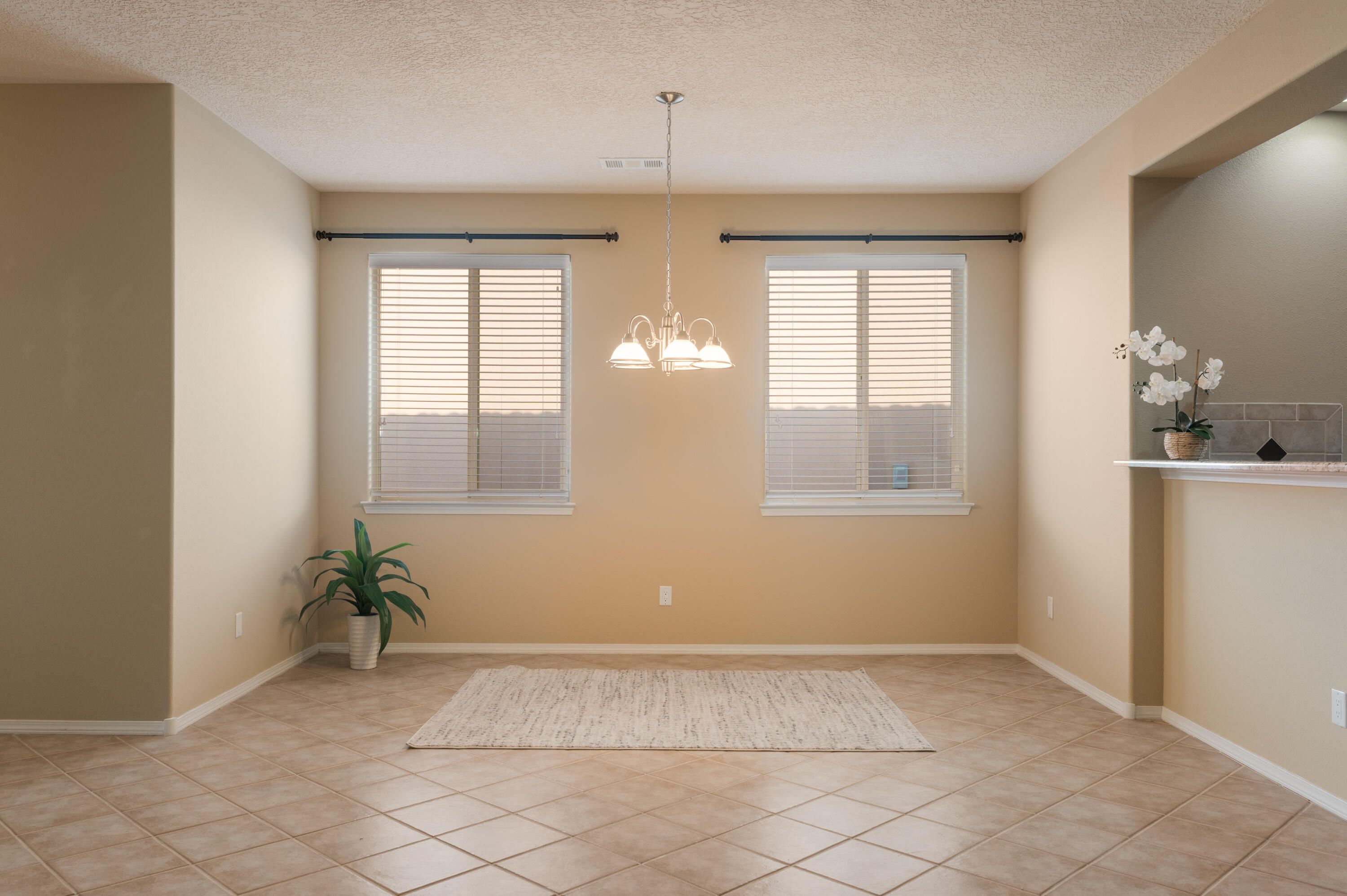 Welcome home to this stunning & gracious single story residence, located in the desirable and beautiful Del Webb gated community at Alegria! Exquisite setting, with access to walking trails, the Bosque & Sandia Mountains as the back drop! Enjoy the numerous amenities: 2 pools, club house, fitness room & more! Discover an open & spacious floor plan with light filled rooms! Deluxe kitchen offers abundance of cabinetry, center island, granite counter tops, pantry and breakfast nook! NEW carpet Aug 2025, freshly paint in some rooms & new front landscaping! French doors open to the generously sized study with handsome built-in cabinets! Professionally deigned private backyard with moss rock, mature plantings, covered & open patios! Solar owned!Separated master retreat...MORE!