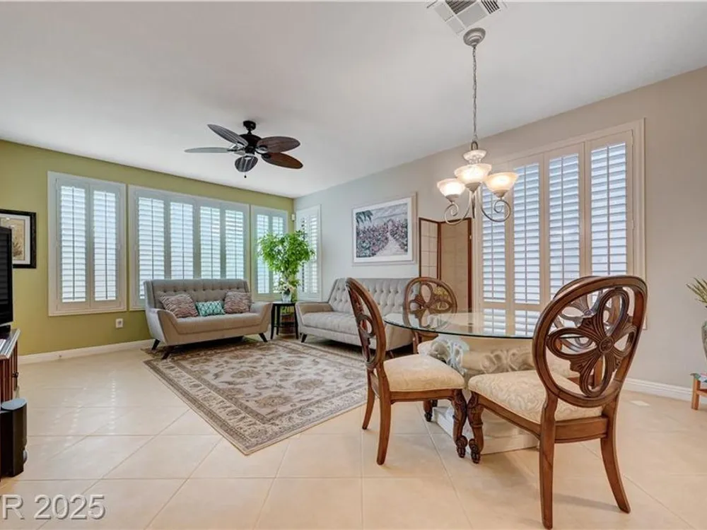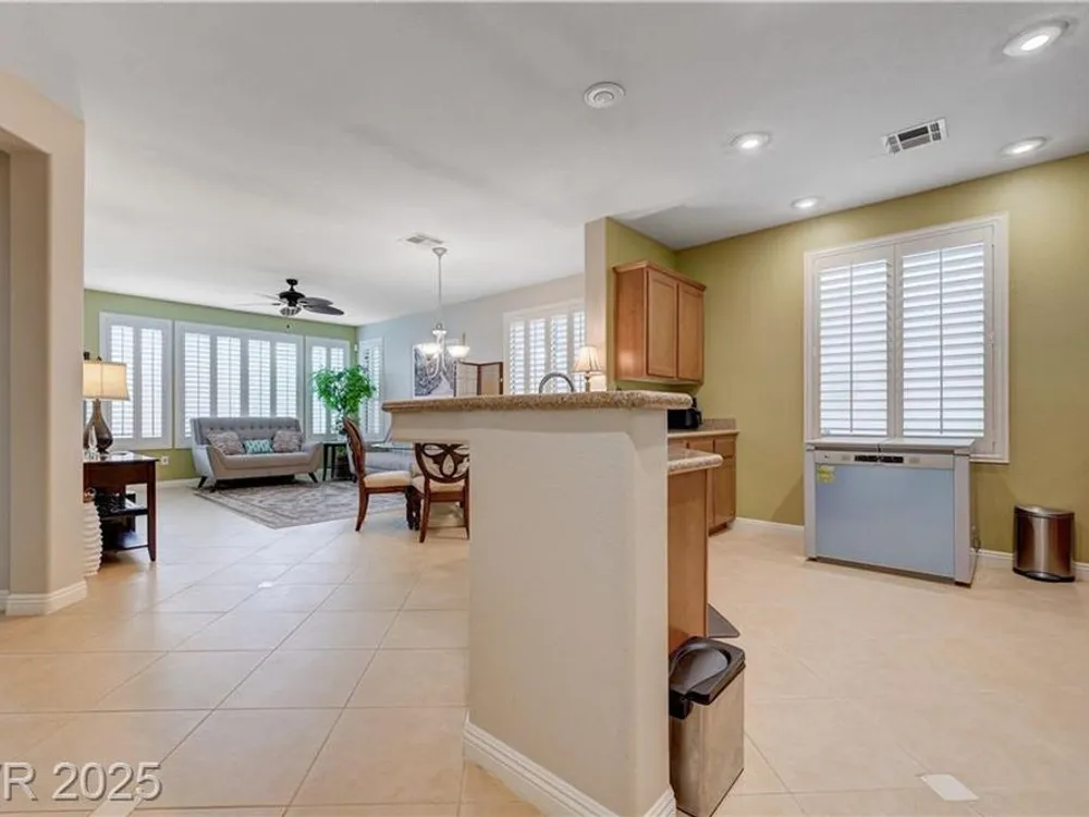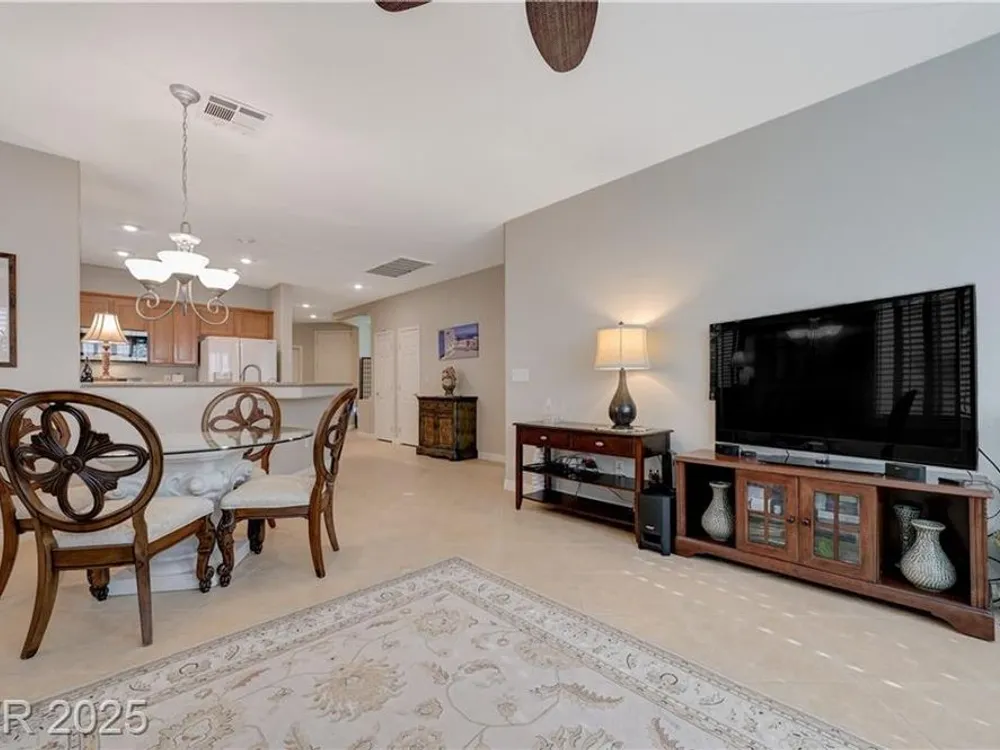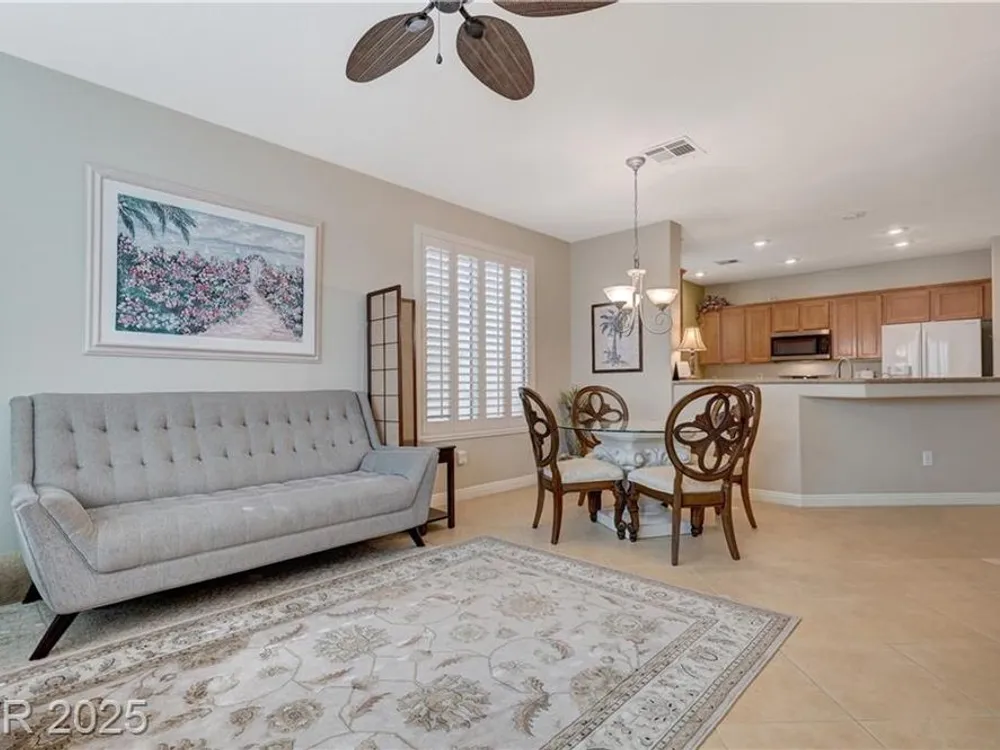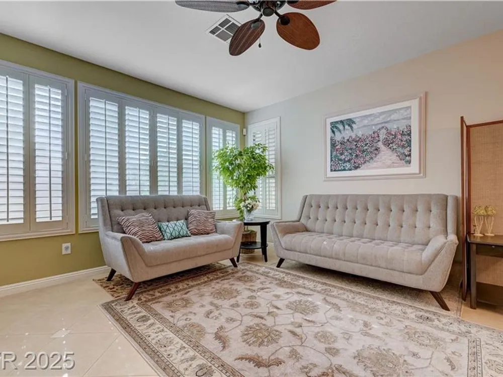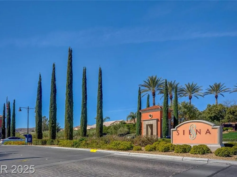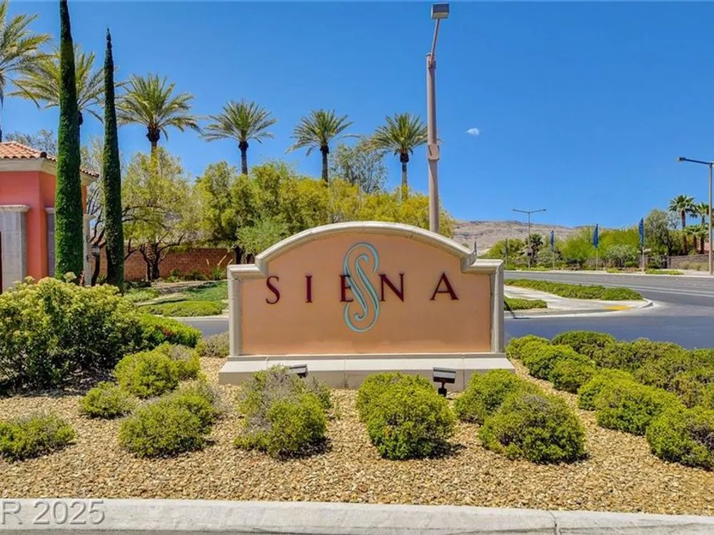 Experience luxury living in this stunning single-story villa in South Summerlin’s prestigious guard-gated community, located on the Siena Golf Course. This beautifully upgraded home offers 2 bedrooms plus a den—perfect for an office or guest room. Enjoy a spacious open floor plan with an eat-in kitchen featuring upgraded cabinets, granite countertops, and a breakfast bar. Tile and wood-look flooring, ceiling fans, and plantation shutters add comfort and style throughout. The oversized backyard with a covered patio is ideal for entertaining and offers breathtaking views of the golf course and mountains. Enjoy world-class amenities including a clubhouse, indoor/outdoor pools, spa, fitness center, tennis, and pickleball courts. Conveniently located near shopping, dining, entertainment, and freeway access. Don’t miss this opportunity to live in one of Summerlin’s most sought-after communities!