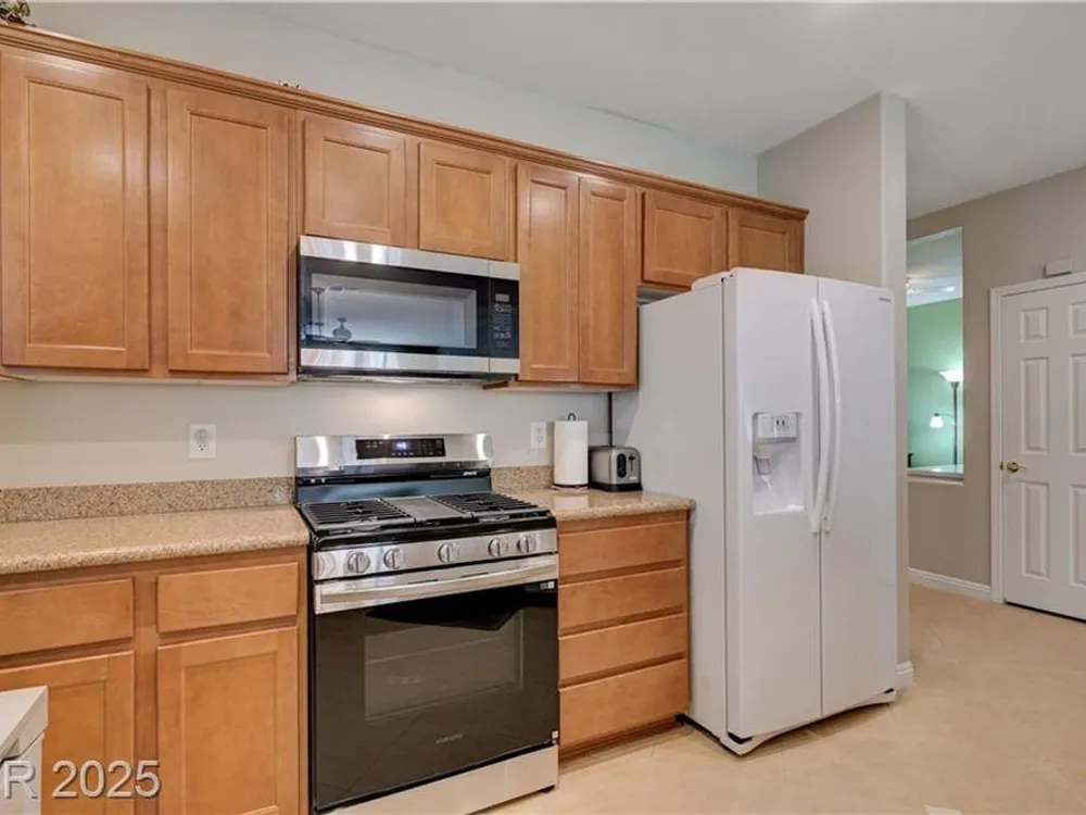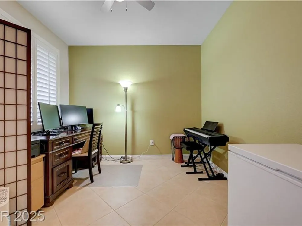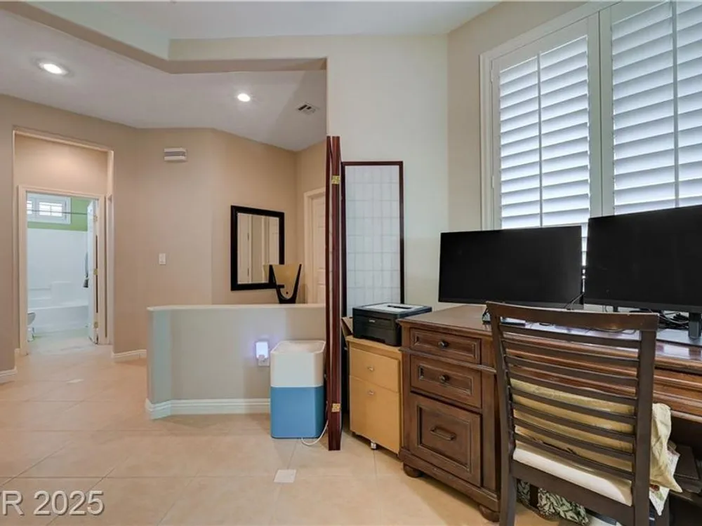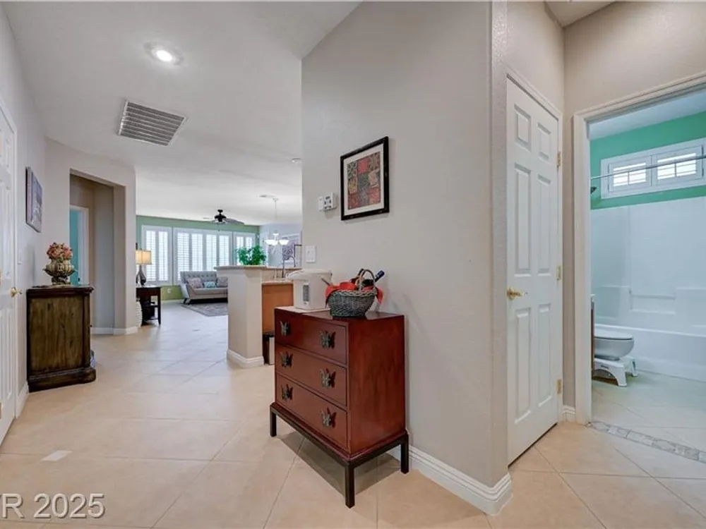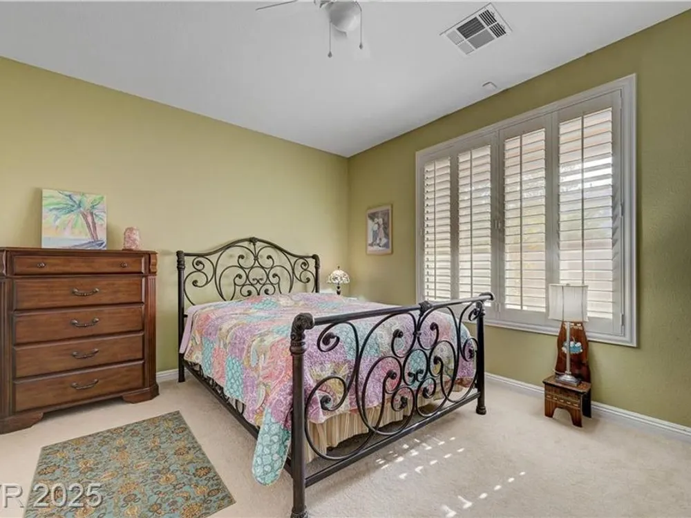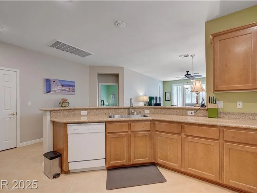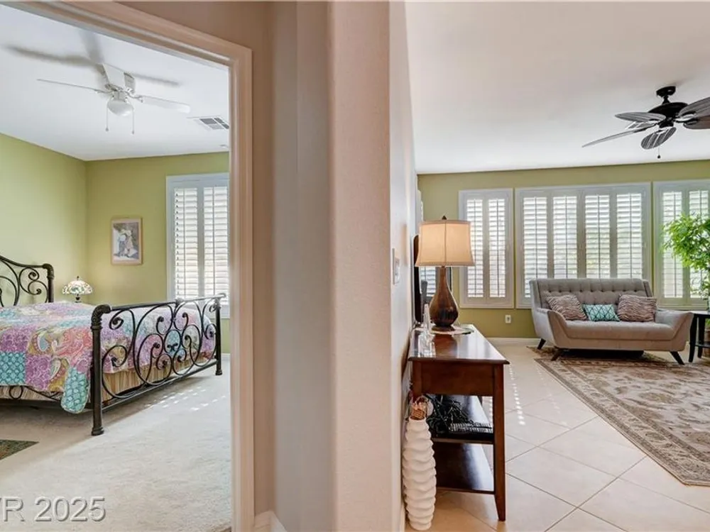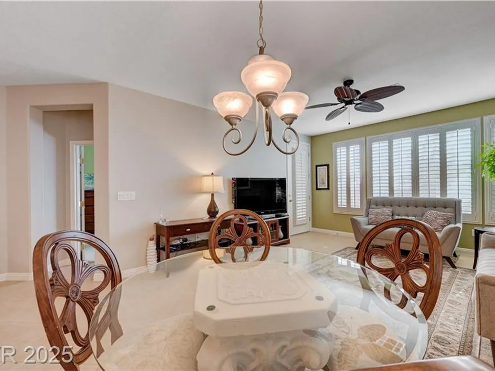 Experience luxury living in this stunning single-story villa in South Summerlin’s prestigious guard-gated community, located on the Siena Golf Course. This beautifully upgraded home offers 2 bedrooms plus a den—perfect for an office or guest room. Enjoy a spacious open floor plan with an eat-in kitchen featuring upgraded cabinets, granite countertops, and a breakfast bar. Tile and wood-look flooring, ceiling fans, and plantation shutters add comfort and style throughout. The oversized backyard with a covered patio is ideal for entertaining and offers breathtaking views of the golf course and mountains. Enjoy world-class amenities including a clubhouse, indoor/outdoor pools, spa, fitness center, tennis, and pickleball courts. Conveniently located near shopping, dining, entertainment, and freeway access. Don’t miss this opportunity to live in one of Summerlin’s most sought-after communities!