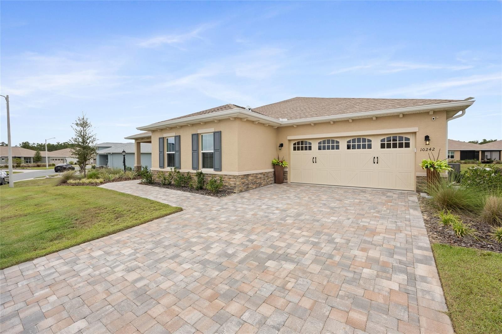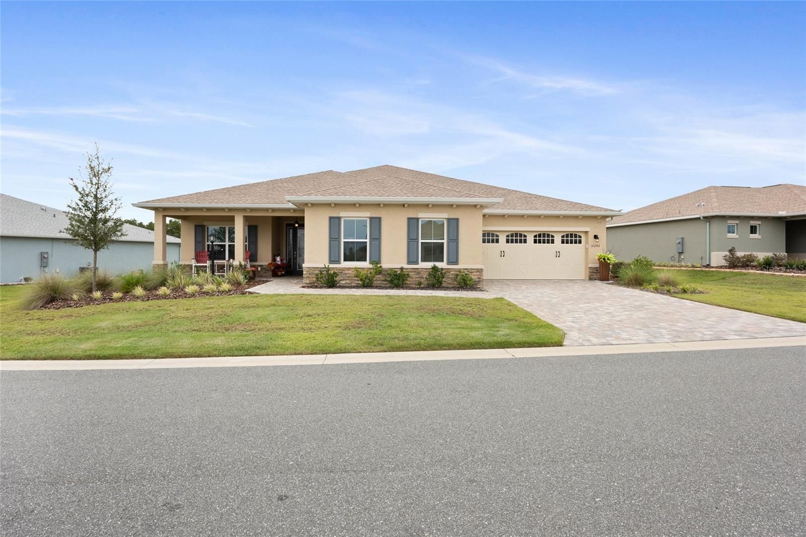 Built in 2023, this extraordinary Magnolia WITH Workshop model defines modern luxury living in one of Ocala’s most sought-after 55+ communities. Set on a PREMIUM LOT, this home showcases over $125,000 in designer upgrades, positioning it far above new construction and crafted for those who value quality, comfort, and style. From first glance, the enhanced exterior architecture and meticulous CURB APPEAL signal that this is no ordinary home. Step inside to a space that balances elegance and functionality, with soaring ceilings, luxury plank flooring, custom millwork, and an open-concept layout bathed in natural light—perfect for both relaxation and entertaining. At the heart of the home, the GOURMET KITCHEN impresses with quartz countertops, extended custom cabinetry, designer tile backsplash, double ovens, high-end stainless appliances, farm-style sink, and under-cabinet lighting—a dream for any culinary enthusiast. The owner’s suite is a true SANCTUARY featuring spa-quality finishes, upgraded quartz surfaces, elegant tile work, and expansive dual walk-in closets. Guest accommodations mirror the same level of refinement, ensuring every visitor experiences comfort and LUXURY. Unique to this model, the property includes a dedicated office, retractable power storage system, and a WHOLE-HOUSE GENERATOR, offering both convenience and peace of mind. The garage with a FULLY FINISHED WORKSHOP—complete with heat, air, and a separate utility closet—adds unmatched versatility for hobbies, crafts, or additional storage. Additional highlights include: Energy-efficient systems throughout for long-term savings and comfort. Premium lighting, fixtures, and trim details that enhance every space. Seamless indoor-outdoor flow with opportunities for private seating or entertaining. With its uncompromising craftsmanship, modern amenities, and prestigious location, this Magnolia model is truly BETTER THAN NEW—a rare find designed to impress even the most discerning buyer.