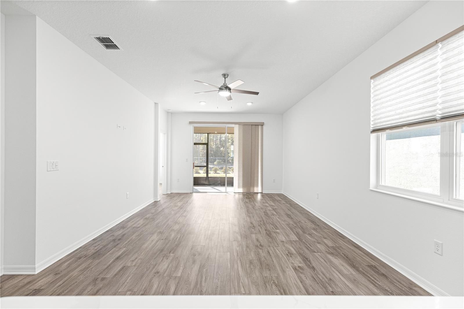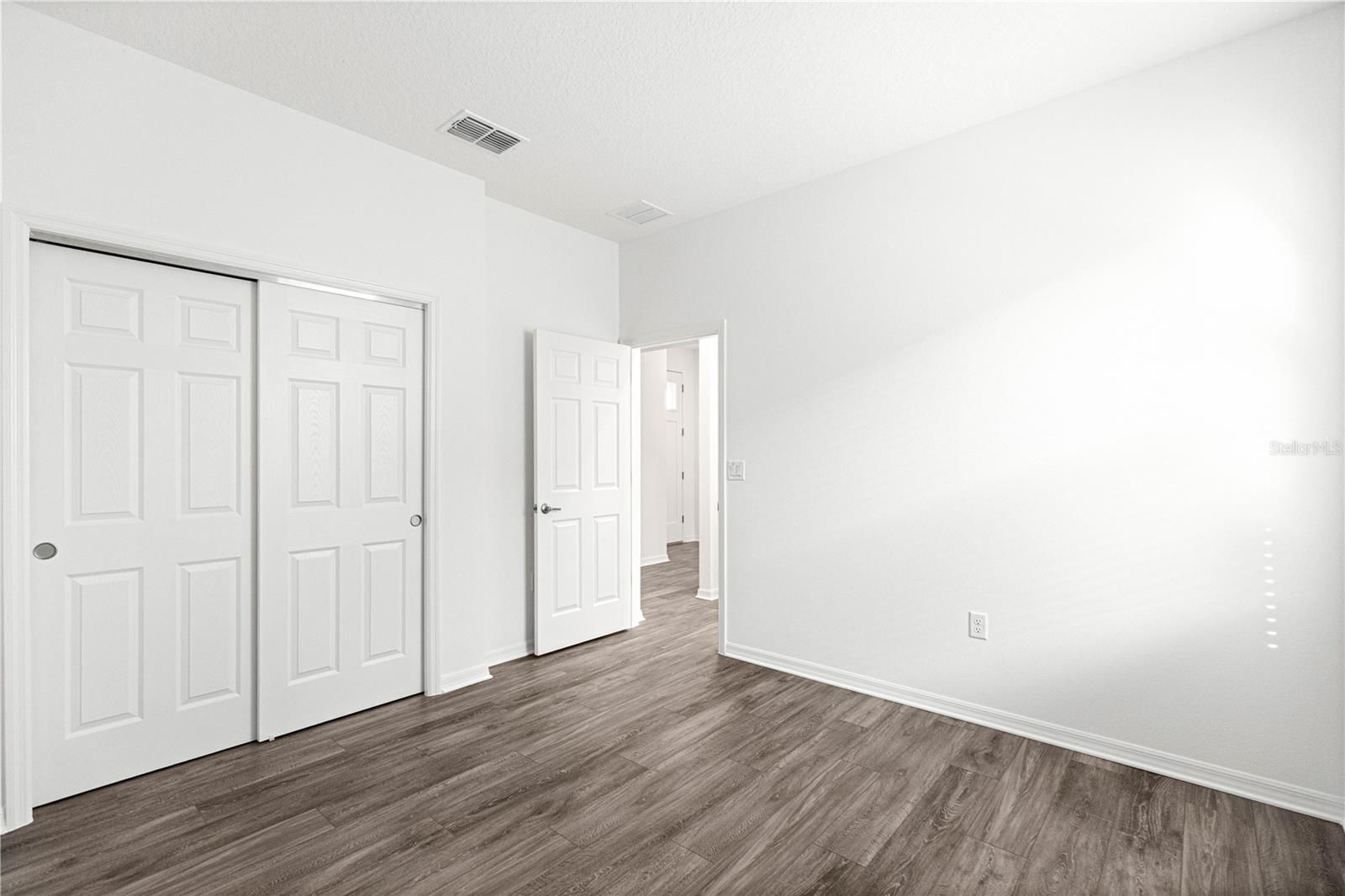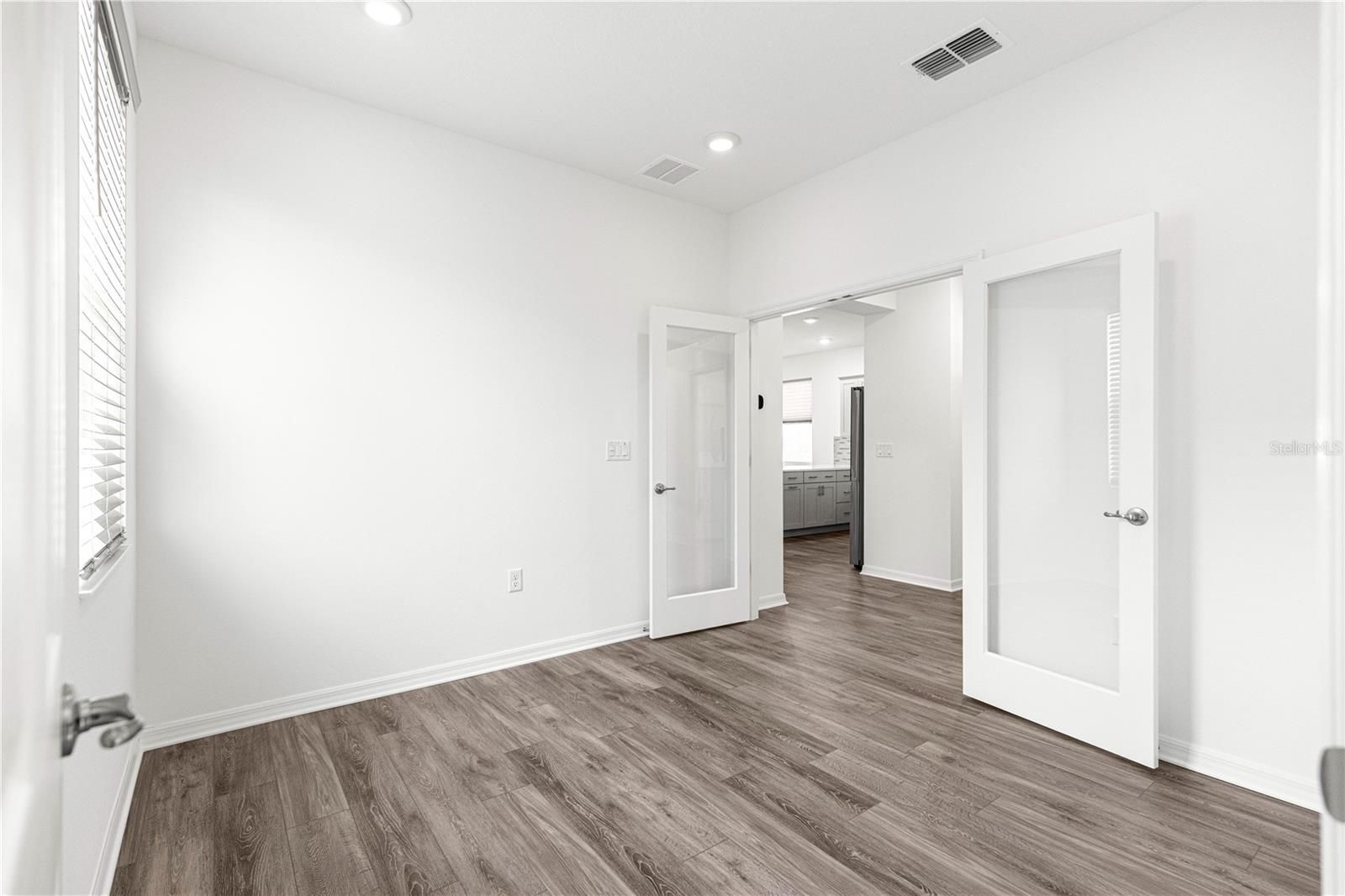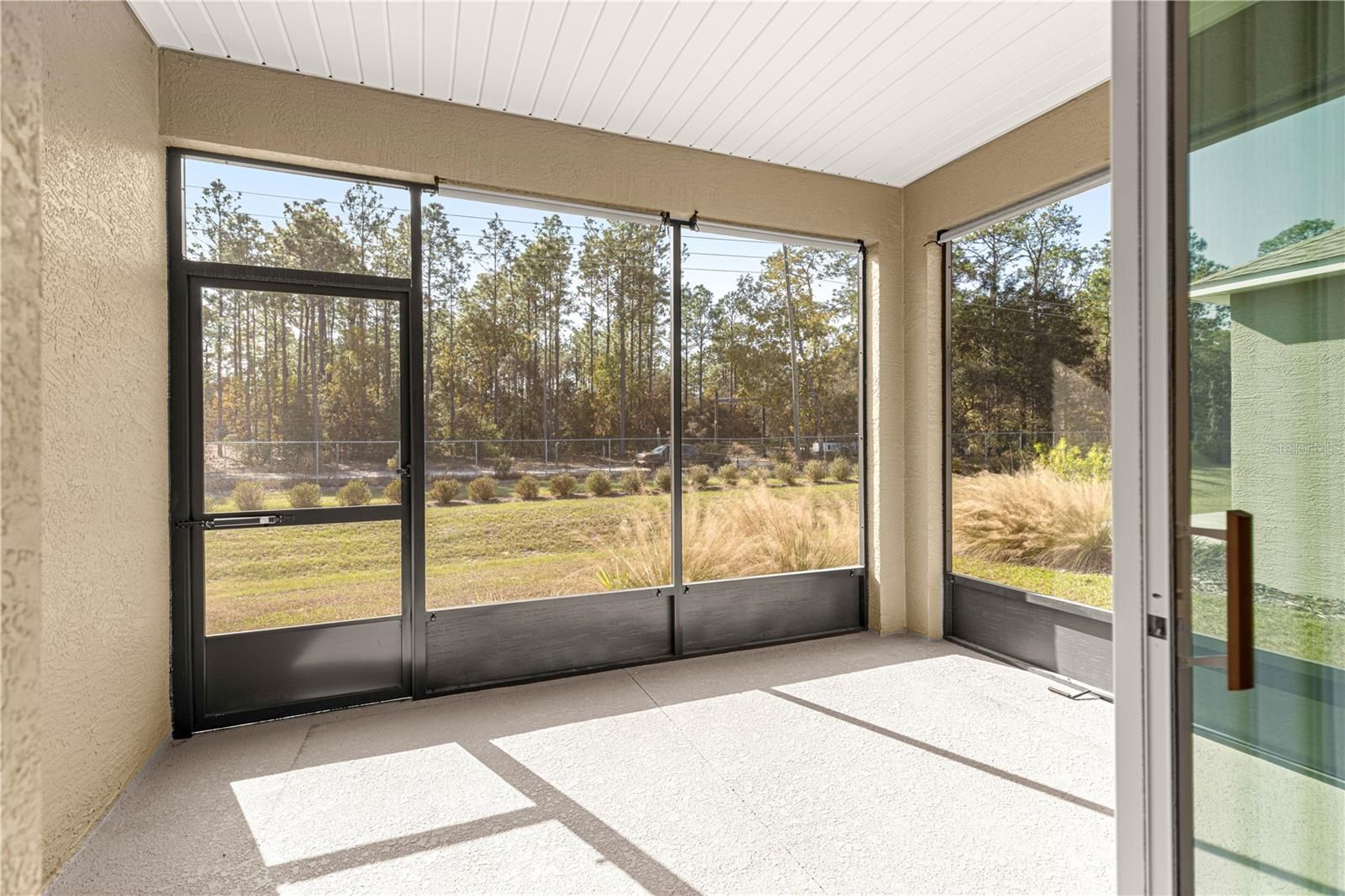 Welcome to this better than new Tamar model with a PRIVATE home site. The paver driveway and walkway lead you into the front porch. The home features luxury vinyl planking throughout for elegance and ease of upkeep. The light and bright kitchen features quartz counters, glass tile backsplash, light, staggered cabinets with crown molding and an upgraded stainless steel appliance package. Upgraded shades in the home add privacy with class. The primary bedroom is large and has a walk-in closet. The office has been converted to a bedroom with the addition of a closet and French doors for maximum flexibility in how you use the space. The washer and dryer are also included with this home. The lanai is screened in with pull down shades and gives you sweeping views and privacy since there are no homes behind you! Schedule your private tour today!