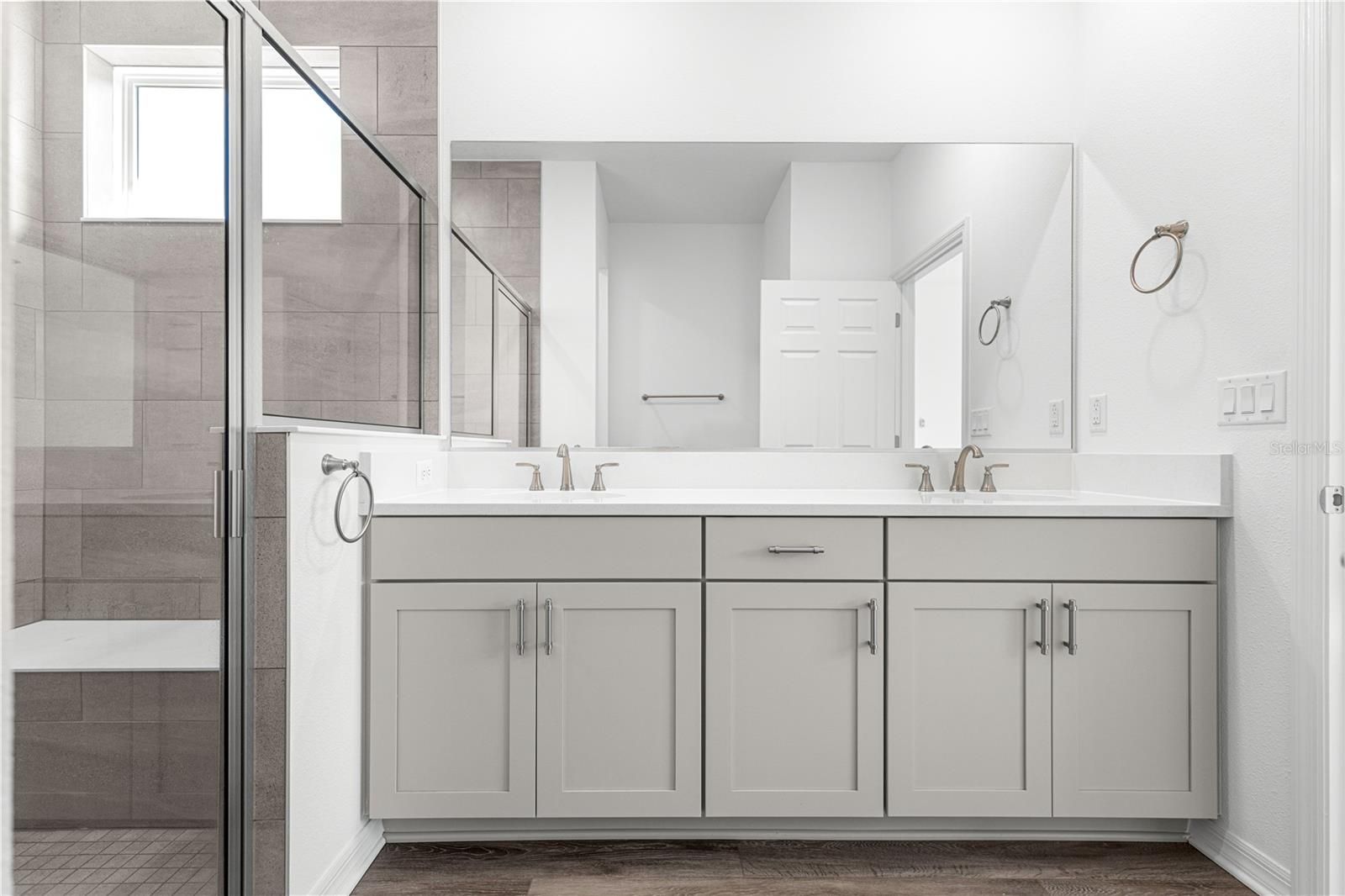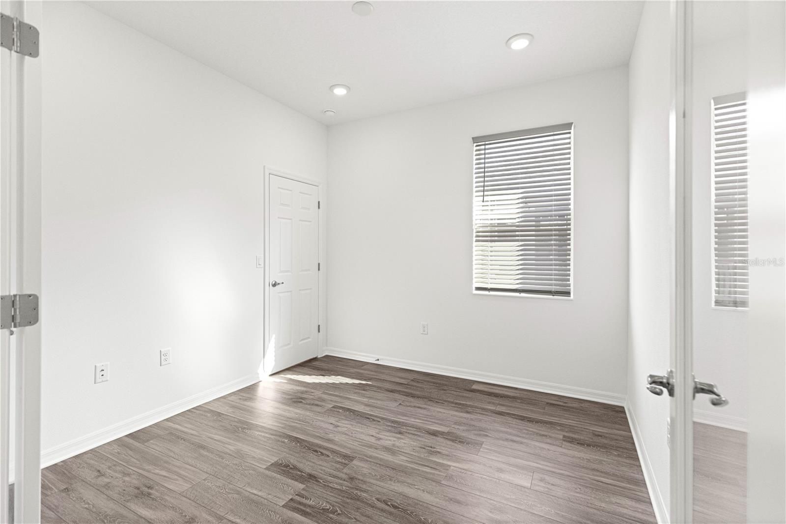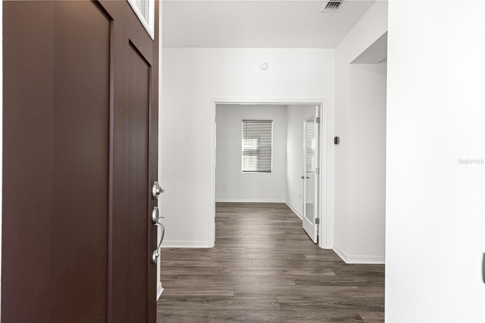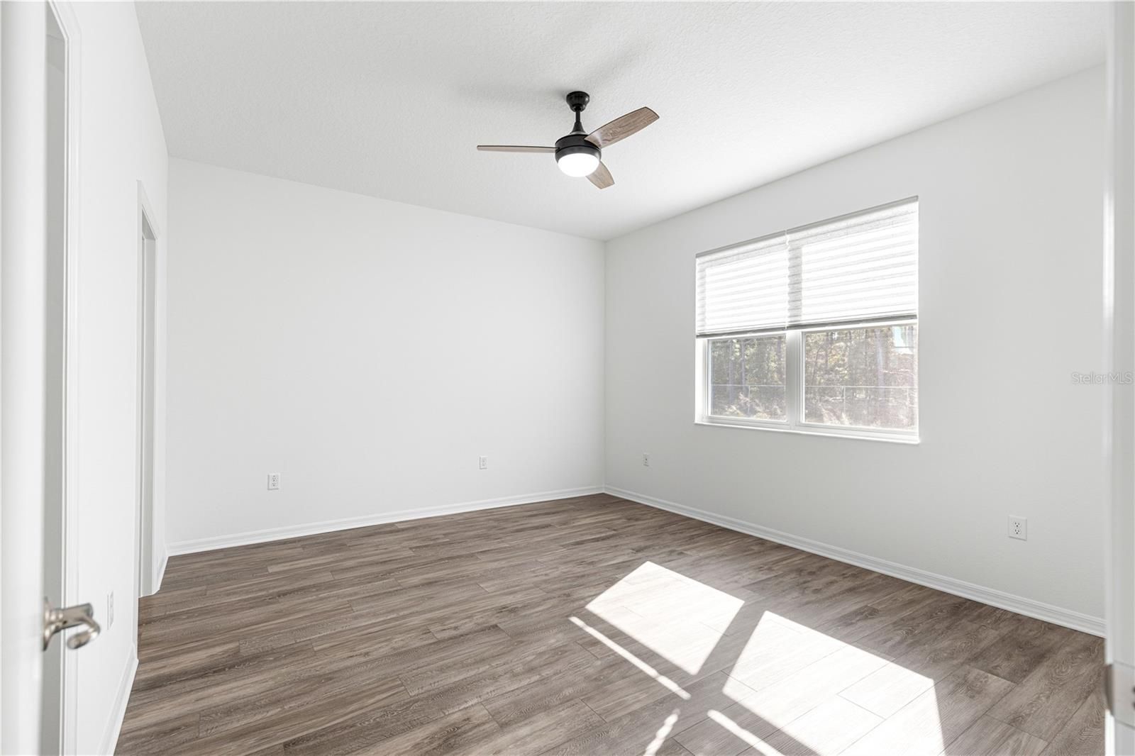 Welcome to this better than new Tamar model with a PRIVATE home site. The paver driveway and walkway lead you into the front porch. The home features luxury vinyl planking throughout for elegance and ease of upkeep. The light and bright kitchen features quartz counters, glass tile backsplash, light, staggered cabinets with crown molding and an upgraded stainless steel appliance package. Upgraded shades in the home add privacy with class. The primary bedroom is large and has a walk-in closet. The office has been converted to a bedroom with the addition of a closet and French doors for maximum flexibility in how you use the space. The washer and dryer are also included with this home. The lanai is screened in with pull down shades and gives you sweeping views and privacy since there are no homes behind you! Schedule your private tour today!