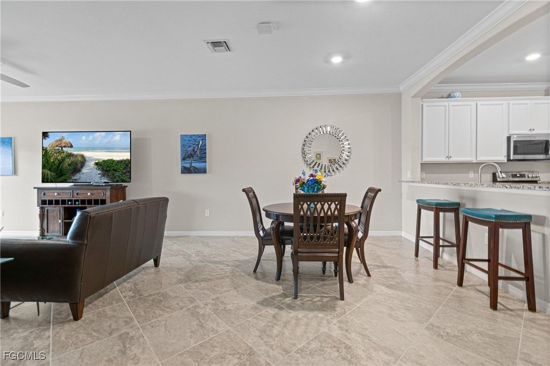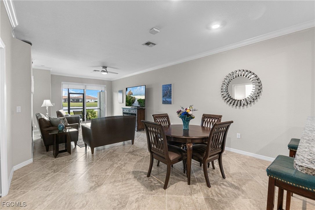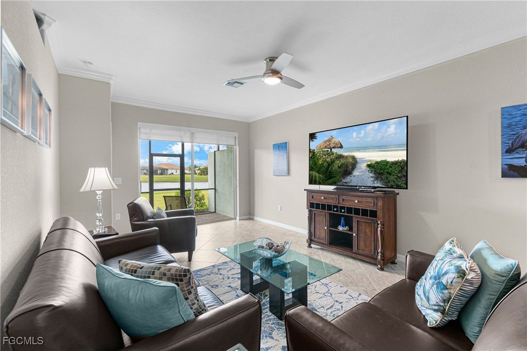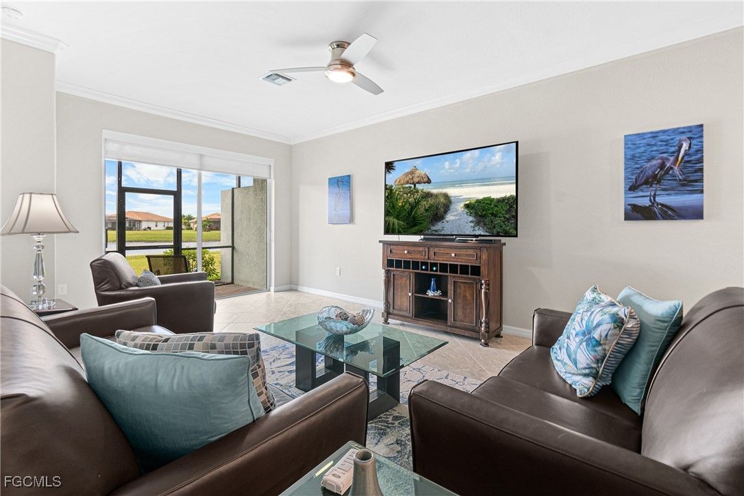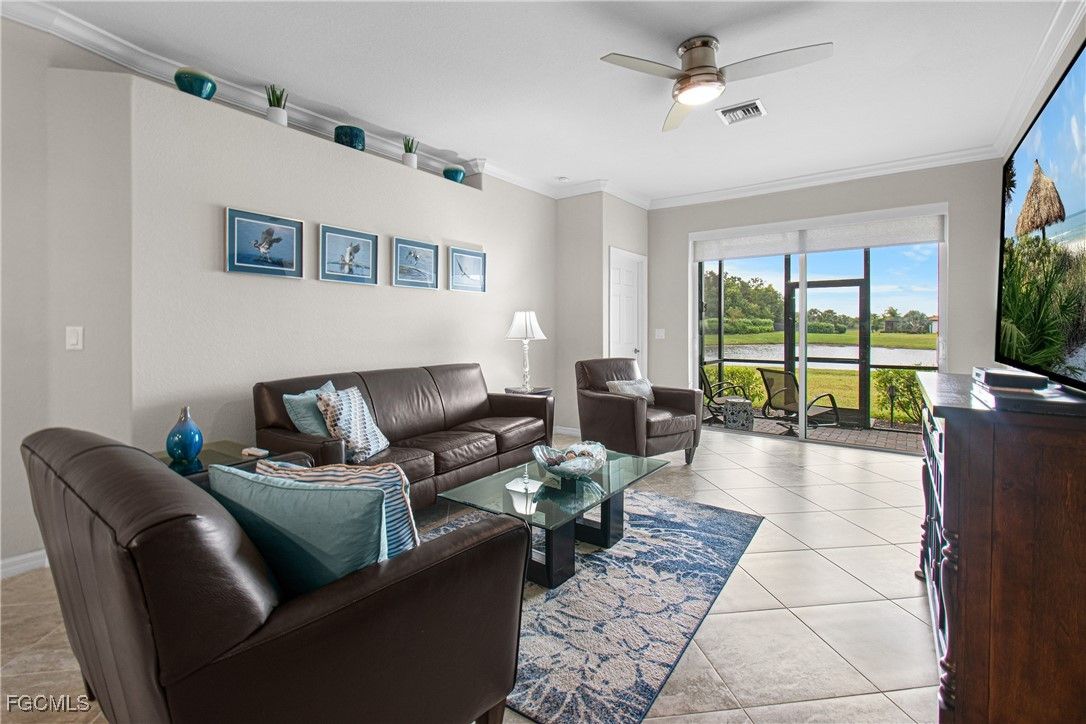TURNKEY 3 Bedroom Villa with an Amazing Lake View & Priced to Sell in this Market! Totally Open Floor Plan with Sparkling 18" Tile Flooring laid on the Diagonal throughout the Home=NO CARPET!!!! The A.C. & Hot Water Heater are 2019 & the A.C. is serviced by Eco-Air Semi-Annually! (Last service was August/2025). The Homeowner has had the Roof & the Outside of the Home "Soft-Washed" in November/2025. HUGE VALUE: Baffles were added to the Roof's Ridge Vents in 2022=Adds Extra Protection to the Roof System for Your Enjoyment! G.E. Stainless Steel Appliances, Quality Turnkey Furnishings, California Closet Design in the Master & the Guest Bedroom Closets! Add Crown Molding throughout all the main areas of the Home plus over $18,000.00 in Updates and Furnishings & it's like Buying A NEW HOME! Extra Updates: Modern Ceiling Fans have been installed throughout the Home w/Remotes. Also, the Seller has had a Contract with Home Team Pest Control. Custom Privacy Shades installed at the Slider Doors in 2023, New Custom-Designed Pantry Door in 2025, Extra Recessed Lights in the Dining Area added in 2025, Extra-Large 2 Car Garage w/Painted Flooring & a Hanging Ceiling Storage Rack. All Pavers on the Driveway, Entry Way & Lanai were Re-sealed in 2023. NOTE: The Homeowner currently has Flood insurance for Peace of Mind {Pelican Preserve is NOT in a Flood Zone}. Also a Survey is available for the New Homeowners! Truly Amazing Villa for You to Enjoy plus the Lake behind the Home is GREAT for Fishing not only for your Enjoyment; but, especially for the GRANDKIDS to Enjoy! WELCOME TO PARADISE! YOUR FUTURE HOME IS LOCATED IN PELICAN PRESERVE ONE OF THE TOP 55+ COMMUNITIES IN THE U.S. LOCATED NEAR SWFL INTL. AIRPORT, SHOPPING & THE BEACHES!