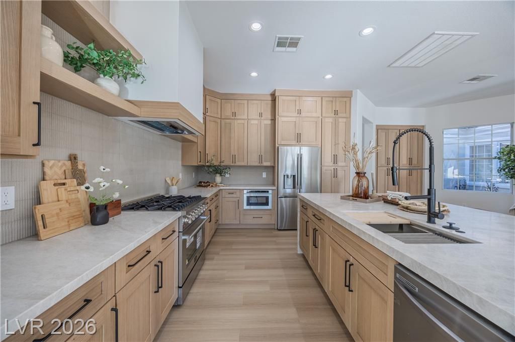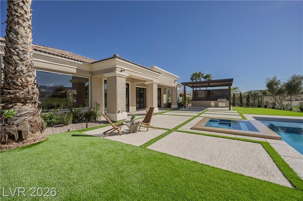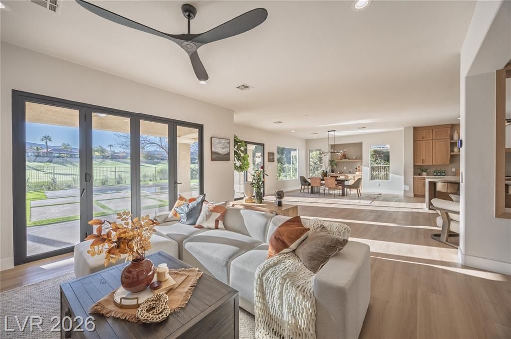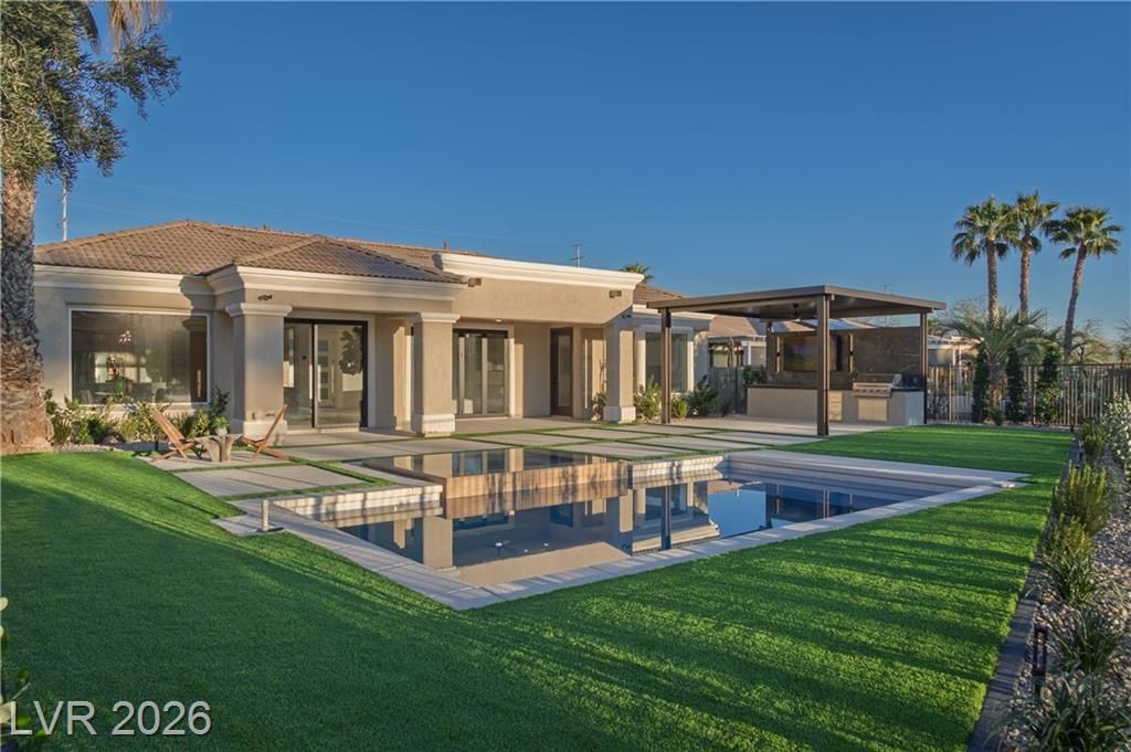COMING SOON !! THIS HOME HAS BEEN BEAUTIFULLY REIMAGINED WITH TOP-QUALITY FIXTURES AND FINISHES, INCLUDING BUT NOT LIMITED TO BRAND-NEW ENGINEERED HARDWOOD FLOORS, NEW WHITE OAK CABINETS, AND TAJ MAHAL QUARTZITE COUNTERTOPS THROUGHOUT. THIS HOME WILL TRULY TAKE YOUR BREATH AWAY. THE ATTENTION TO DETAIL IS EXTRAORDINARY. UNIQUELY SITUATED ON A .26 ACRE LOT WITH OPEN VIEWS OF THE GREEN GRASS GOLF COURSE AND BEAUTIFUL MOUNTAIN PEAKS, THIS IS ONE OF — IF NOT THE BEST — LOTS IN 55+ SIENA. WITH EVERY INCH OF THE HOME UPDATED TO PERFECTION, THIS RESIDENCE WILL LEAVE YOU WANTING FOR NOTHING. STEP OUTSIDE TO THE COMPLETELY REIMAGINED BACKYARD OASIS WITH A BRAND-NEW POOL/SPA, AN OVERSIZED COVERED PATIO, AND A BRAND-NEW BUILT-IN BBQ/LOUNGE AREA. ENJOY THE QUINTESSENTIAL INDOOR/OUTDOOR LUXURY LIFESTYLE IN THE HEART OF SUMMERLIN.**PLEASE NOTE THAT SOME IMAGES HAVE BEEN VIRTUALLY STAGED OR RENDERED. THIS HOME WILL BE COMPLETED IN THE COMING WEEKS AND IS AVAILABLE TO SEE AT YOUR EARLIEST CONVENIENCE.