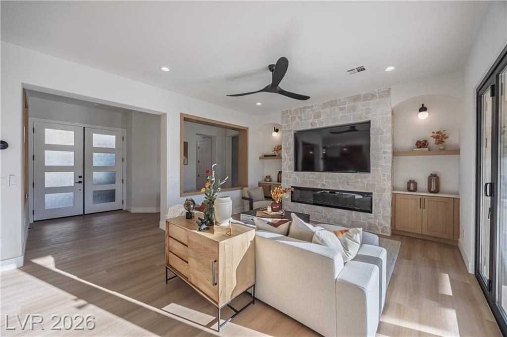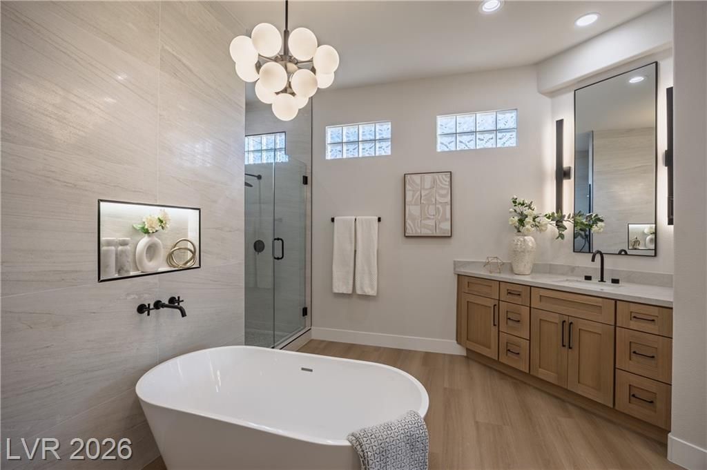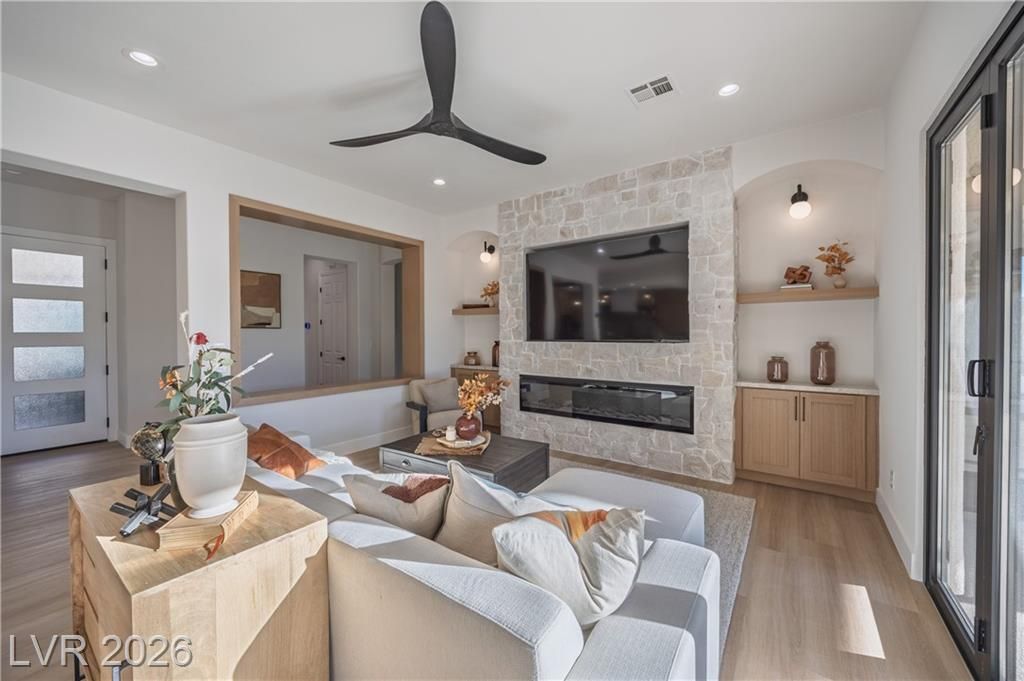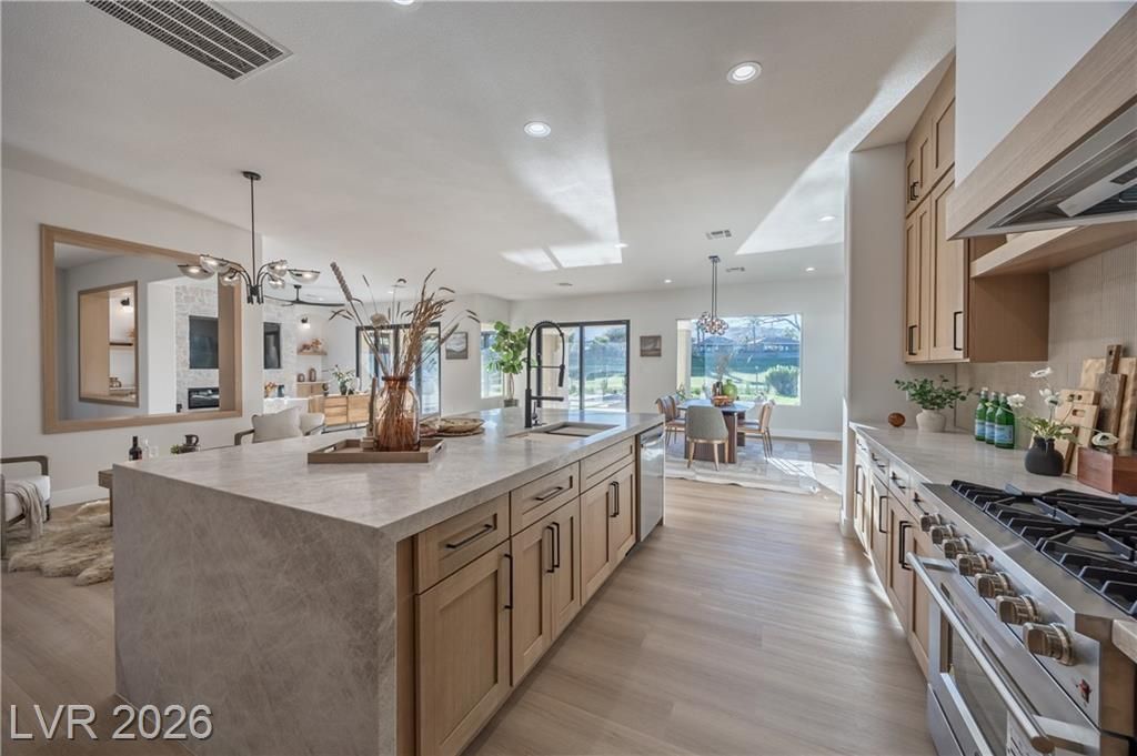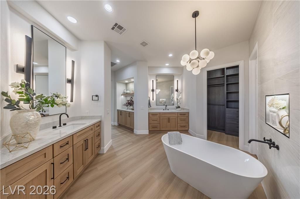 COMING SOON !! THIS HOME HAS BEEN BEAUTIFULLY REIMAGINED WITH TOP-QUALITY FIXTURES AND FINISHES, INCLUDING BUT NOT LIMITED TO BRAND-NEW ENGINEERED HARDWOOD FLOORS, NEW WHITE OAK CABINETS, AND TAJ MAHAL QUARTZITE COUNTERTOPS THROUGHOUT. THIS HOME WILL TRULY TAKE YOUR BREATH AWAY. THE ATTENTION TO DETAIL IS EXTRAORDINARY. UNIQUELY SITUATED ON A .26 ACRE LOT WITH OPEN VIEWS OF THE GREEN GRASS GOLF COURSE AND BEAUTIFUL MOUNTAIN PEAKS, THIS IS ONE OF — IF NOT THE BEST — LOTS IN 55+ SIENA. WITH EVERY INCH OF THE HOME UPDATED TO PERFECTION, THIS RESIDENCE WILL LEAVE YOU WANTING FOR NOTHING. STEP OUTSIDE TO THE COMPLETELY REIMAGINED BACKYARD OASIS WITH A BRAND-NEW POOL/SPA, AN OVERSIZED COVERED PATIO, AND A BRAND-NEW BUILT-IN BBQ/LOUNGE AREA. ENJOY THE QUINTESSENTIAL INDOOR/OUTDOOR LUXURY LIFESTYLE IN THE HEART OF SUMMERLIN.**PLEASE NOTE THAT SOME IMAGES HAVE BEEN VIRTUALLY STAGED OR RENDERED. THIS HOME WILL BE COMPLETED IN THE COMING WEEKS AND IS AVAILABLE TO SEE AT YOUR EARLIEST CONVENIENCE.