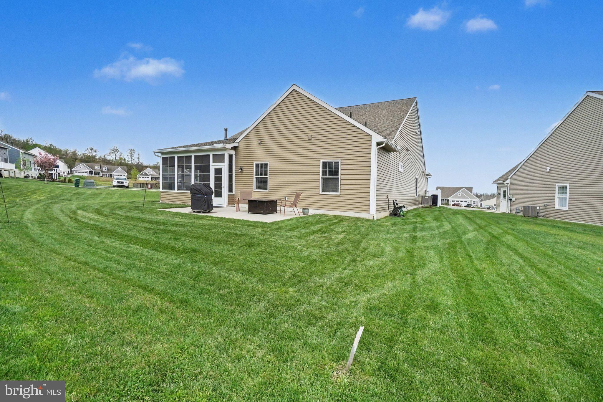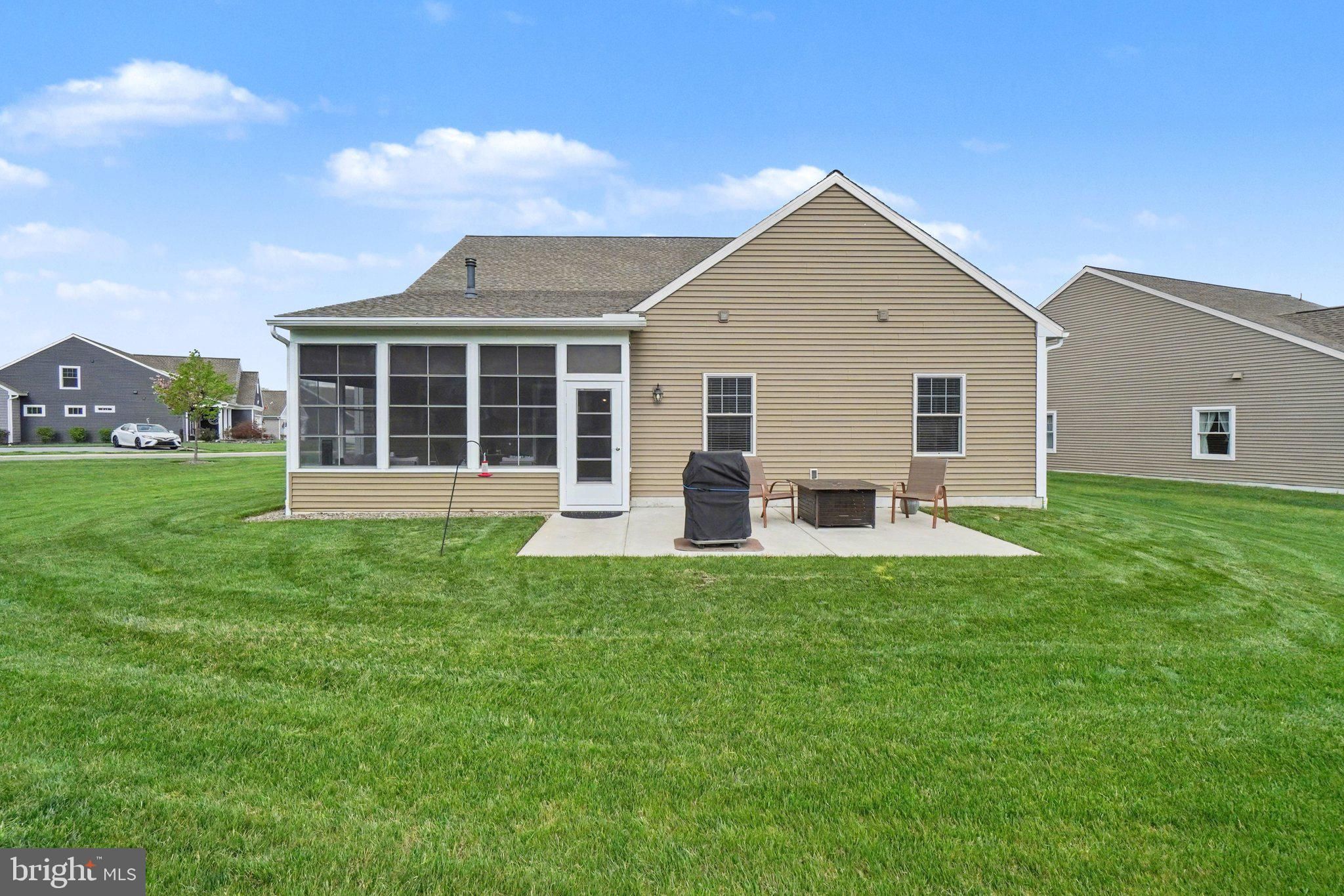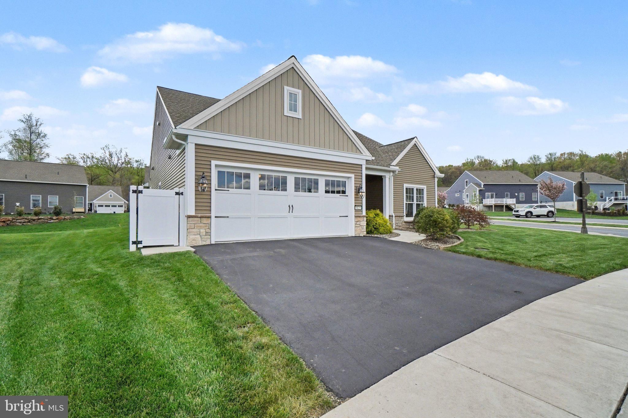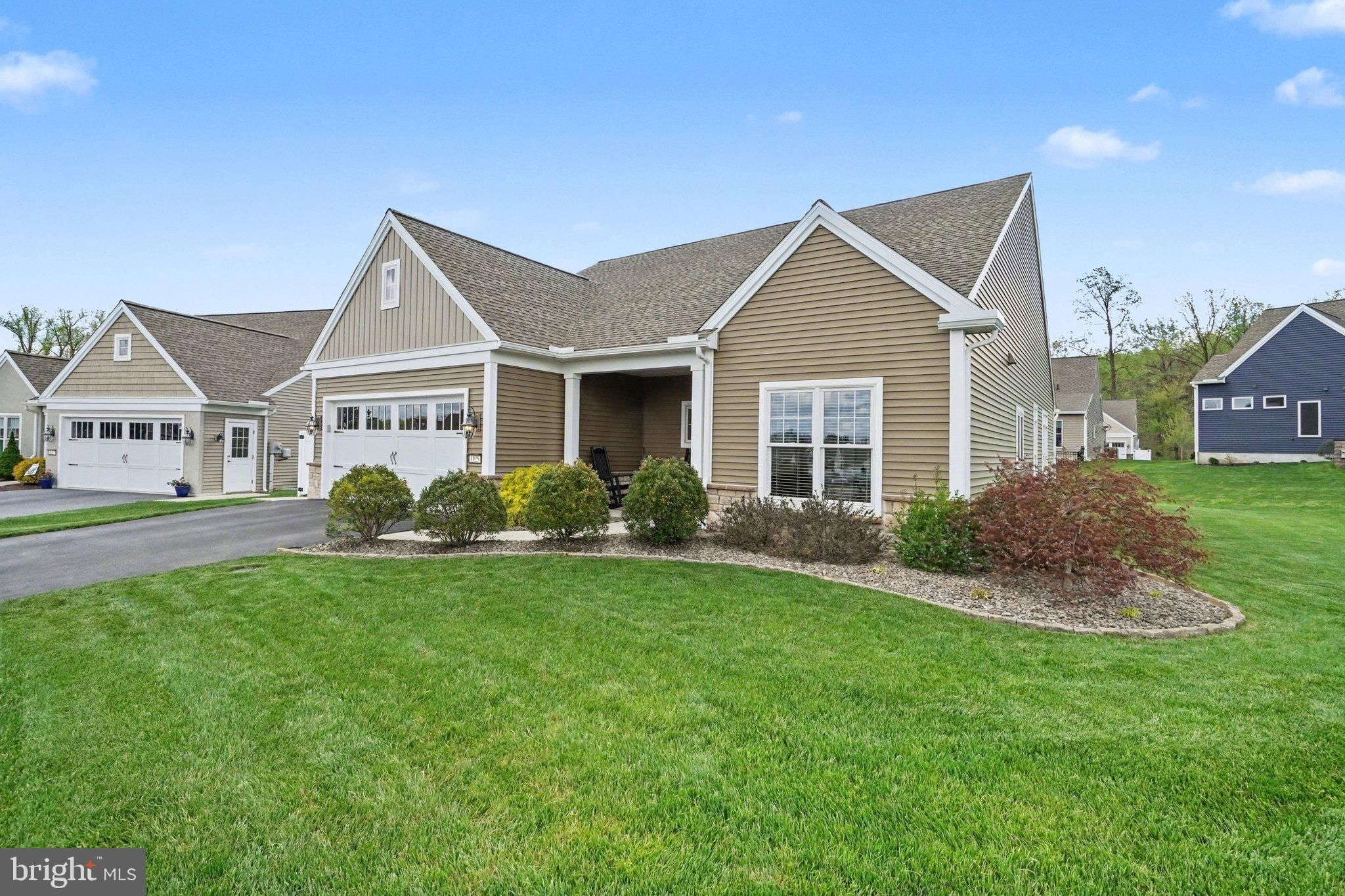 Welcome to this impeccably maintained, like-new one-level home, thoughtfully designed with high-end finishes and located in a sought-after 55+ active adult community. Perfectly positioned on a level corner lot within a quiet circle, the setting offers a charming courtyard at its center and a true sense of neighborhood. Step inside from the covered front porch into a welcoming foyer that opens to a bright, open-concept layout. Luxury vinyl plank flooring runs seamlessly throughout, complemented by a convenient entry closet and a stylish drop zone complete with a built-in bench and hooks. The kitchen is both elegant and highly functional—ideal for everyday living and entertaining. It features quartz countertops, an oversized island with seating, tile-to-ceiling backsplash, stainless steel gas range, built-in microwave, dishwasher, and refrigerator. You’ll appreciate the upgraded cabinetry with soft-close doors and drawers, pull-out storage solutions, spice rack, and hidden outlets, along with under-cabinet lighting. A beautifully finished walk-in pantry with wood shelving provides exceptional storage. The dining and living areas impress with cathedral ceilings, recessed lighting, ceiling fan, and additional windows—including transoms—that fill the space with natural light. A gas fireplace with a striking herringbone shiplap accent wall and live-edge mantel serves as a stunning focal point. The primary suite offers a peaceful retreat, complete with a sitting area or office nook and two spacious walk-in closets. The private en-suite bath features a double vanity, custom tile walk-in shower with seamless glass door, private water closet, and a combination light/fan/heater for added comfort. A generously sized second bedroom is conveniently located near the full guest bath with tub/shower combo. An additional front room offers flexibility to suit your needs—ideal as a home office, hobby space, or potential third bedroom. Enjoy indoor-outdoor living in the beautifully appointed screened-in patio, featuring vinyl windows, custom blinds, ceiling fan, and specialty lighting—perfectly positioned to capture morning sun and afternoon shade. An expanded open patio offers additional space to relax or entertain outdoors. Upstairs, you’ll find a large storage area, easily accessible with a Versa Lift system from the garage. The attached two-car garage also features a polyuria-coated floor and utility sink. Additional highlights include natural gas heat, central air, 9’ ceilings, floor outlet for flexible furniture placement, double-hung windows with screens, custom blinds, and a Ring camera system—every detail carefully considered. Enjoy a low-maintenance lifestyle with the option to join the community clubhouse for a nominal monthly fee, offering a fitness center, indoor pool and spa, library, billiards room, coffee shop, and a full calendar of social activities. The community also features a scenic lake for fishing or canoeing and is located near the Lebanon Valley Rail Trail—perfect for walking, biking, and more. Conveniently located just minutes from shopping, dining, medical facilities, and local golf courses, including Fairview, Royal Oaks, and Iron Valley. You're also a short drive to destinations like Mt. Gretna, Lititz, and Hershey—home to attractions such as Hersheypark and Hershey's Chocolate World. With easy access to the PA Turnpike and major cities like Philadelphia, Baltimore, and New York, plus proximity to Harrisburg International Airport, this location offers both tranquility and convenience. This exceptional home delivers the lifestyle you’ve been searching for—schedule your private showing and make it yours today.