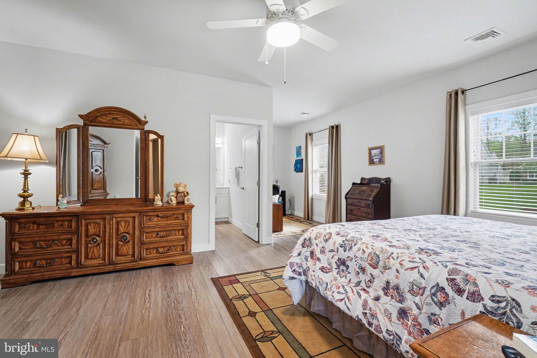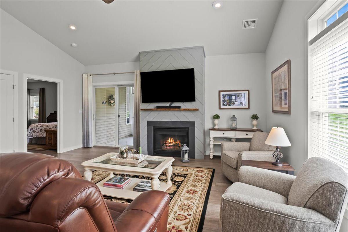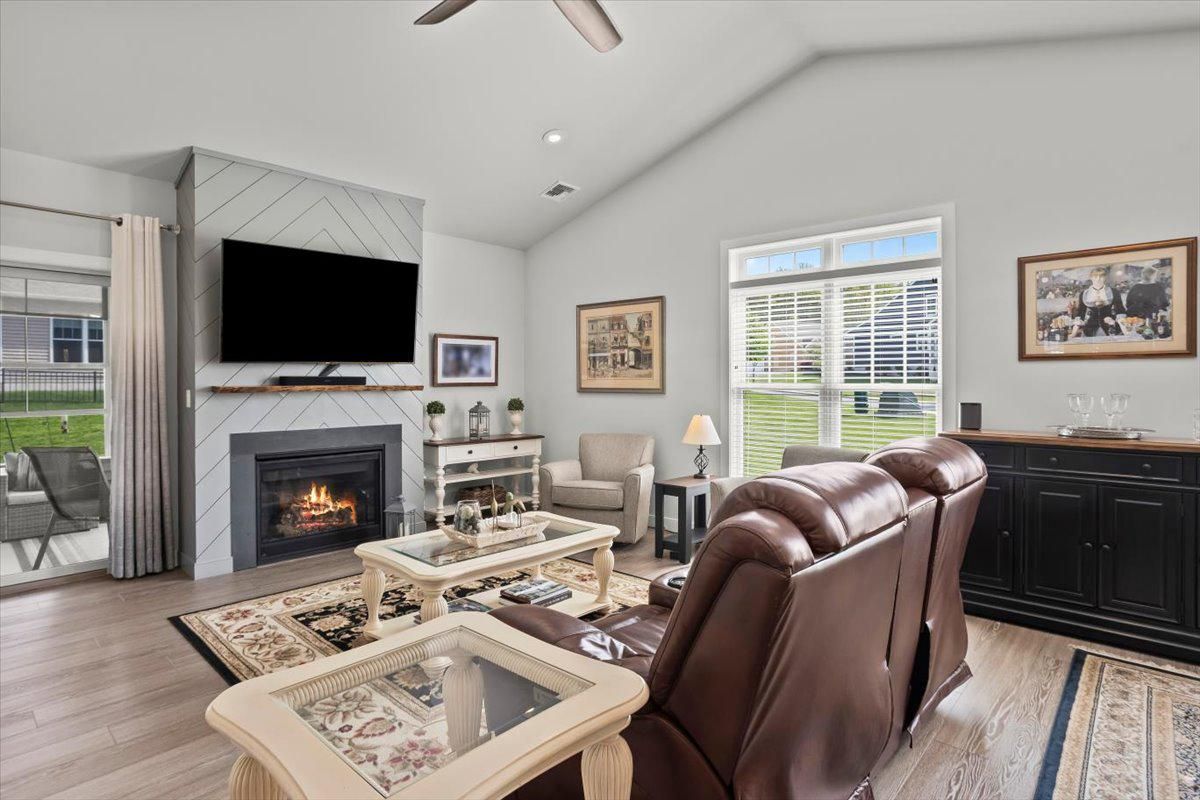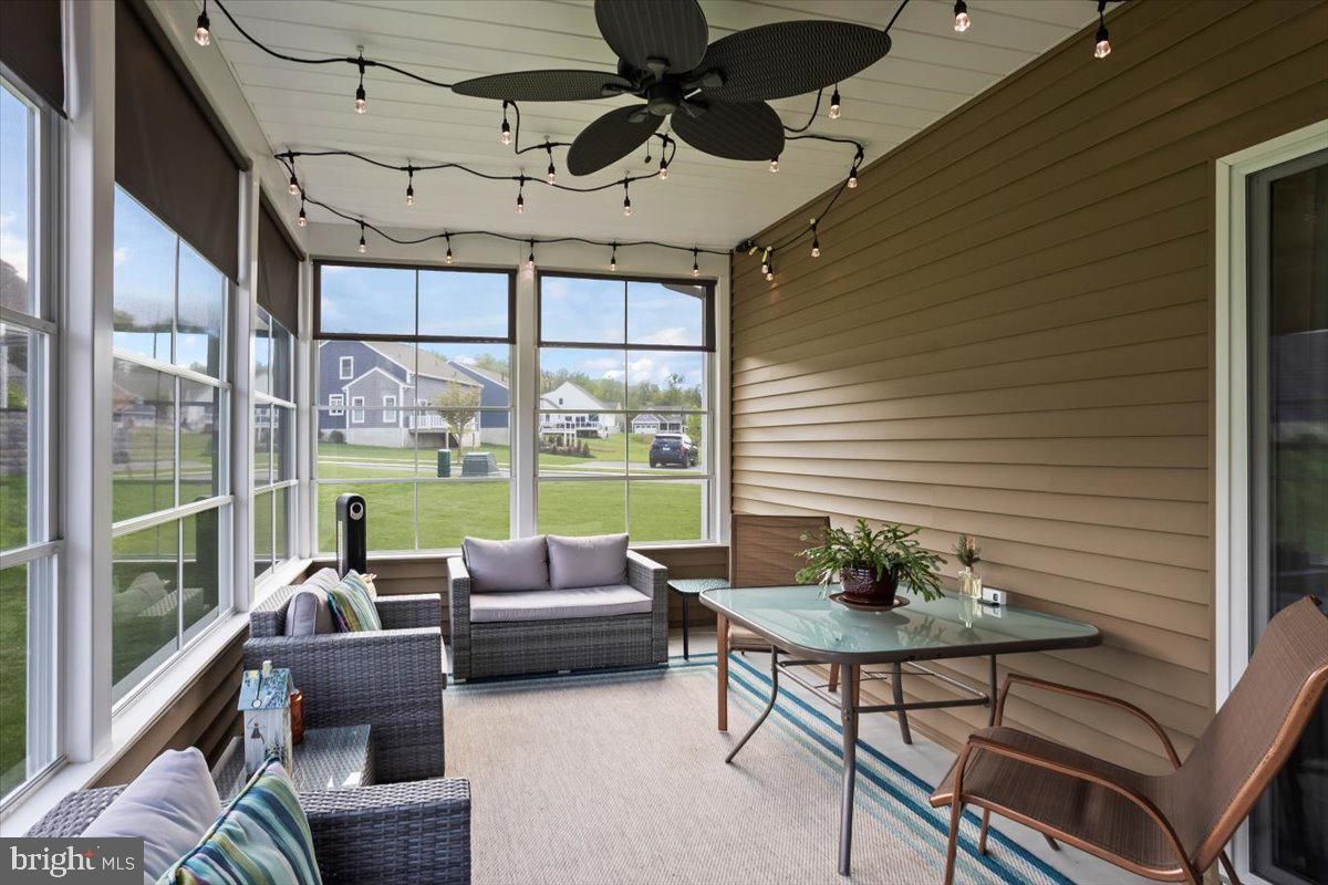 Welcome to this impeccably maintained, like-new one-level home, thoughtfully designed with high-end finishes and located in a sought-after 55+ active adult community. Perfectly positioned on a level corner lot within a quiet circle, the setting offers a charming courtyard at its center and a true sense of neighborhood. Step inside from the covered front porch into a welcoming foyer that opens to a bright, open-concept layout. Luxury vinyl plank flooring runs seamlessly throughout, complemented by a convenient entry closet and a stylish drop zone complete with a built-in bench and hooks. The kitchen is both elegant and highly functional—ideal for everyday living and entertaining. It features quartz countertops, an oversized island with seating, tile-to-ceiling backsplash, stainless steel gas range, built-in microwave, dishwasher, and refrigerator. You’ll appreciate the upgraded cabinetry with soft-close doors and drawers, pull-out storage solutions, spice rack, and hidden outlets, along with under-cabinet lighting. A beautifully finished walk-in pantry with wood shelving provides exceptional storage. The dining and living areas impress with cathedral ceilings, recessed lighting, ceiling fan, and additional windows—including transoms—that fill the space with natural light. A gas fireplace with a striking herringbone shiplap accent wall and live-edge mantel serves as a stunning focal point. The primary suite offers a peaceful retreat, complete with a sitting area or office nook and two spacious walk-in closets. The private en-suite bath features a double vanity, custom tile walk-in shower with seamless glass door, private water closet, and a combination light/fan/heater for added comfort. A generously sized second bedroom is conveniently located near the full guest bath with tub/shower combo. An additional front room offers flexibility to suit your needs—ideal as a home office, hobby space, or potential third bedroom. Enjoy indoor-outdoor living in the beautifully appointed screened-in patio, featuring vinyl windows, custom blinds, ceiling fan, and specialty lighting—perfectly positioned to capture morning sun and afternoon shade. An expanded open patio offers additional space to relax or entertain outdoors. Upstairs, you’ll find a large storage area, easily accessible with a Versa Lift system from the garage. The attached two-car garage also features a polyuria-coated floor and utility sink. Additional highlights include natural gas heat, central air, 9’ ceilings, floor outlet for flexible furniture placement, double-hung windows with screens, custom blinds, and a Ring camera system—every detail carefully considered. Enjoy a low-maintenance lifestyle with the option to join the community clubhouse for a nominal monthly fee, offering a fitness center, indoor pool and spa, library, billiards room, coffee shop, and a full calendar of social activities. The community also features a scenic lake for fishing or canoeing and is located near the Lebanon Valley Rail Trail—perfect for walking, biking, and more. Conveniently located just minutes from shopping, dining, medical facilities, and local golf courses, including Fairview, Royal Oaks, and Iron Valley. You're also a short drive to destinations like Mt. Gretna, Lititz, and Hershey—home to attractions such as Hersheypark and Hershey's Chocolate World. With easy access to the PA Turnpike and major cities like Philadelphia, Baltimore, and New York, plus proximity to Harrisburg International Airport, this location offers both tranquility and convenience. This exceptional home delivers the lifestyle you’ve been searching for—schedule your private showing and make it yours today.