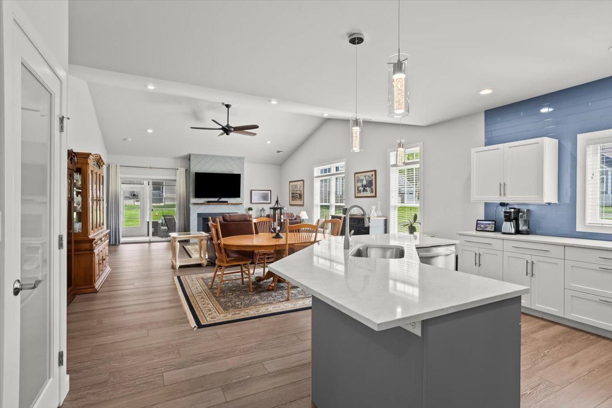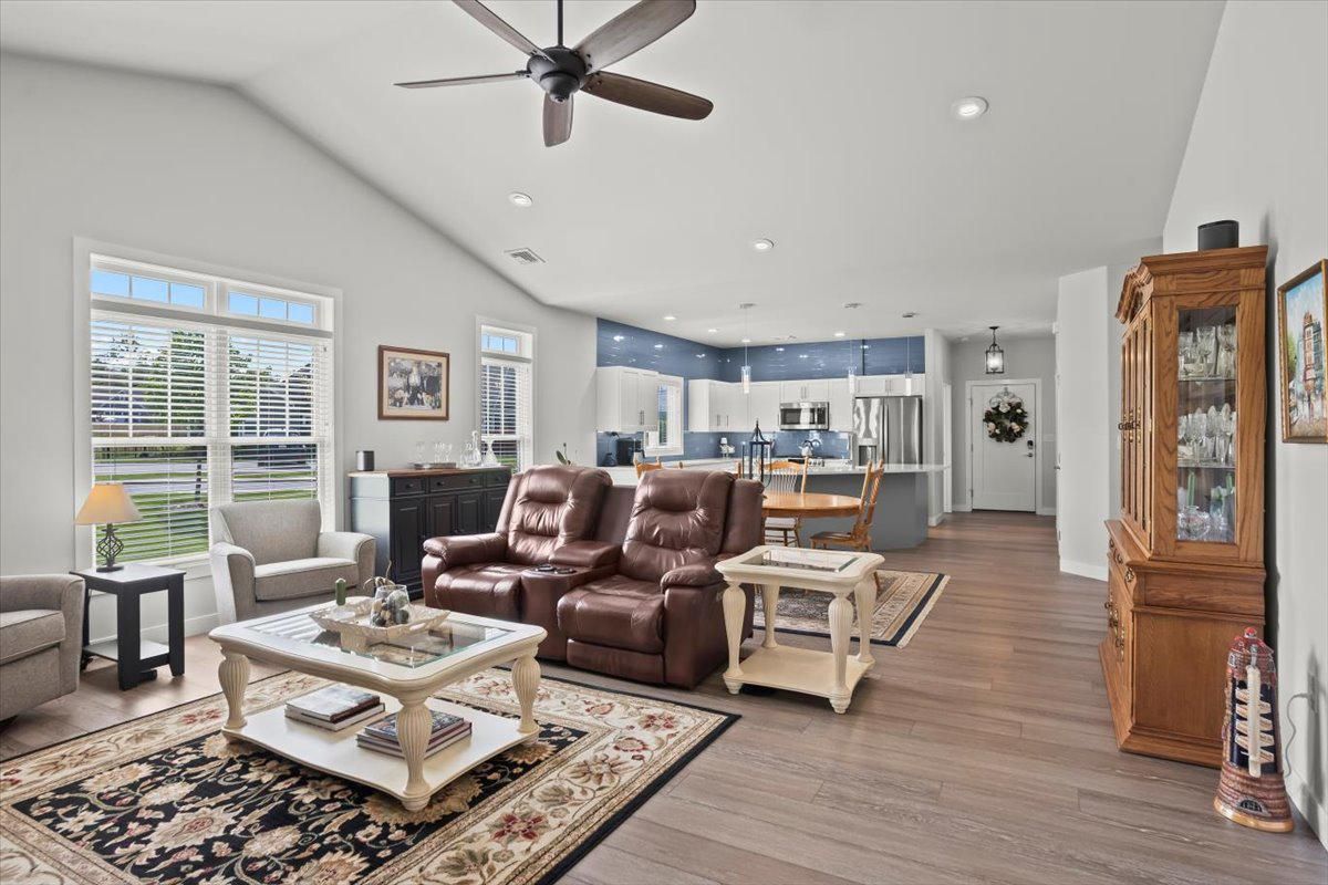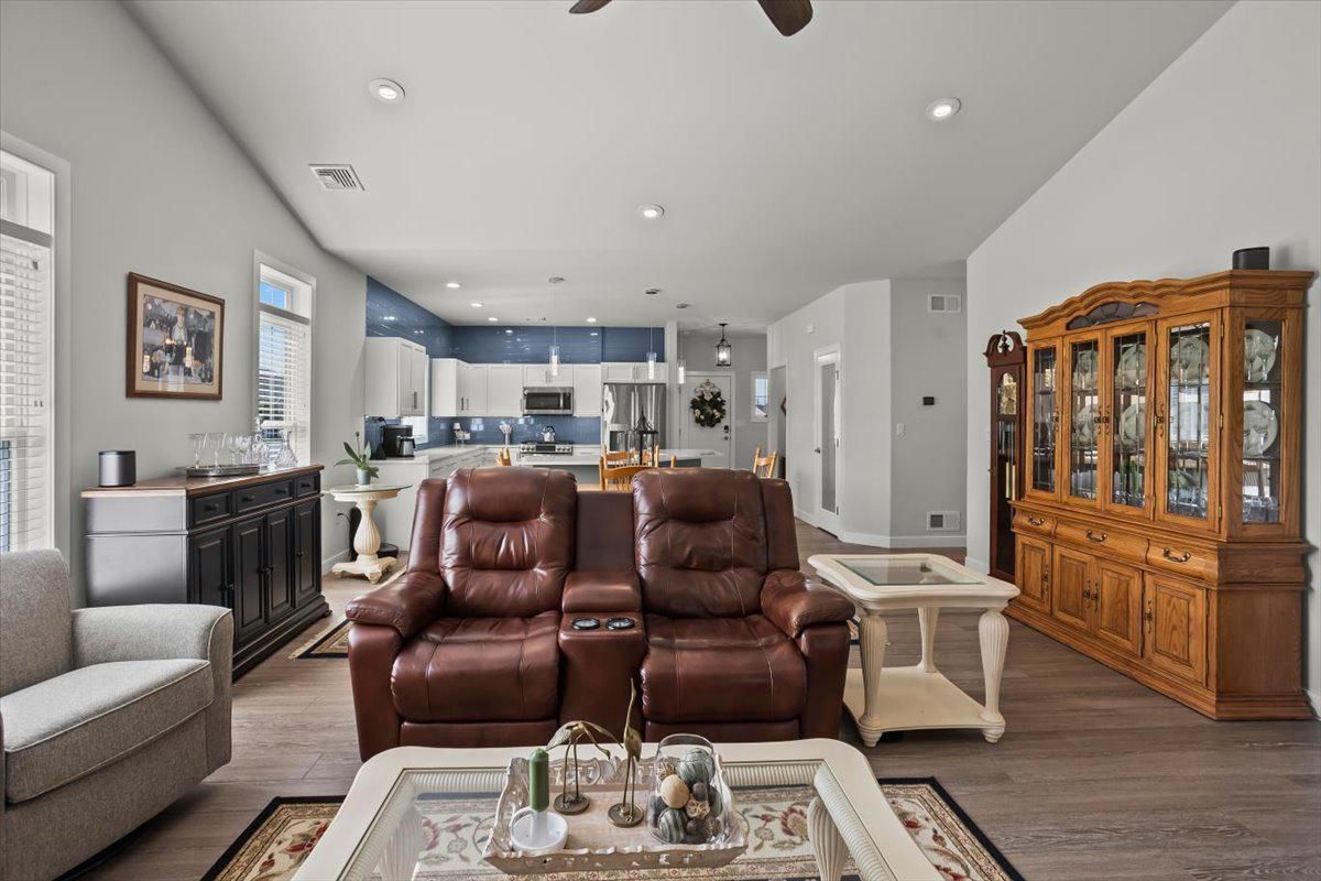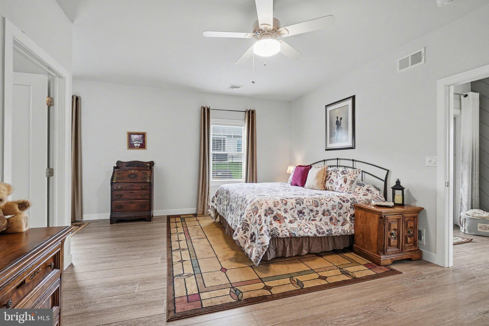 Welcome to this impeccably maintained, like-new one-level home, thoughtfully designed with high-end finishes and located in a sought-after 55+ active adult community. Perfectly positioned on a level corner lot within a quiet circle, the setting offers a charming courtyard at its center and a true sense of neighborhood. Step inside from the covered front porch into a welcoming foyer that opens to a bright, open-concept layout. Luxury vinyl plank flooring runs seamlessly throughout, complemented by a convenient entry closet and a stylish drop zone complete with a built-in bench and hooks. The kitchen is both elegant and highly functional—ideal for everyday living and entertaining. It features quartz countertops, an oversized island with seating, tile-to-ceiling backsplash, stainless steel gas range, built-in microwave, dishwasher, and refrigerator. You’ll appreciate the upgraded cabinetry with soft-close doors and drawers, pull-out storage solutions, spice rack, and hidden outlets, along with under-cabinet lighting. A beautifully finished walk-in pantry with wood shelving provides exceptional storage. The dining and living areas impress with cathedral ceilings, recessed lighting, ceiling fan, and additional windows—including transoms—that fill the space with natural light. A gas fireplace with a striking herringbone shiplap accent wall and live-edge mantel serves as a stunning focal point. The primary suite offers a peaceful retreat, complete with a sitting area or office nook and two spacious walk-in closets. The private en-suite bath features a double vanity, custom tile walk-in shower with seamless glass door, private water closet, and a combination light/fan/heater for added comfort. A generously sized second bedroom is conveniently located near the full guest bath with tub/shower combo. An additional front room offers flexibility to suit your needs—ideal as a home office, hobby space, or potential third bedroom. Enjoy indoor-outdoor living in the beautifully appointed screened-in patio, featuring vinyl windows, custom blinds, ceiling fan, and specialty lighting—perfectly positioned to capture morning sun and afternoon shade. An expanded open patio offers additional space to relax or entertain outdoors. Upstairs, you’ll find a large storage area, easily accessible with a Versa Lift system from the garage. The attached two-car garage also features a polyuria-coated floor and utility sink. Additional highlights include natural gas heat, central air, 9’ ceilings, floor outlet for flexible furniture placement, double-hung windows with screens, custom blinds, and a Ring camera system—every detail carefully considered. Enjoy a low-maintenance lifestyle with the option to join the community clubhouse for a nominal monthly fee, offering a fitness center, indoor pool and spa, library, billiards room, coffee shop, and a full calendar of social activities. The community also features a scenic lake for fishing or canoeing and is located near the Lebanon Valley Rail Trail—perfect for walking, biking, and more. Conveniently located just minutes from shopping, dining, medical facilities, and local golf courses, including Fairview, Royal Oaks, and Iron Valley. You're also a short drive to destinations like Mt. Gretna, Lititz, and Hershey—home to attractions such as Hersheypark and Hershey's Chocolate World. With easy access to the PA Turnpike and major cities like Philadelphia, Baltimore, and New York, plus proximity to Harrisburg International Airport, this location offers both tranquility and convenience. This exceptional home delivers the lifestyle you’ve been searching for—schedule your private showing and make it yours today.